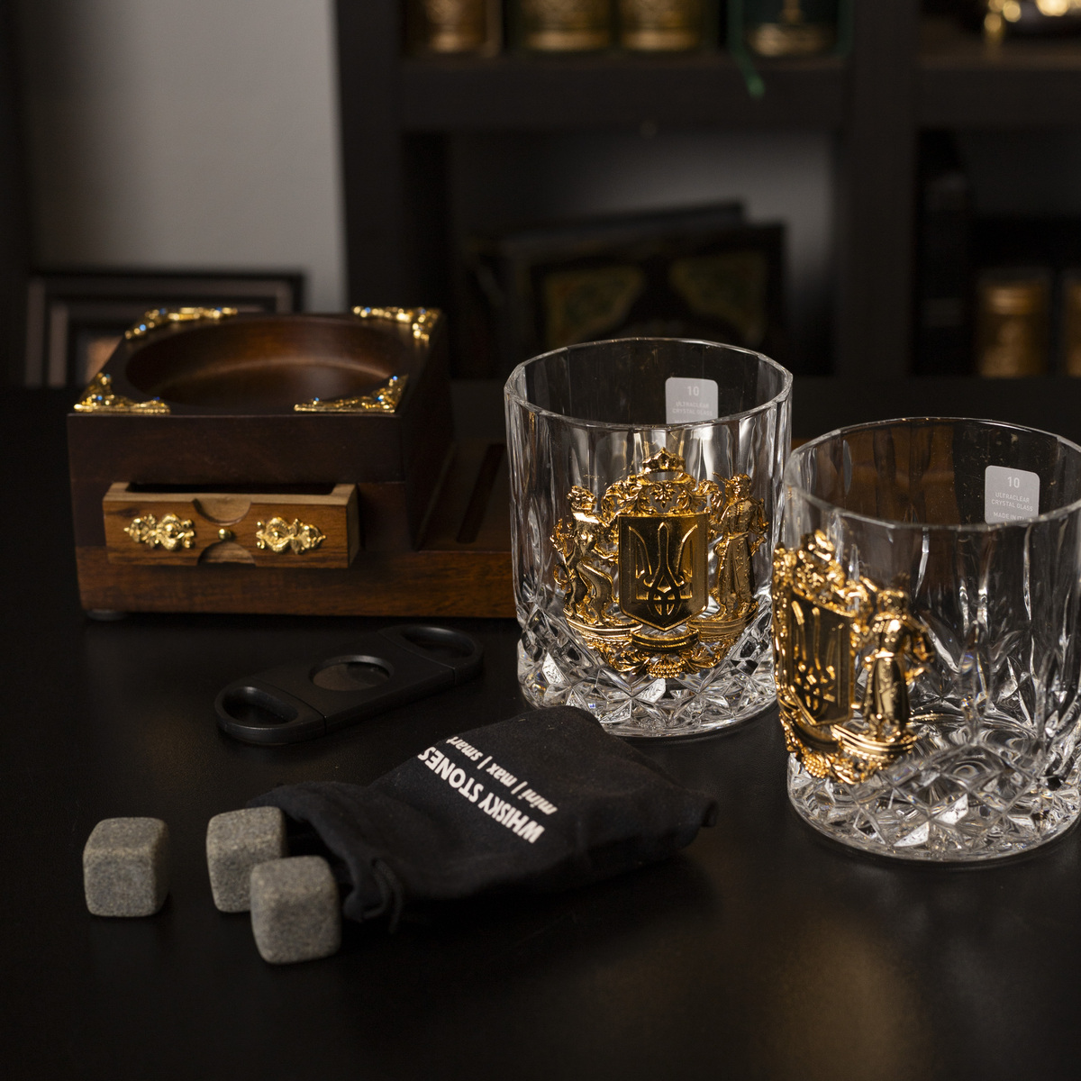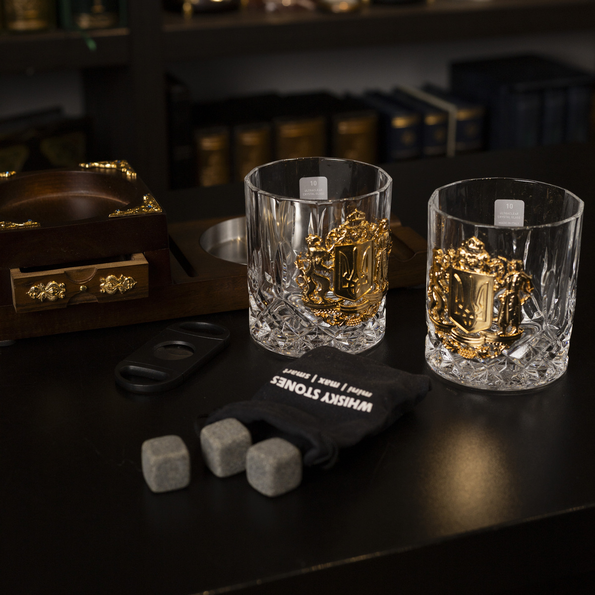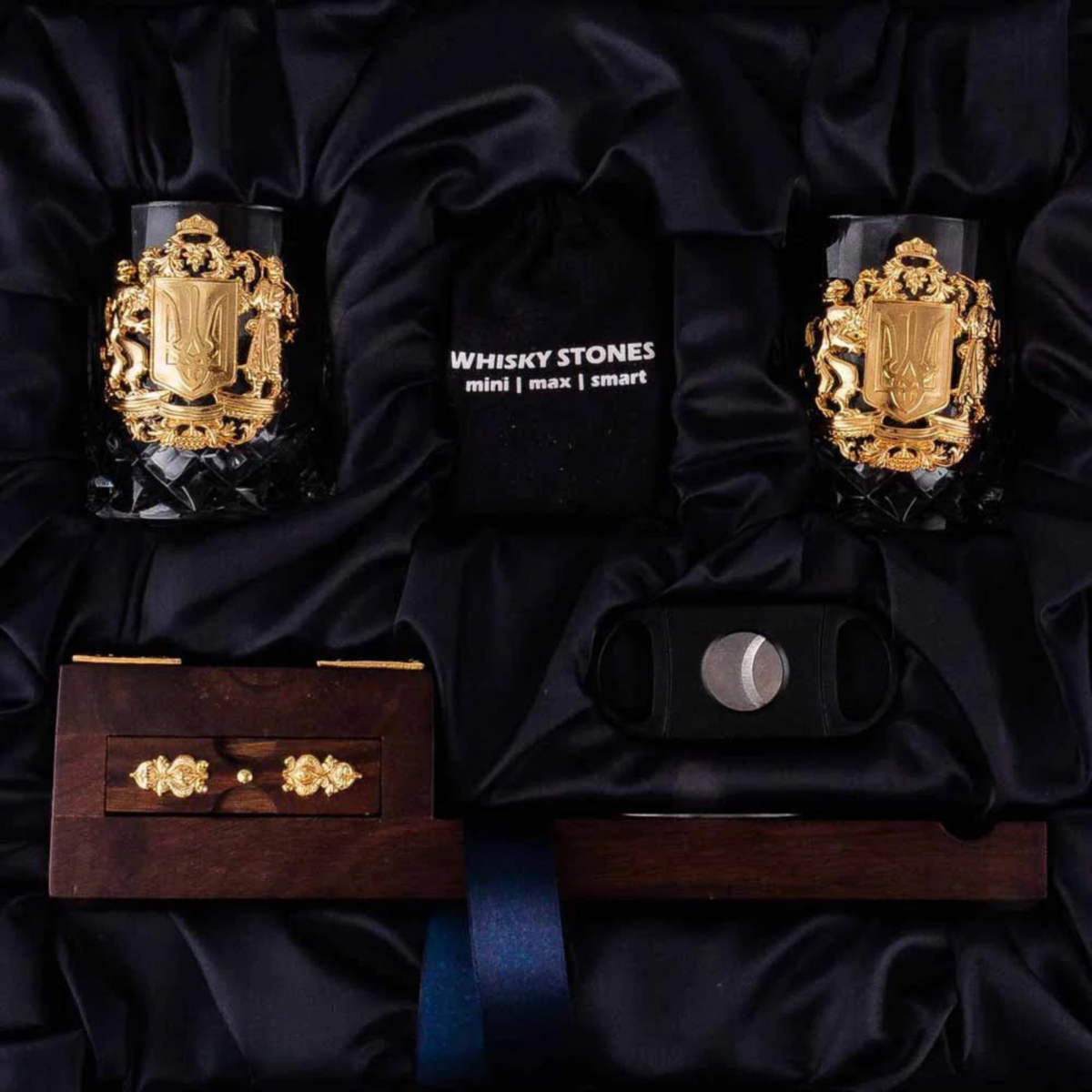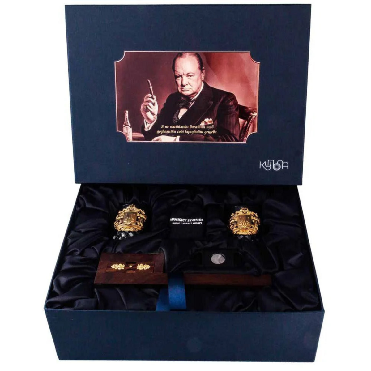 Подарочный набор для виски "Черчилль и Тризуб: тост за Украину" (2 хрустальных бокала, гильотина для сигар, камни для виски)