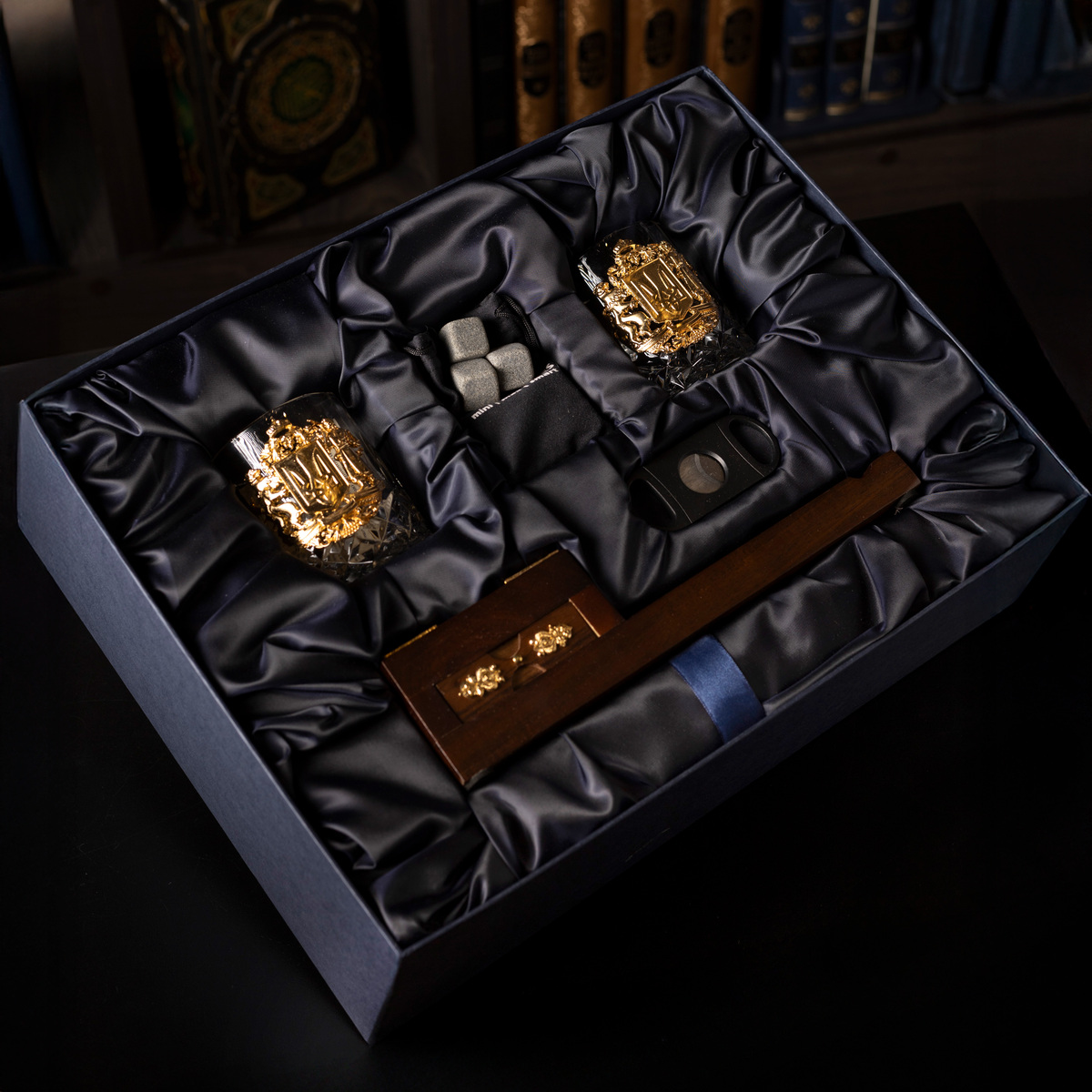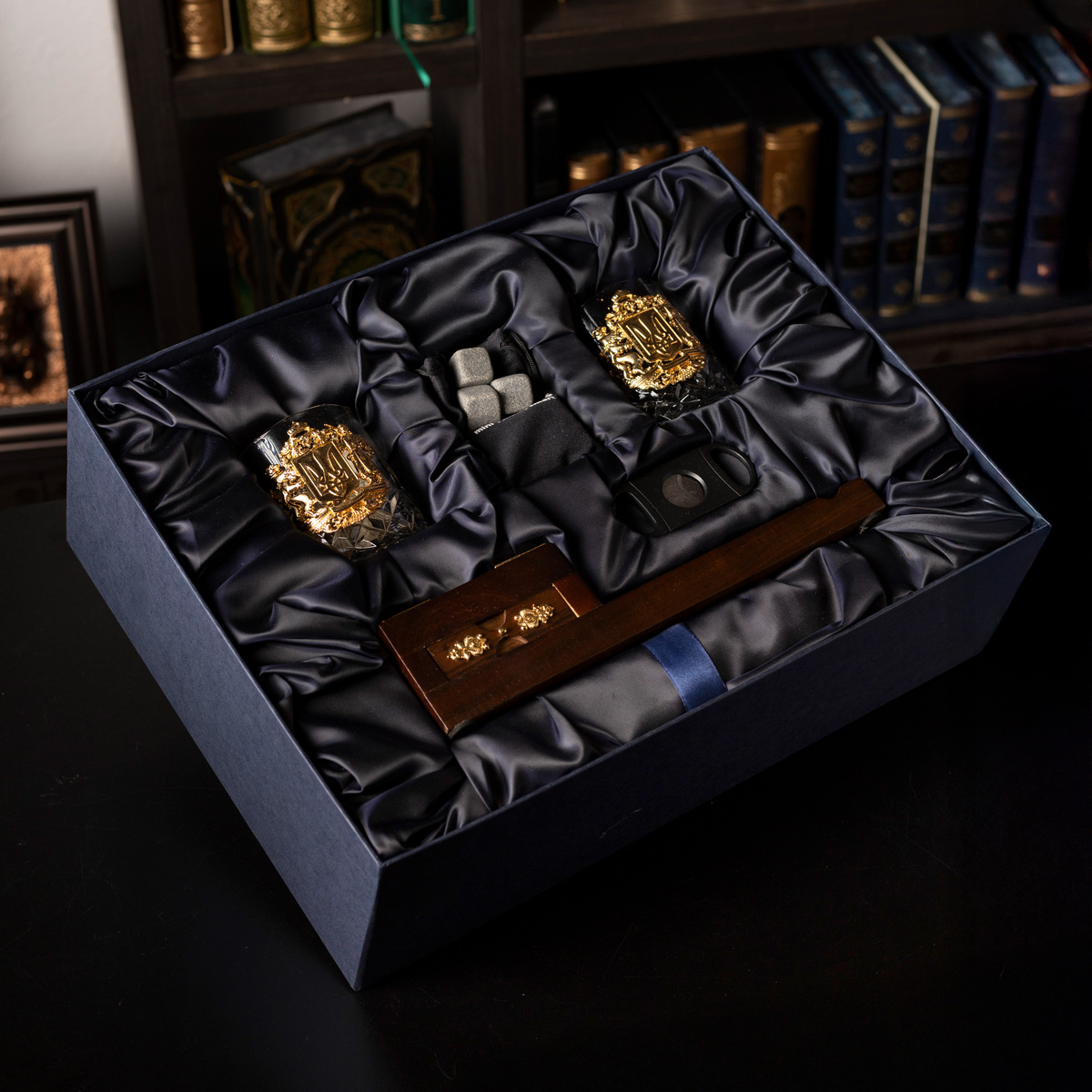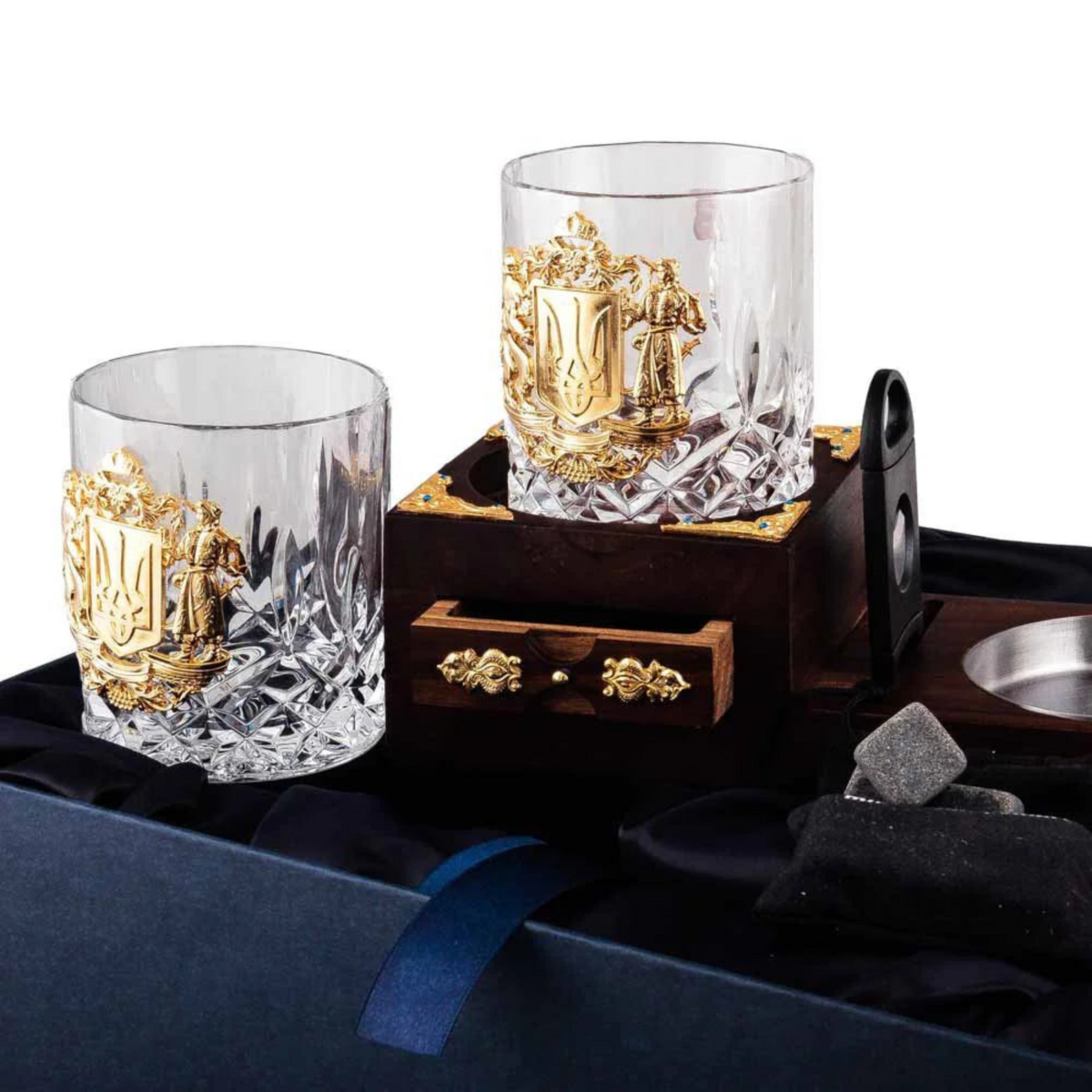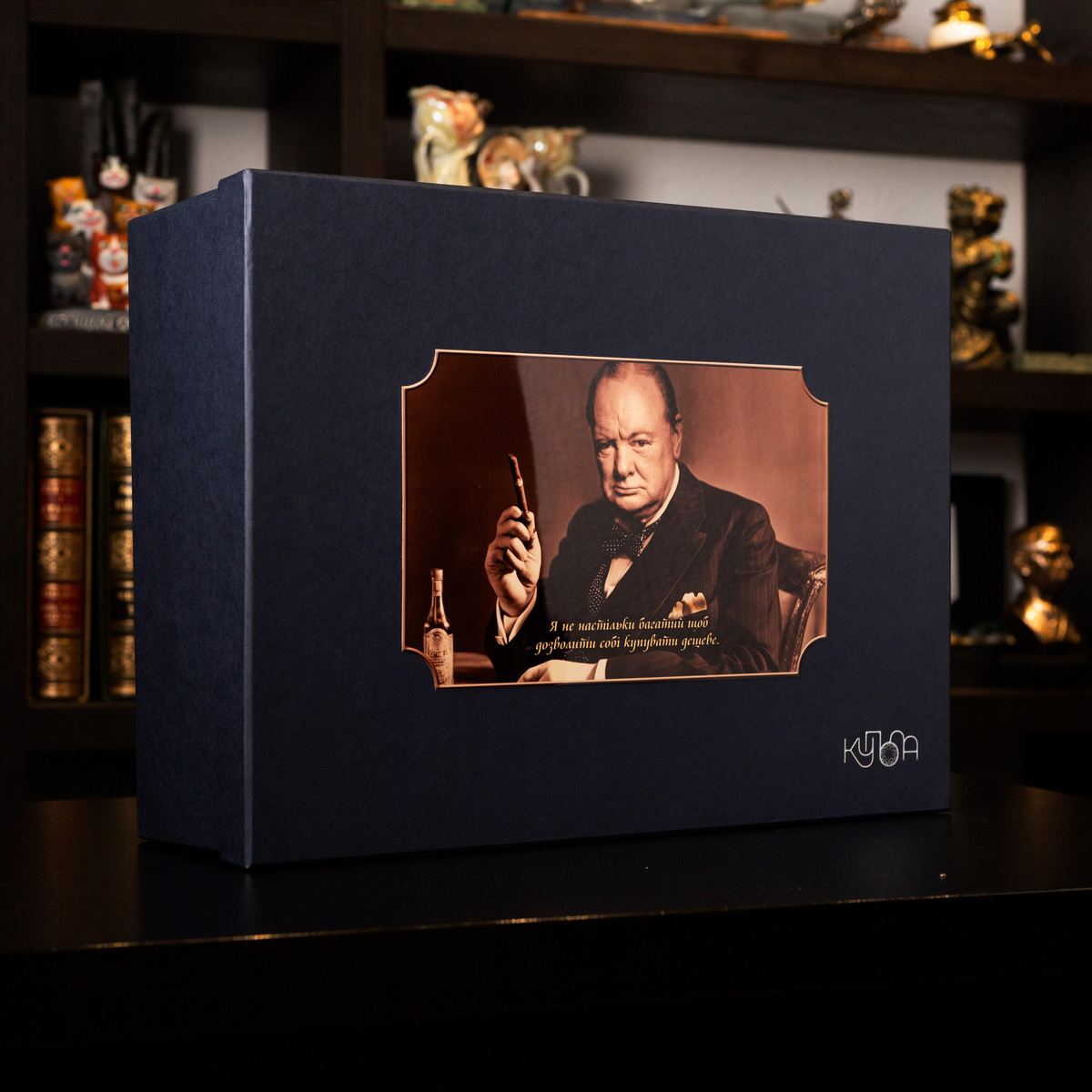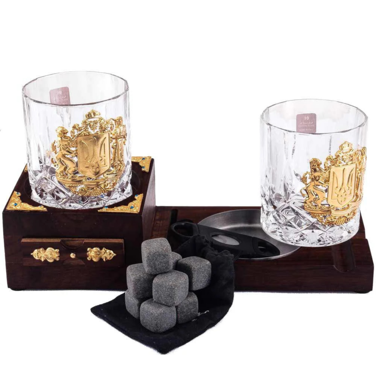 Подарочный набор для виски "Черчилль и Тризуб: тост за Украину" (2 хрустальных бокала, гильотина для сигар, камни для виски)