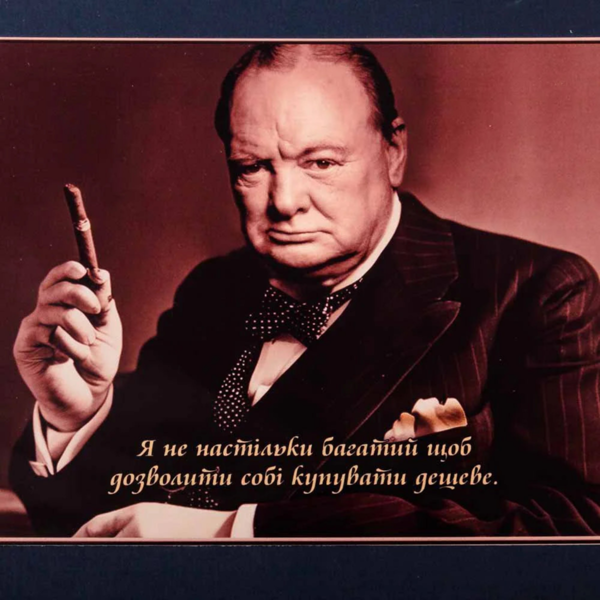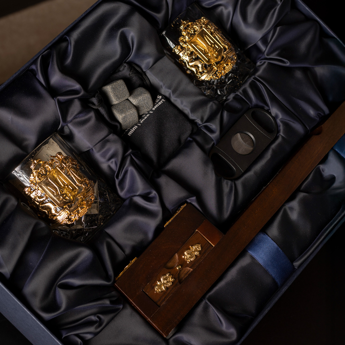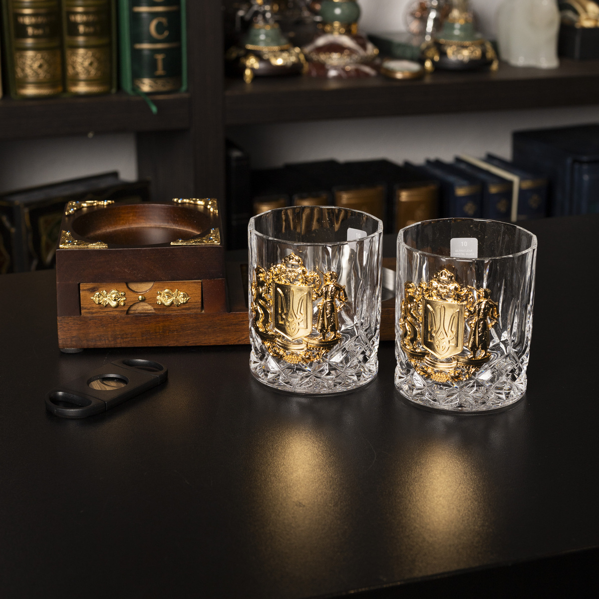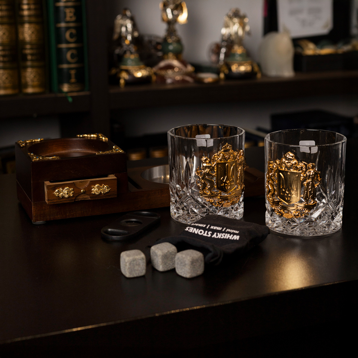 Подарочный набор для виски "Черчилль и Тризуб: тост за Украину" (2 хрустальных бокала, гильотина для сигар, камни для виски)