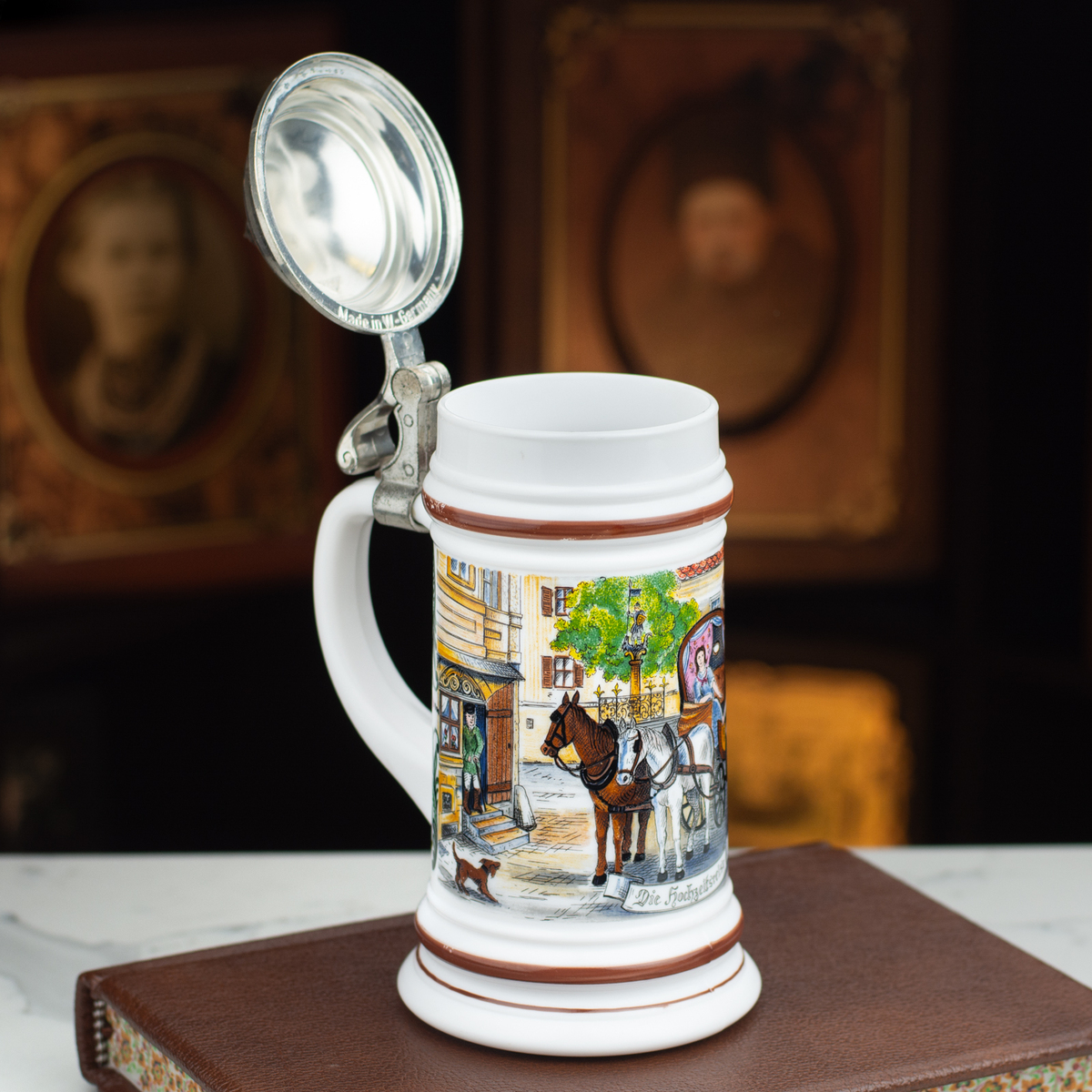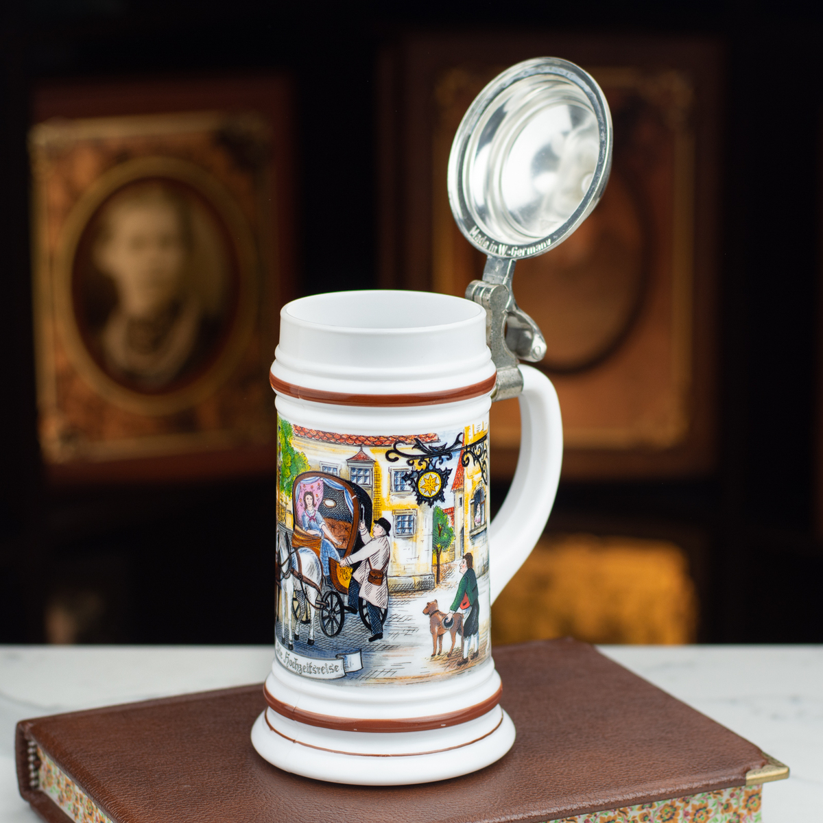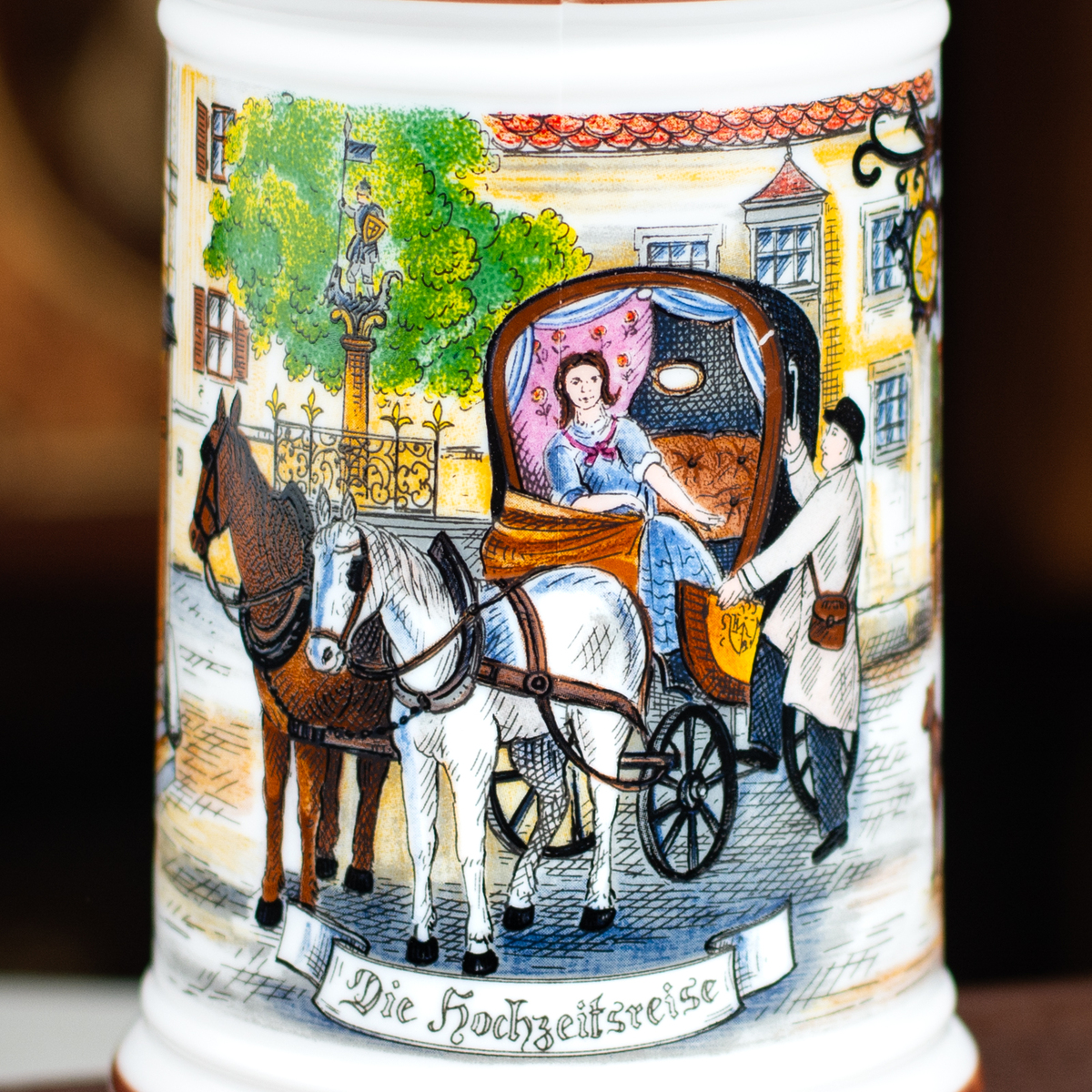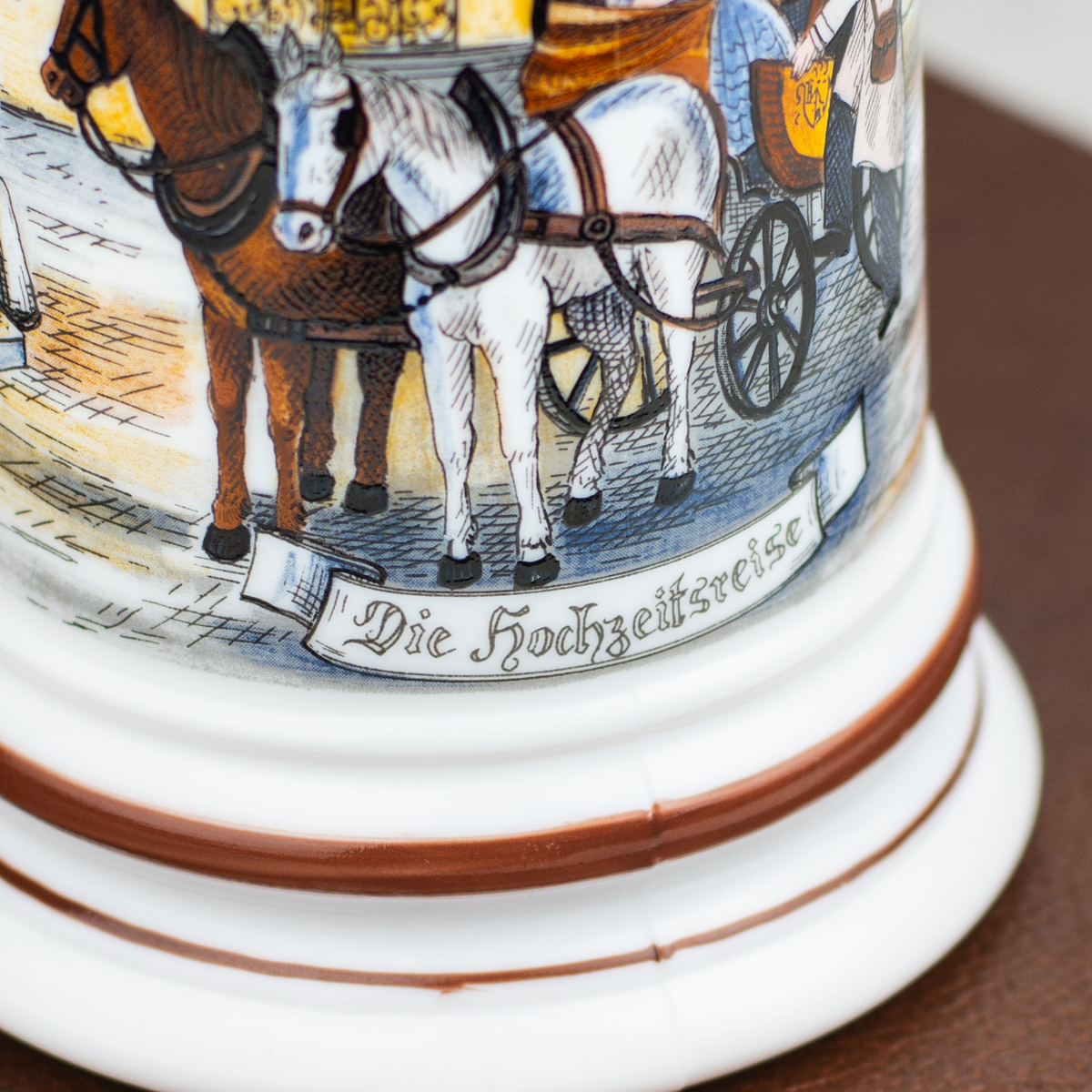 Фарфоровый пивной бокал с крышкой "Carriage" от ORIGINAL BMF BIERSEIDEL, Германия, середина 20-го века
