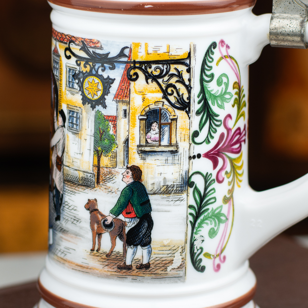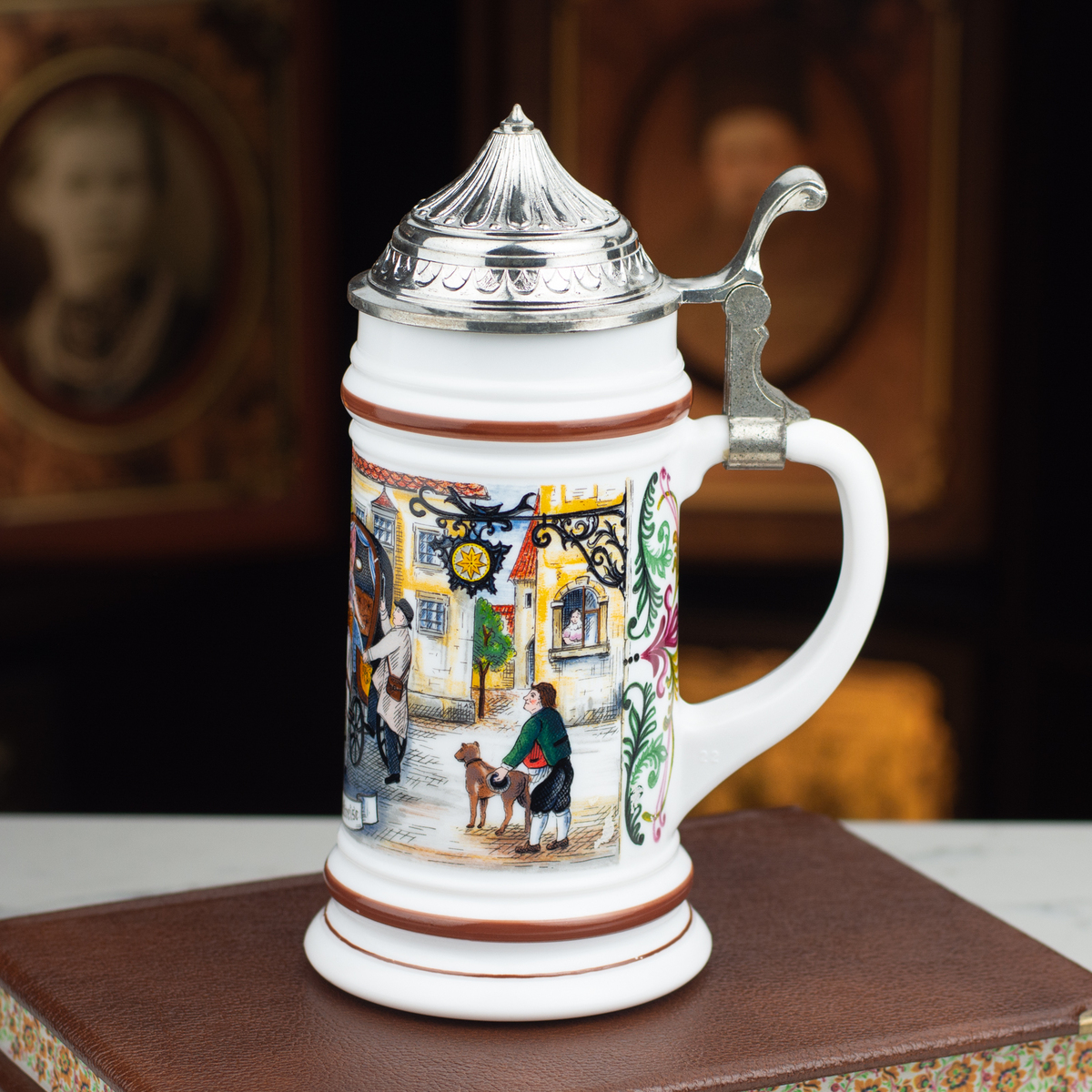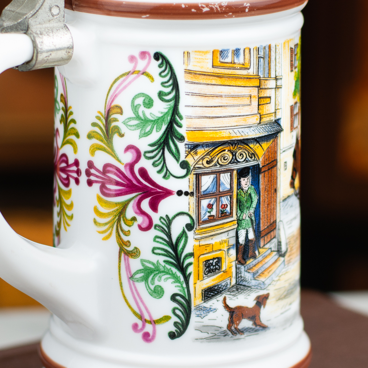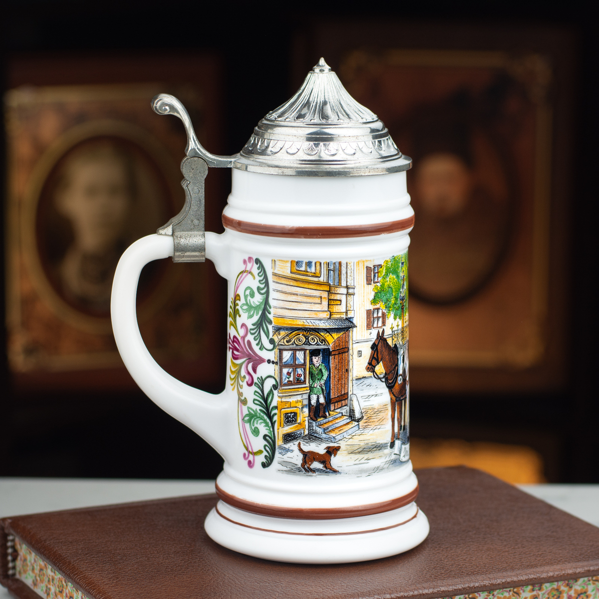 Фарфоровый пивной бокал с крышкой "Carriage" от ORIGINAL BMF BIERSEIDEL, Германия, середина 20-го века