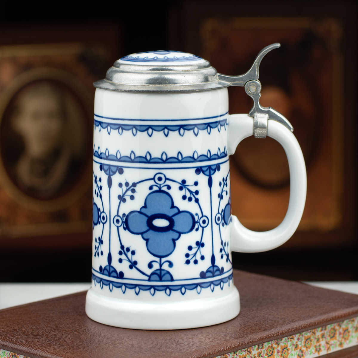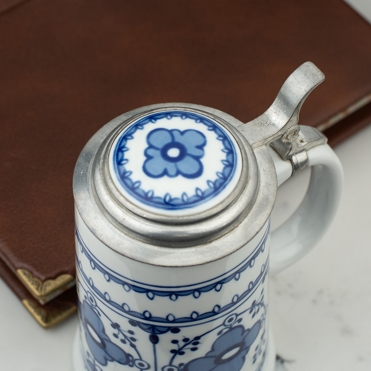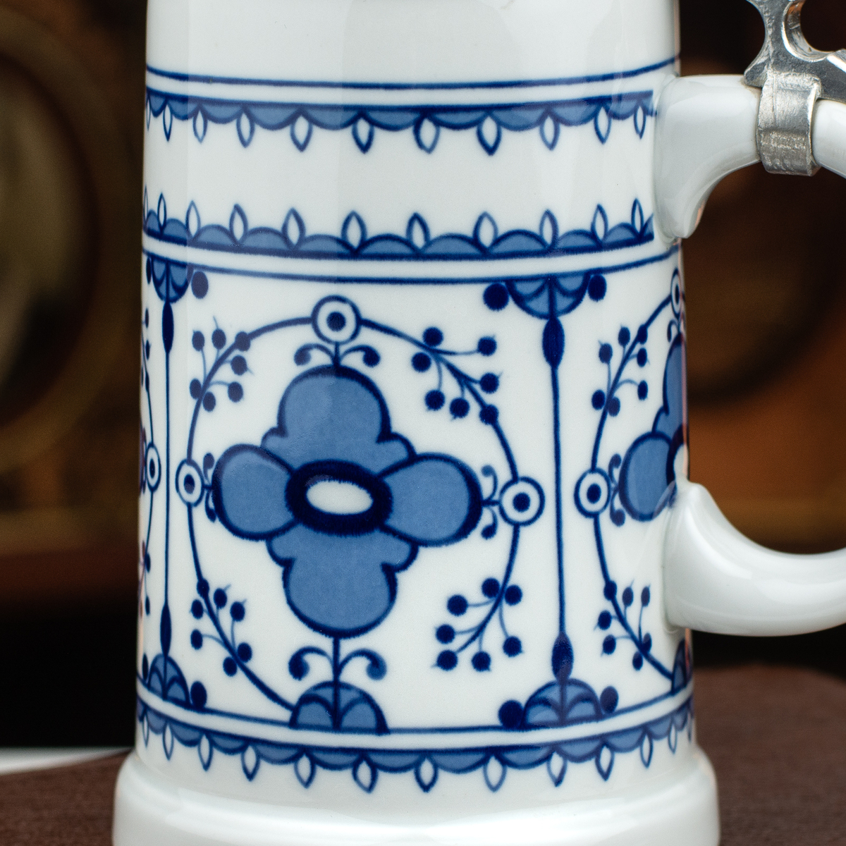 Фарфоровый пивной бокал с крышкой "Pattern" от Echt Kobalt, Германия, середина 20-го века