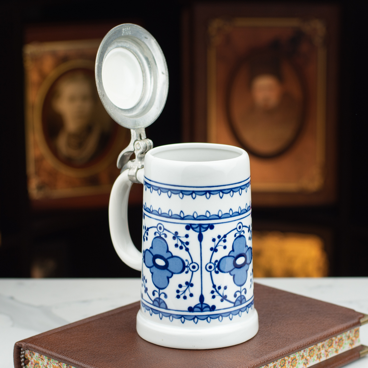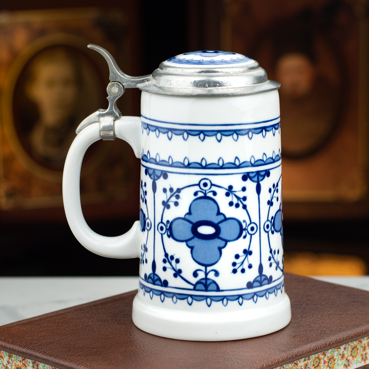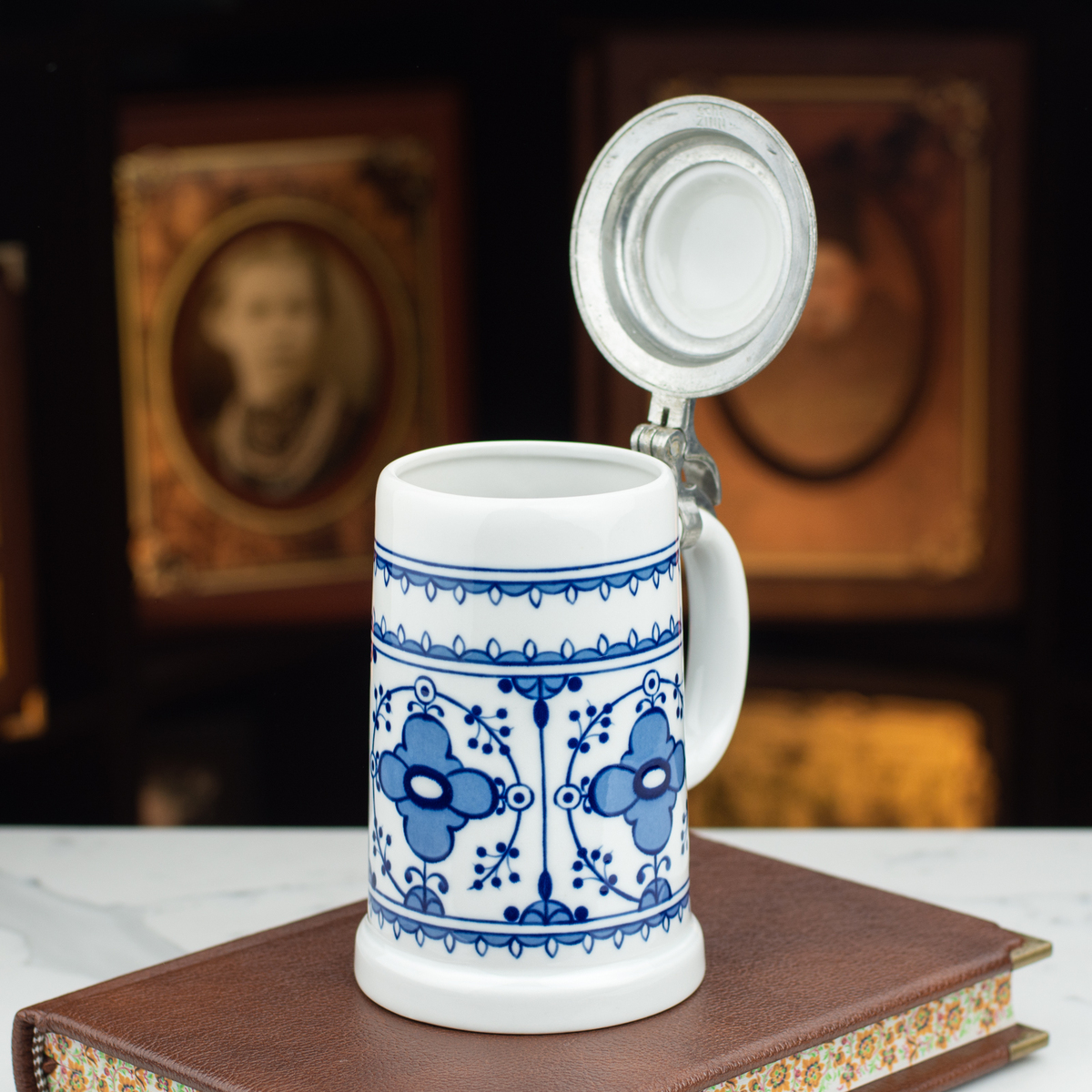 Фарфоровый пивной бокал с крышкой "Pattern" от Echt Kobalt, Германия, середина 20-го века