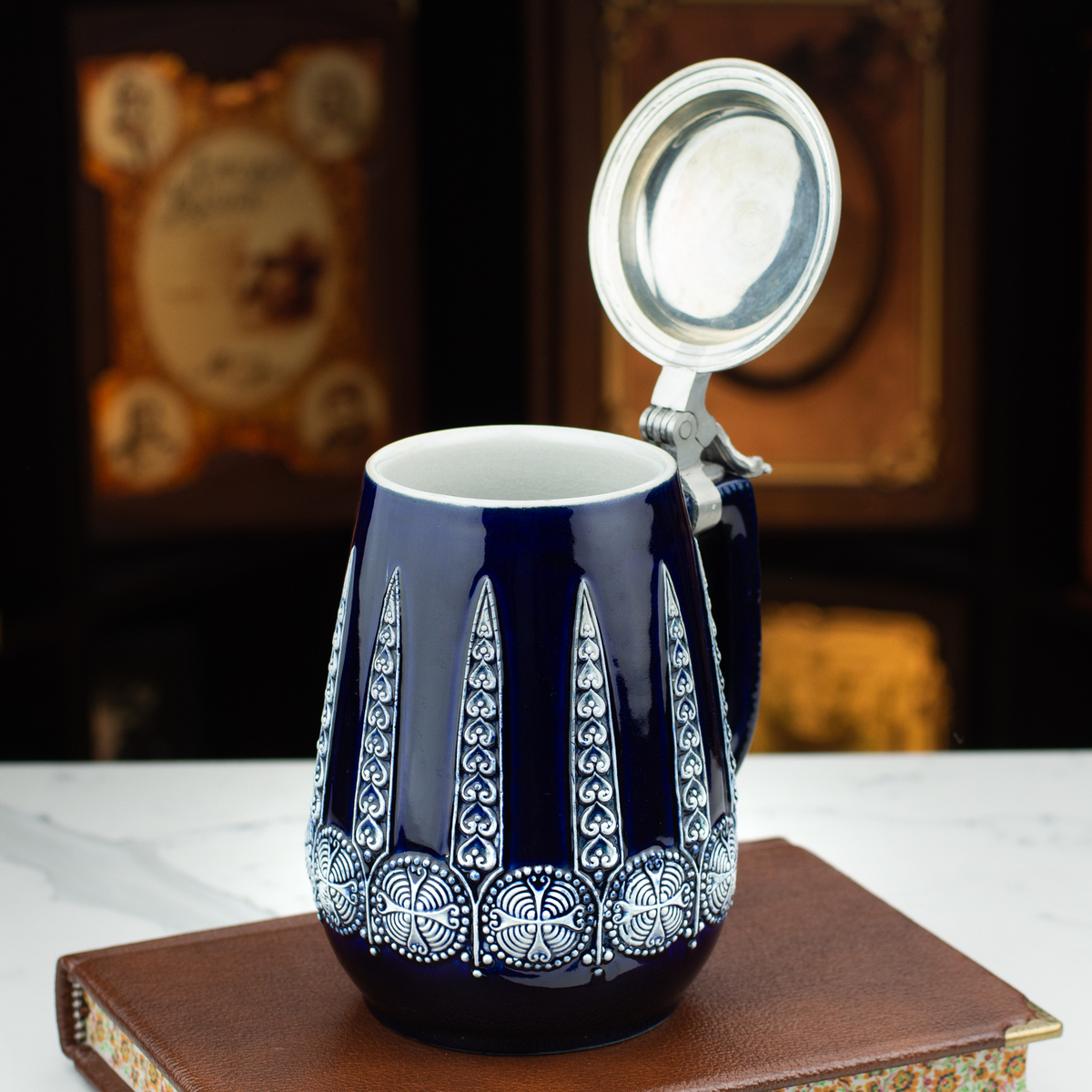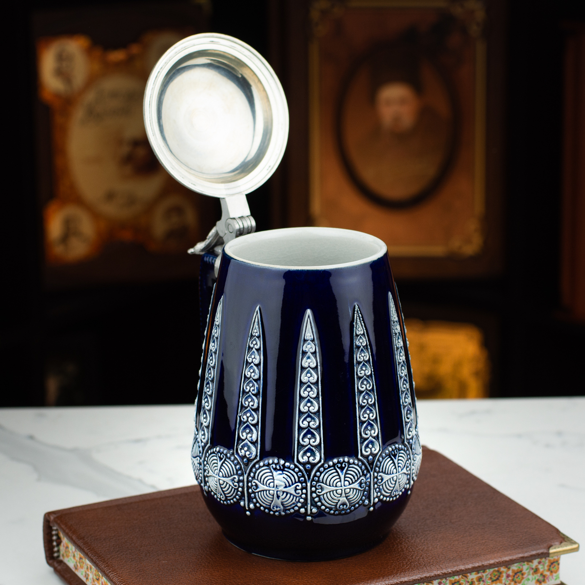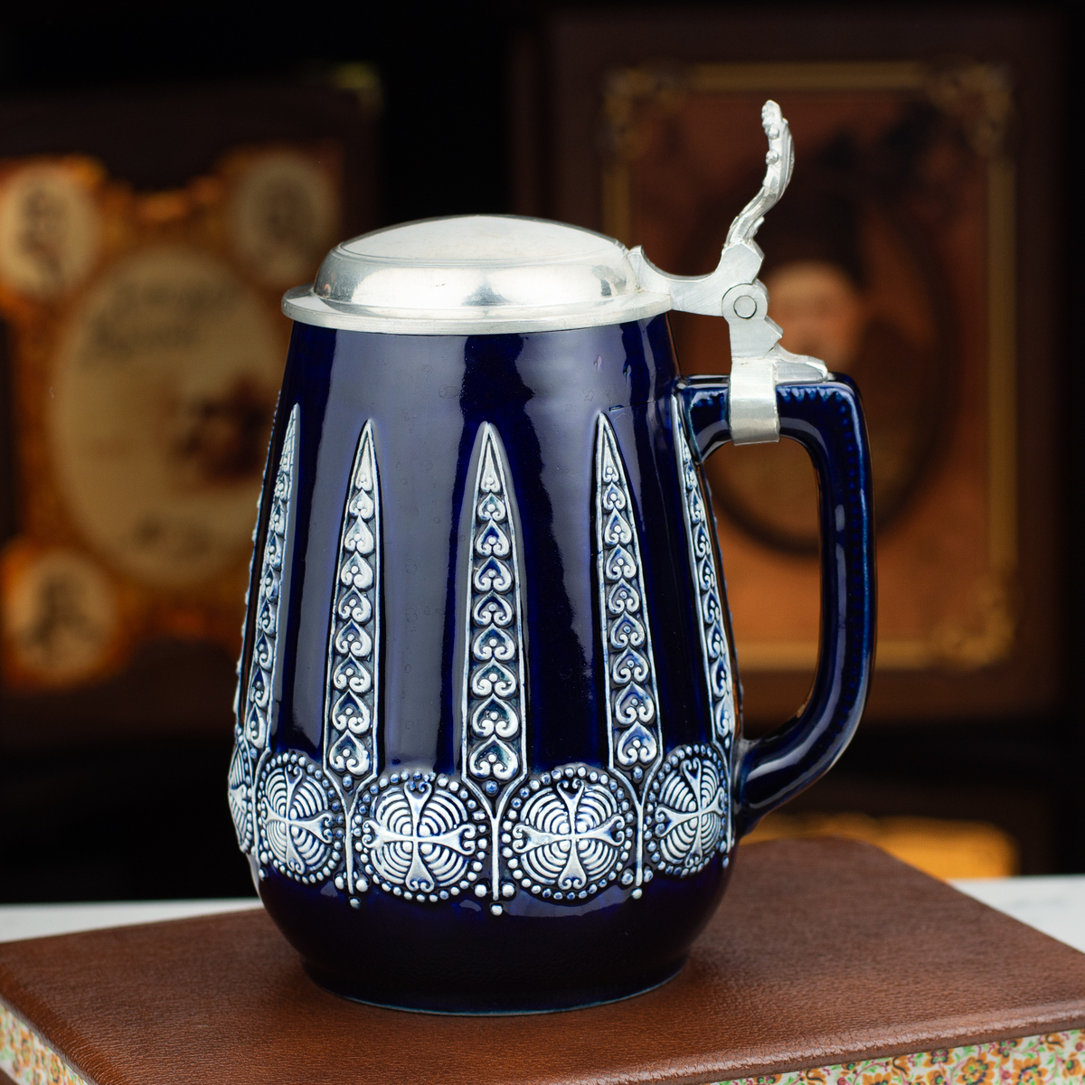 Фарфоровый пивной бокал с крышкой ручной работы "Antiquity", Германия, середина 20 века