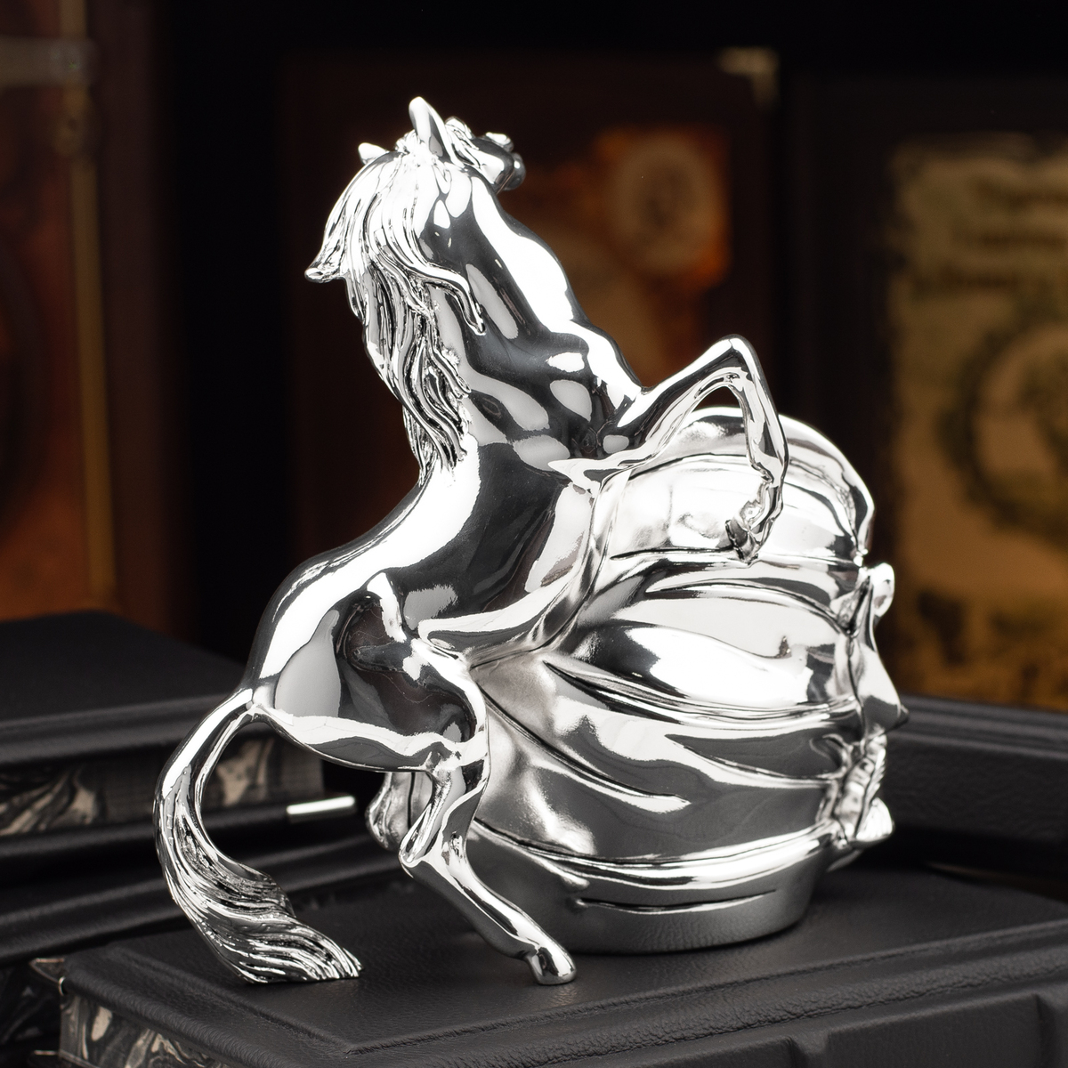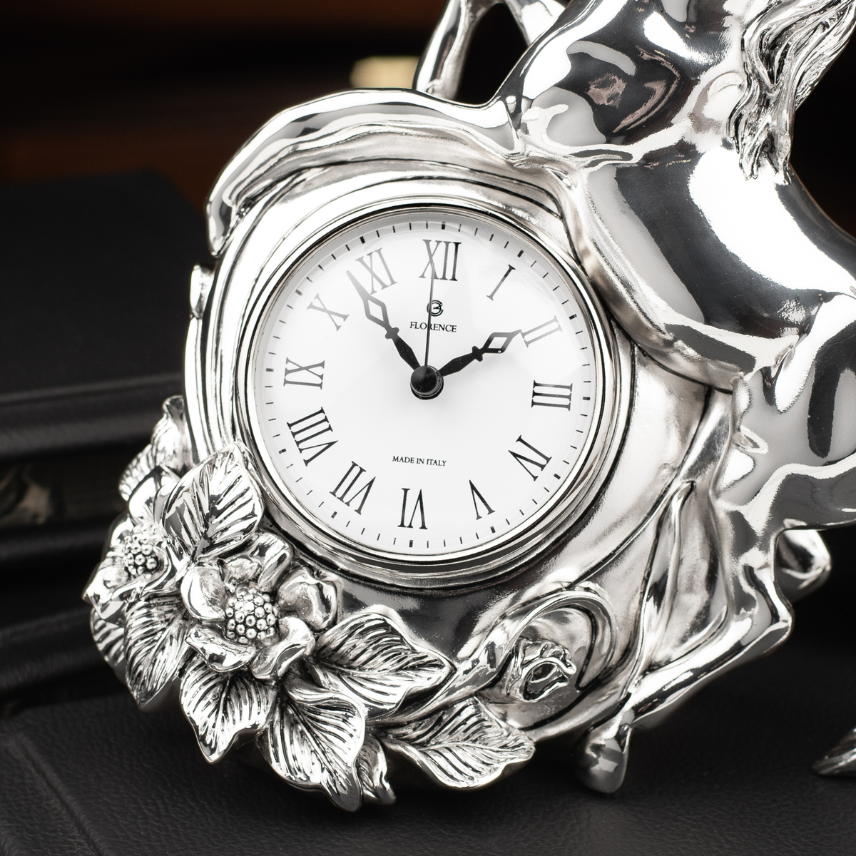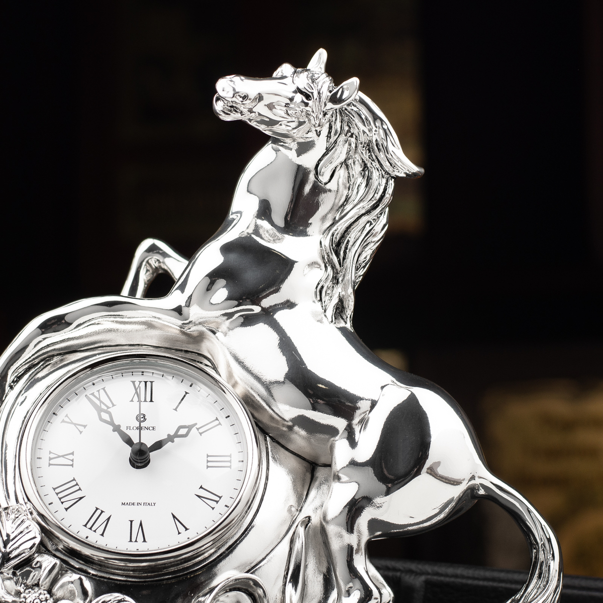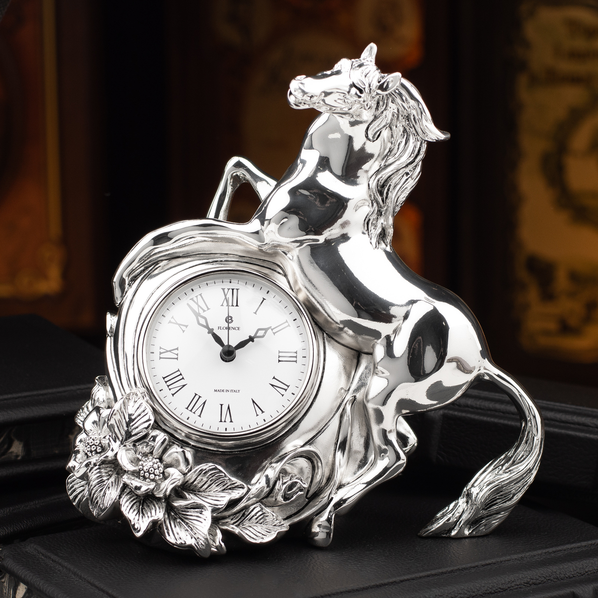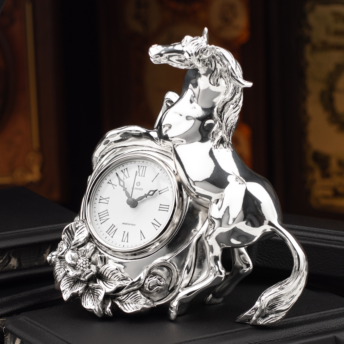 Посеребренная статуэтка с часами "Оберегающая время конь" от ArtBe