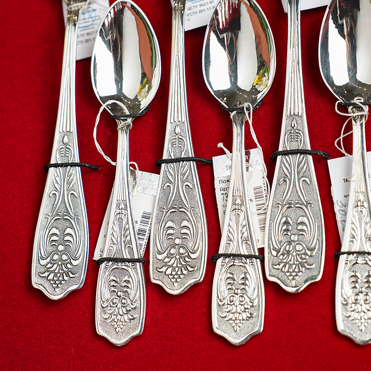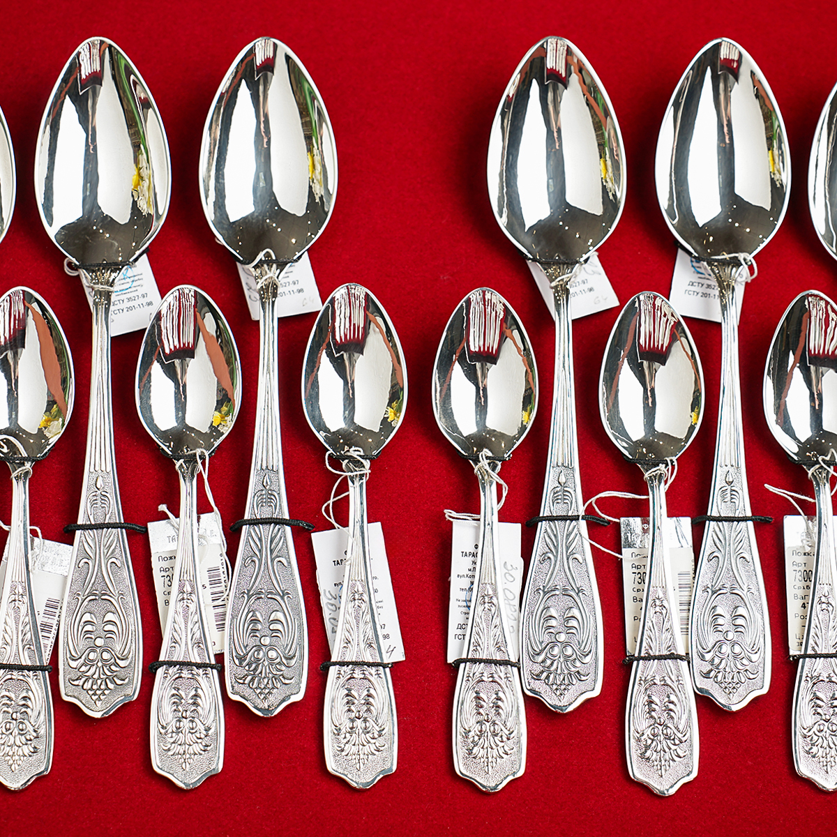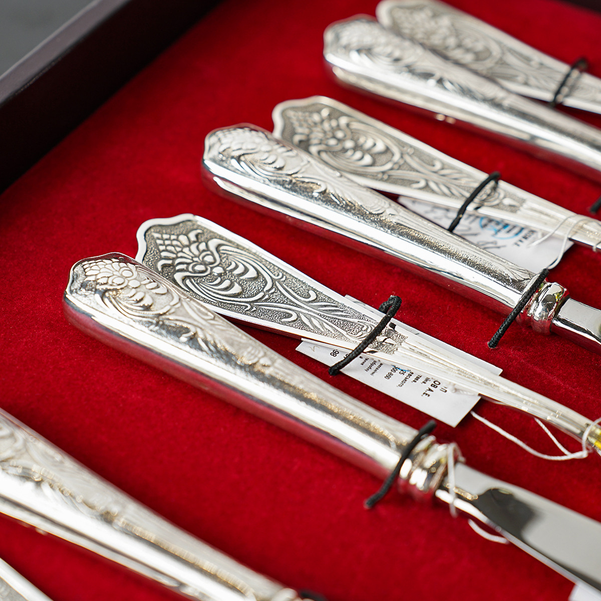 Премиальный серебряный столовый набор "Калина" на 24 предмета (12 ложек, 6 вилок, 6 ножей)