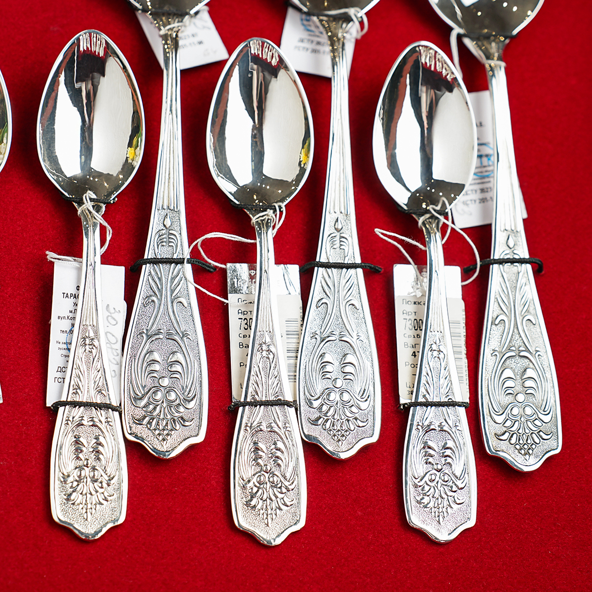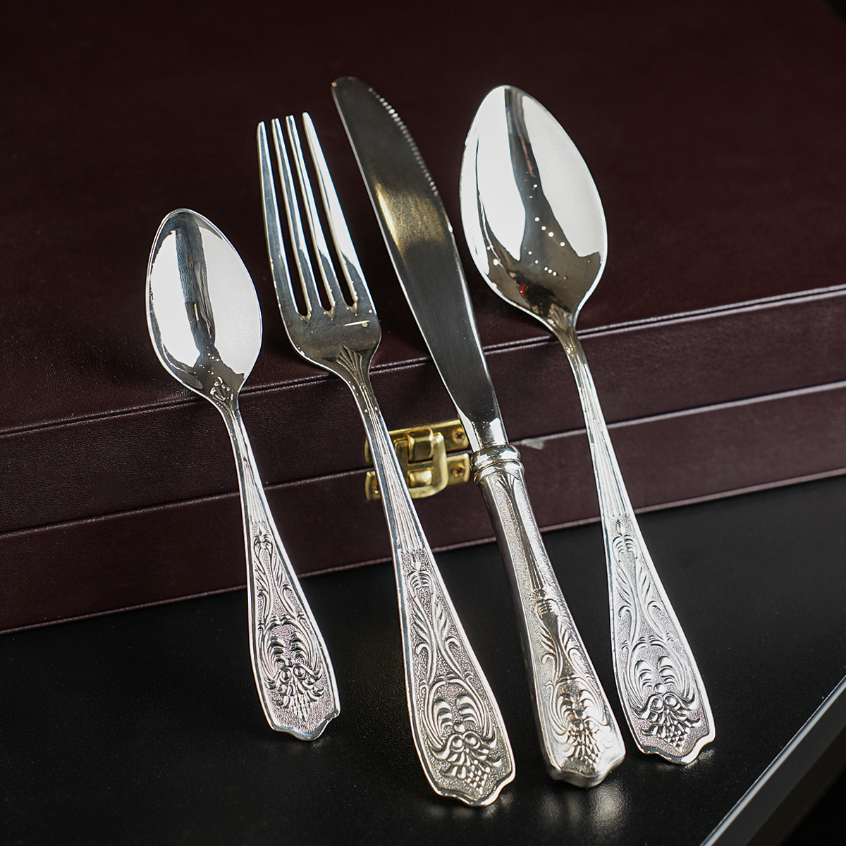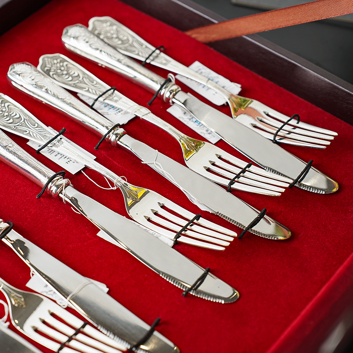 Премиальный серебряный столовый набор "Калина" на 24 предмета (12 ложек, 6 вилок, 6 ножей)
