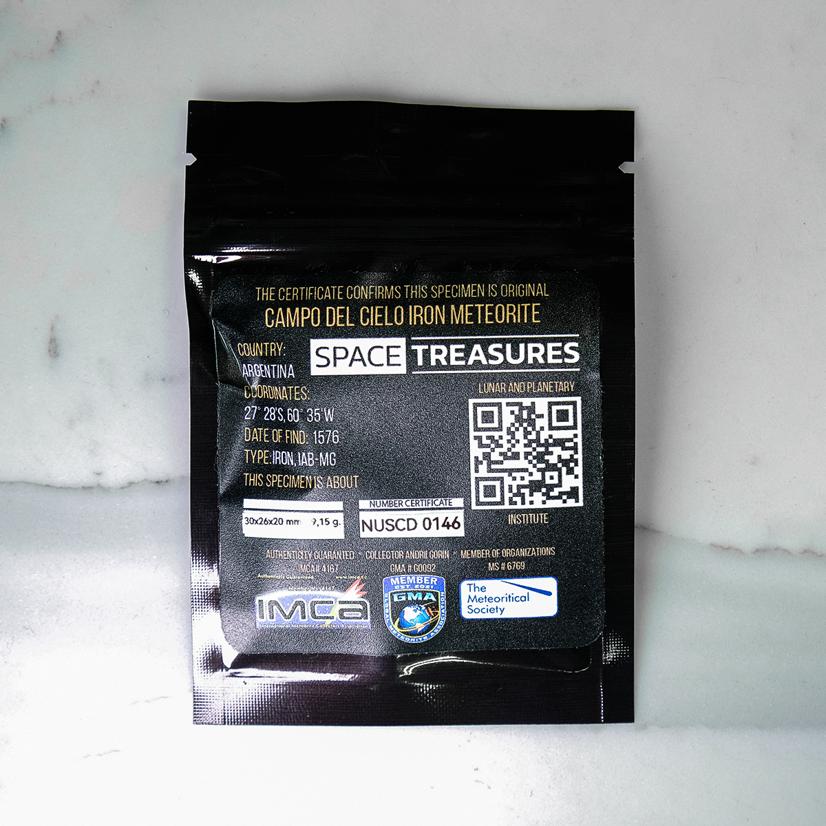 Сертифицированный метеорит "Campo Del Cielo NUSCD 0146", 39,15 г (Аргентина)