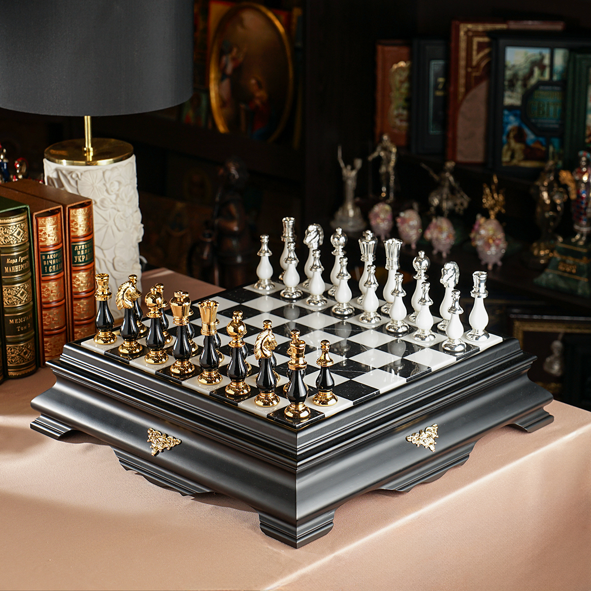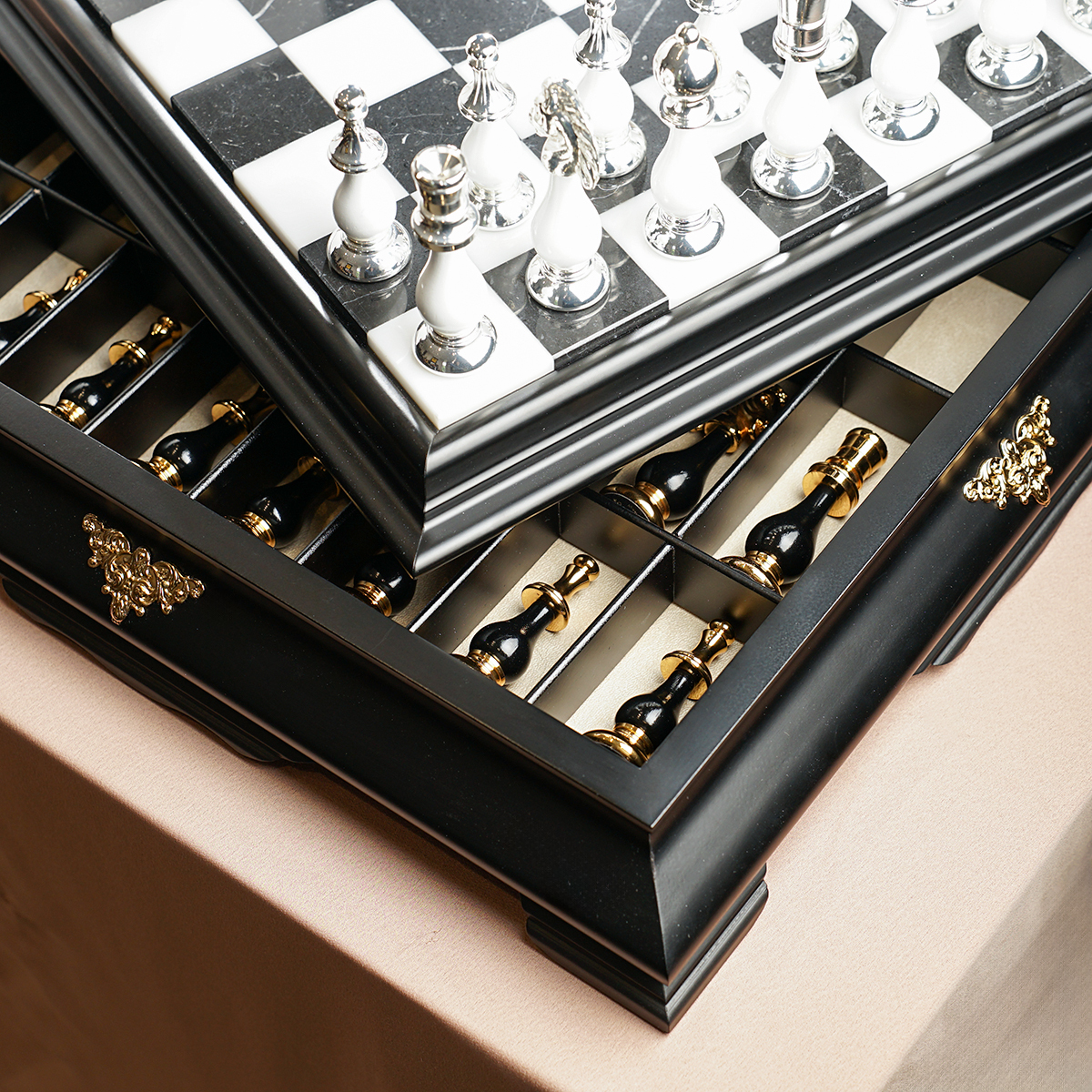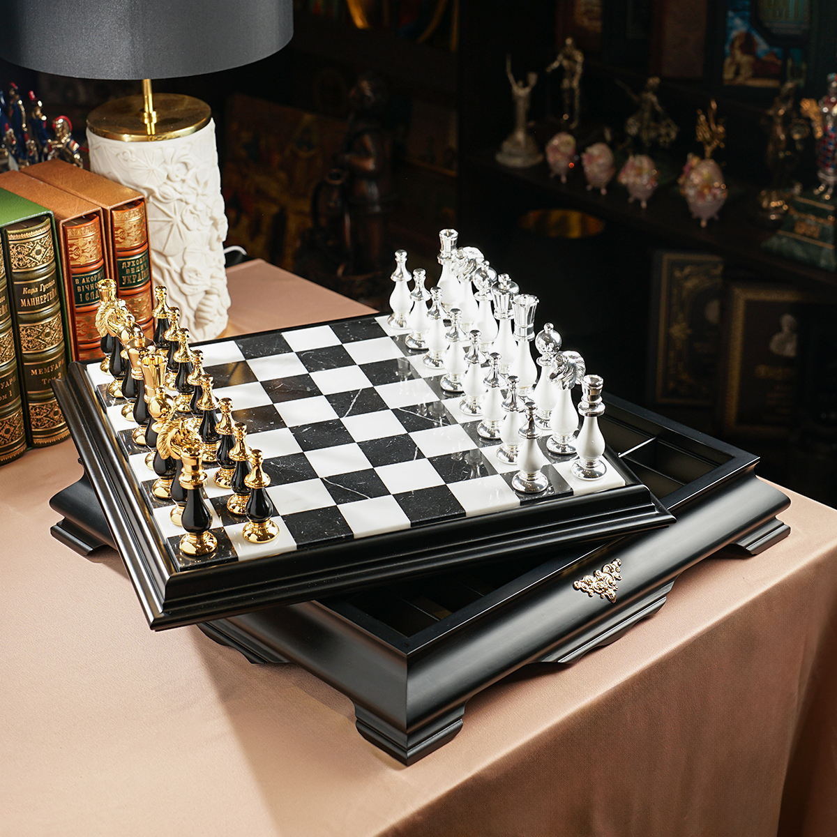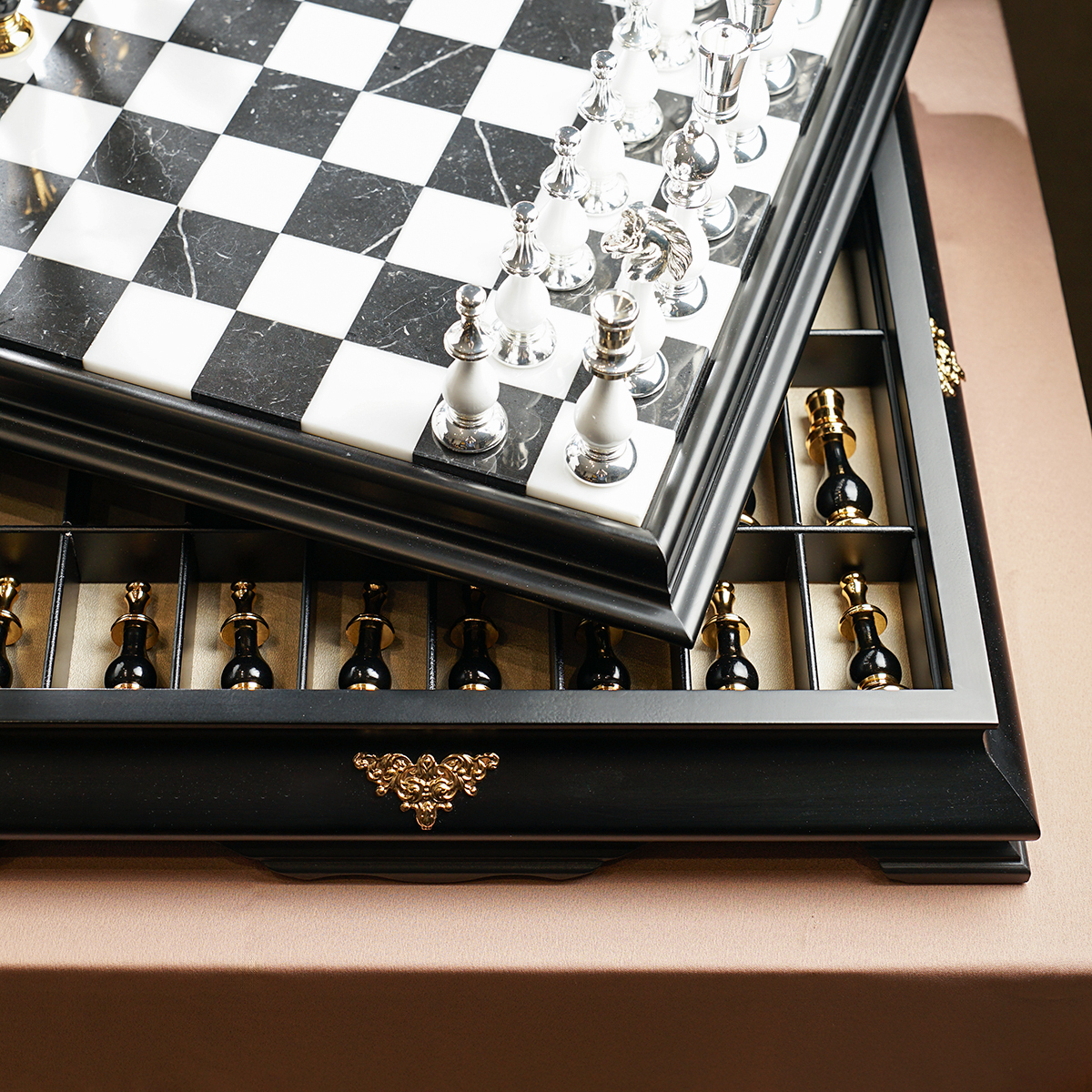 Шахматная доска из дерева и мрамора с фигурами "Carisma Segreto" от Italfama