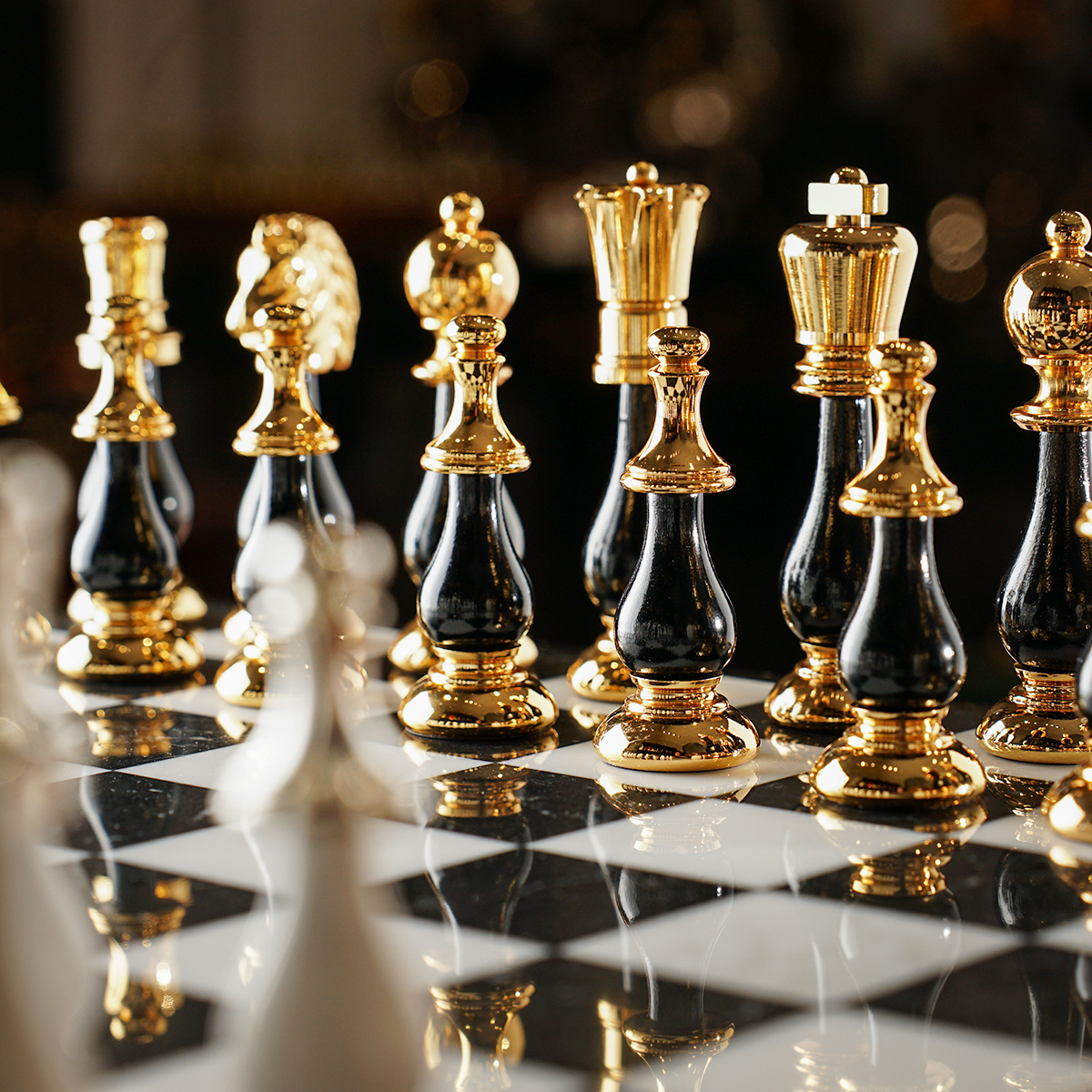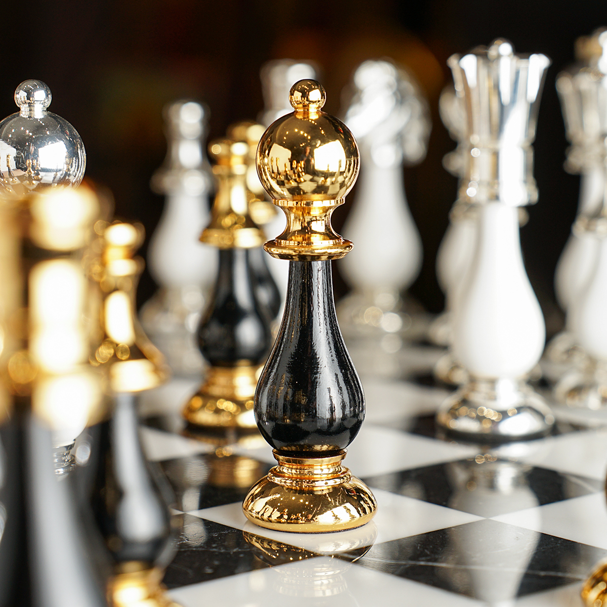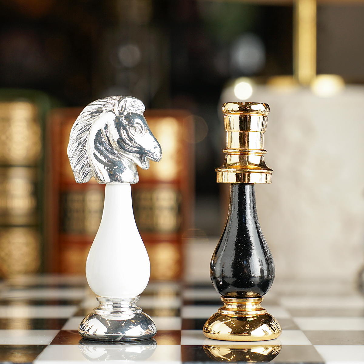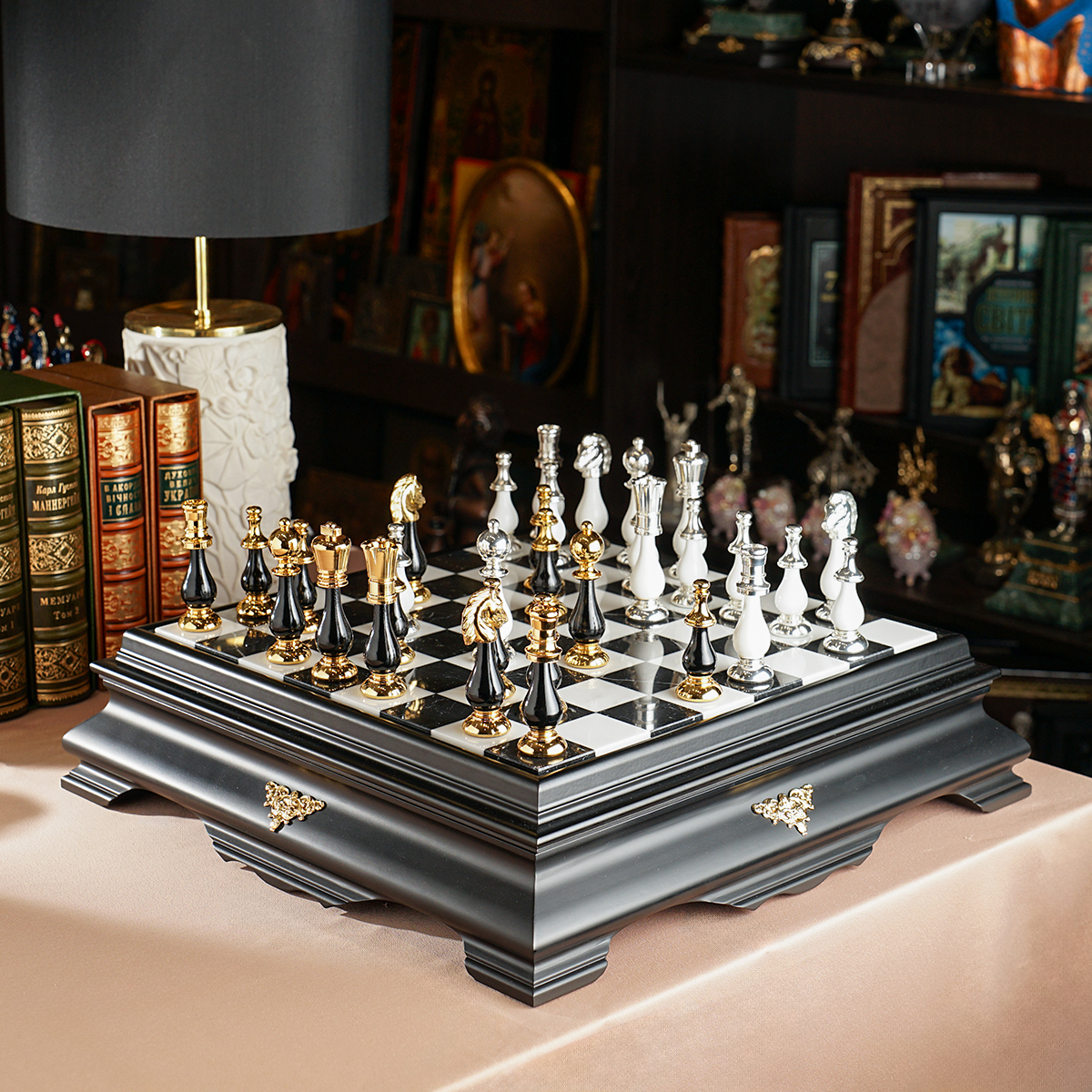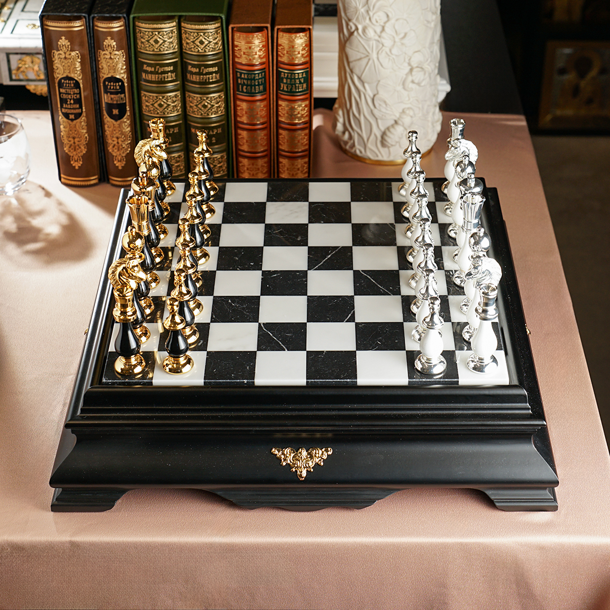 Шахматная доска из дерева и мрамора с фигурами "Carisma Segreto" от Italfama