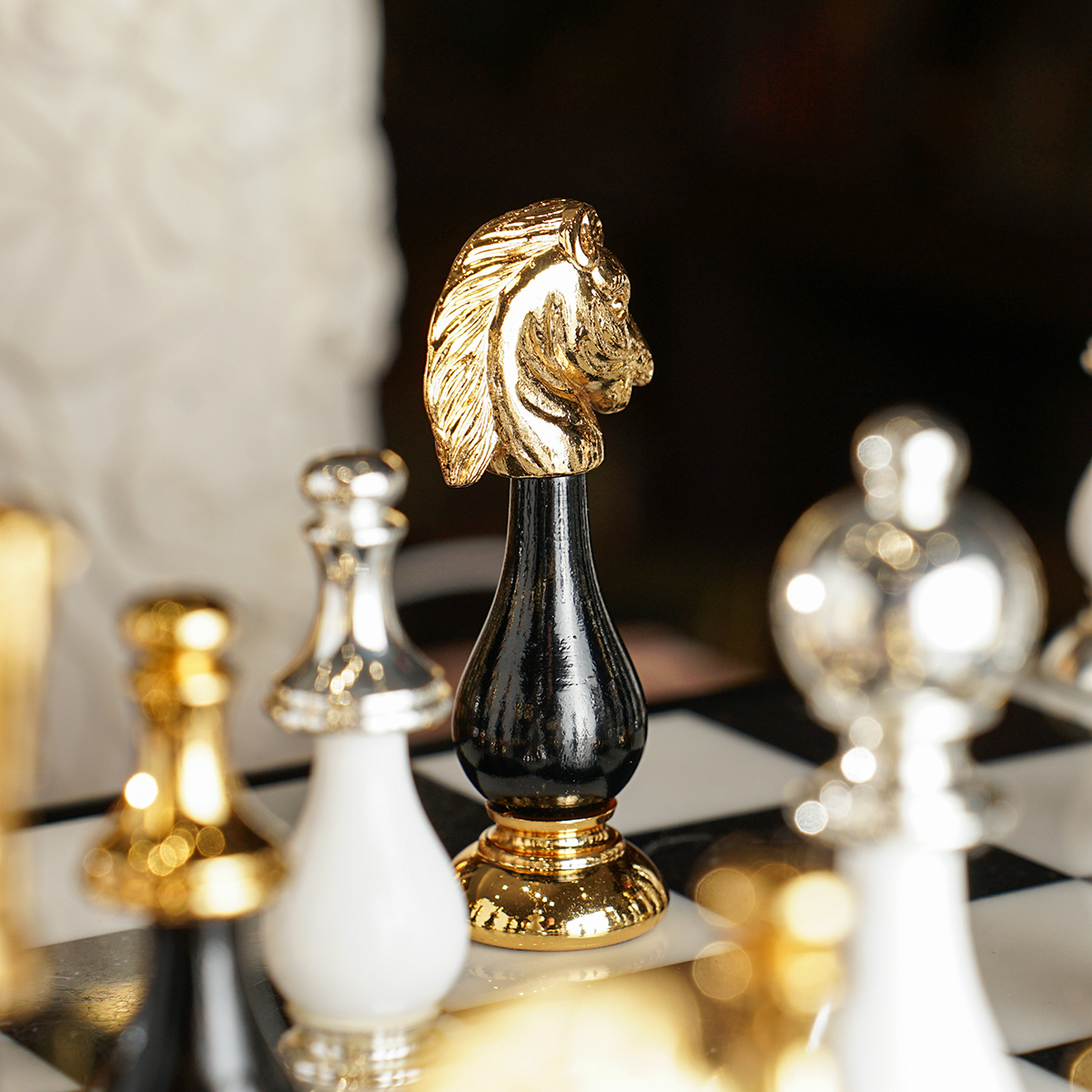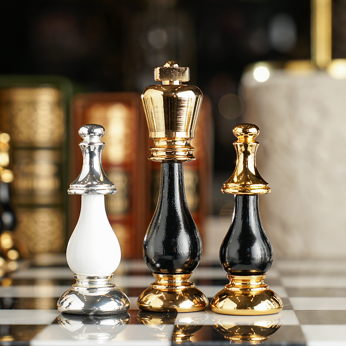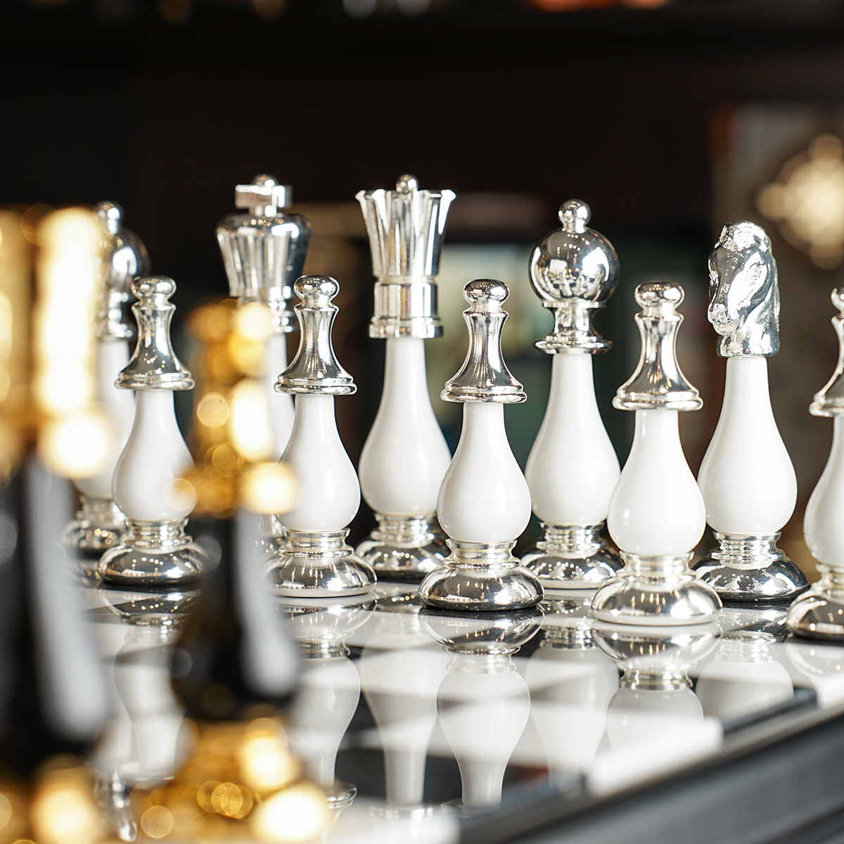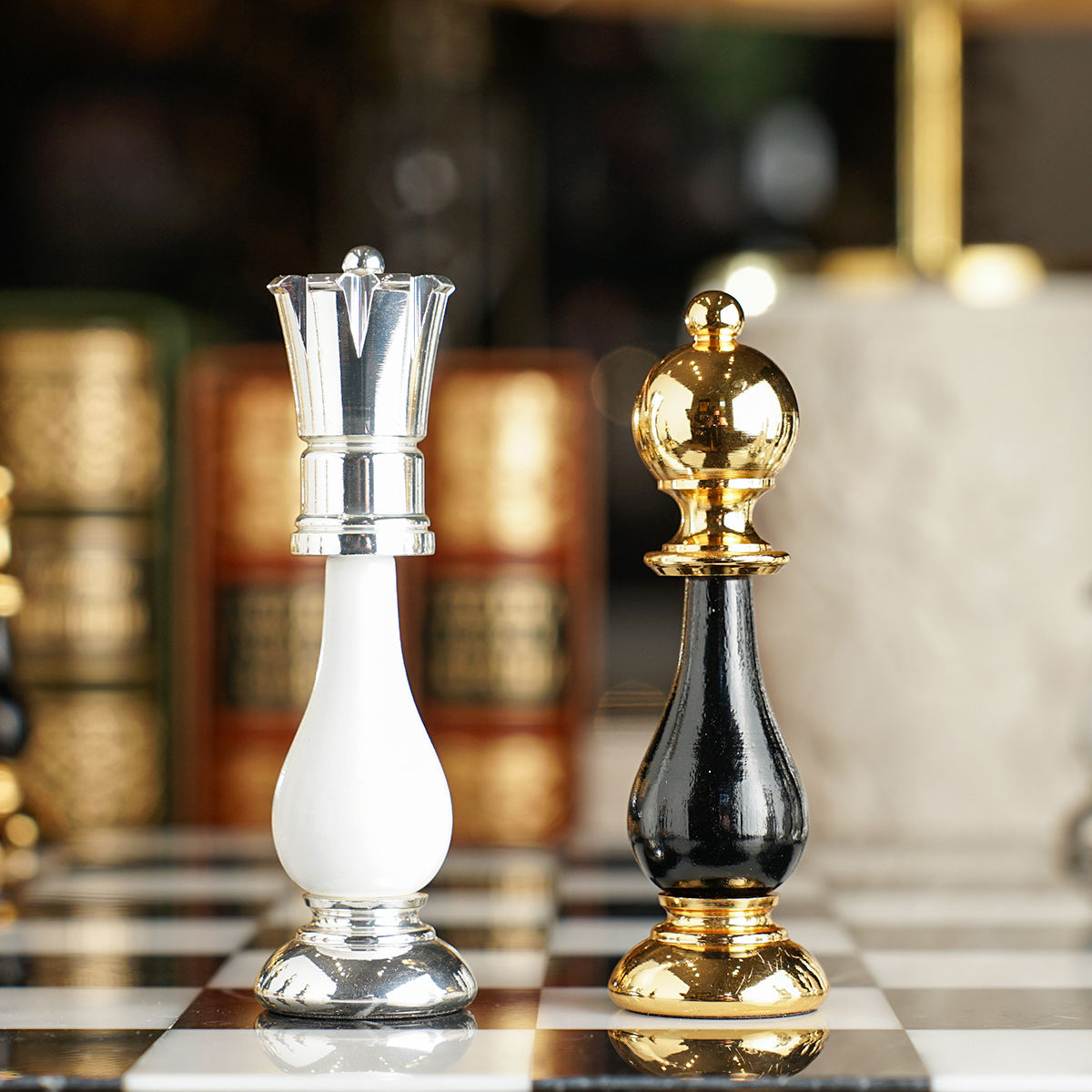 Шахматная доска из дерева и мрамора с фигурами "Carisma Segreto" от Italfama
