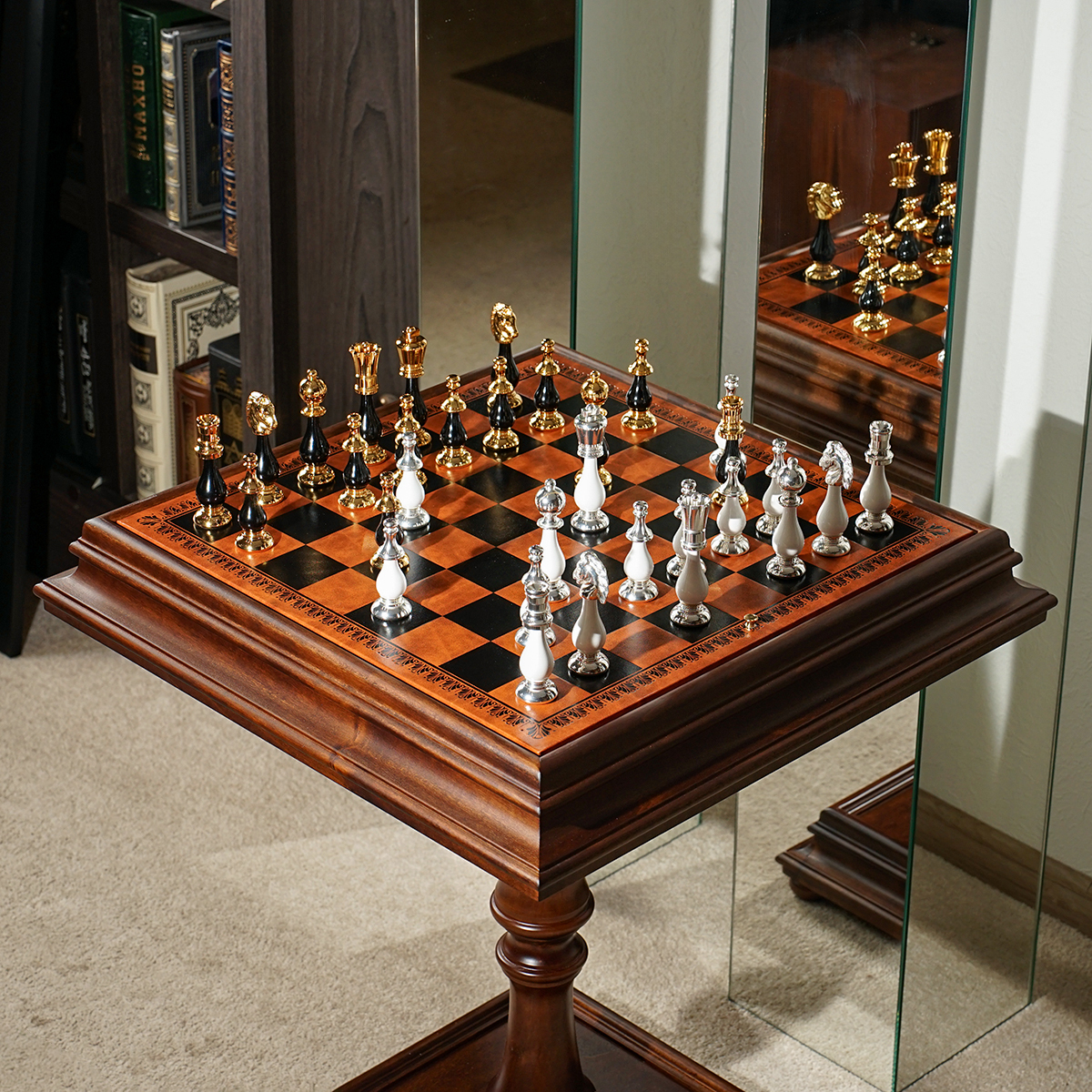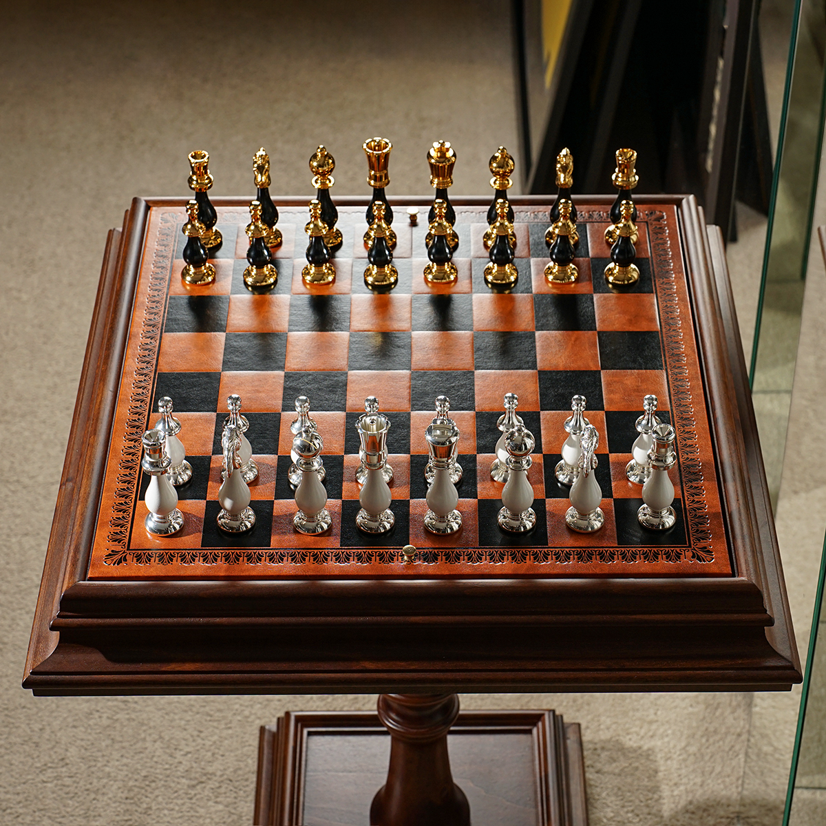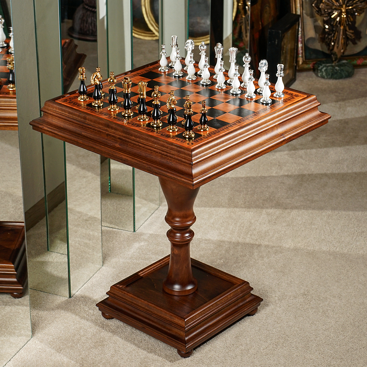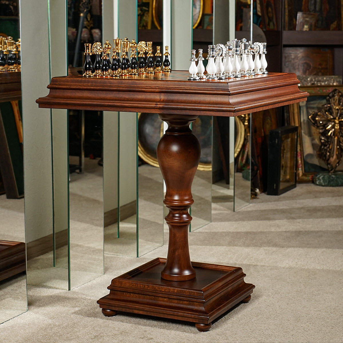 Шахматный стол "Aeternum" с деревянной доской и фигурками с позолотой и серебром от ITALFAMA