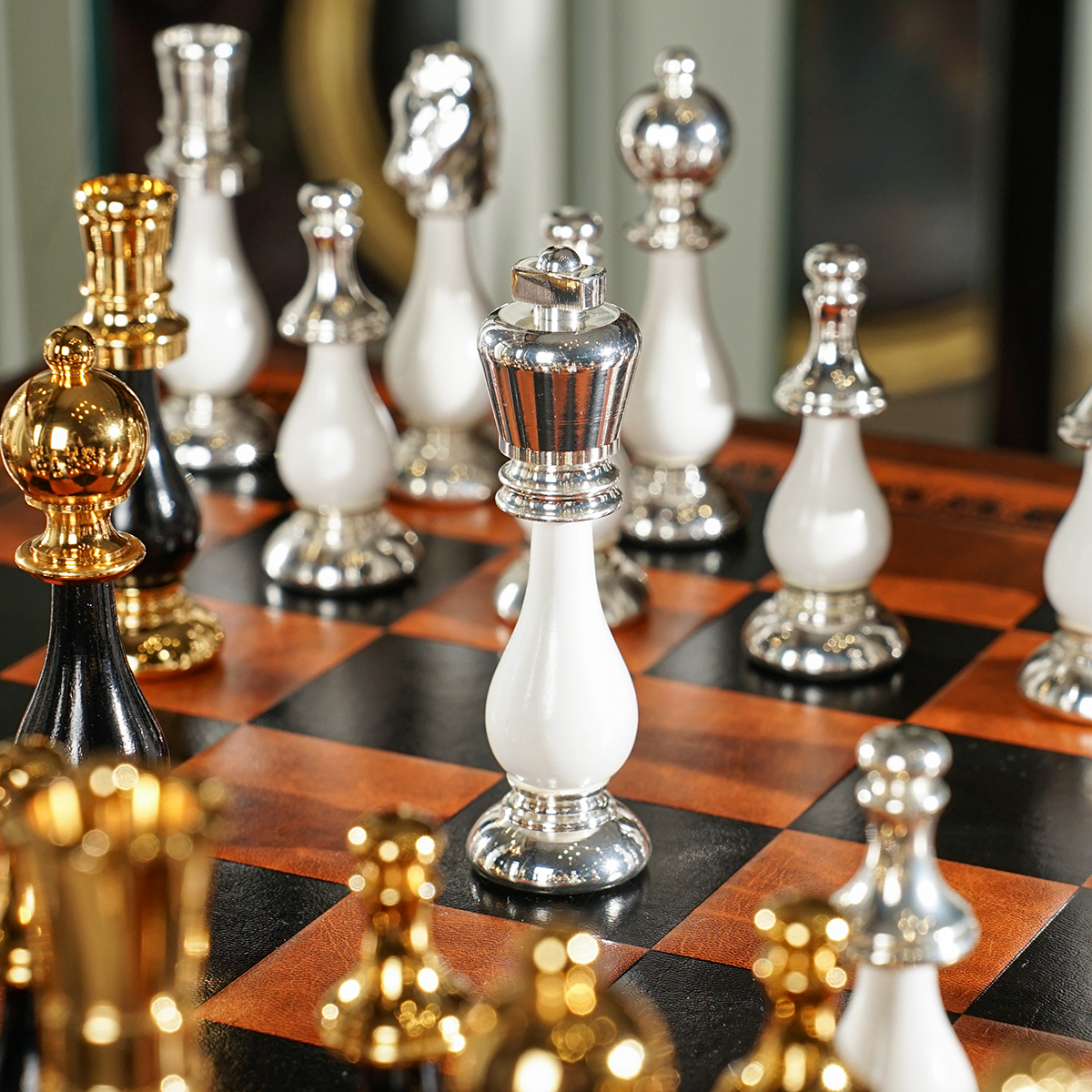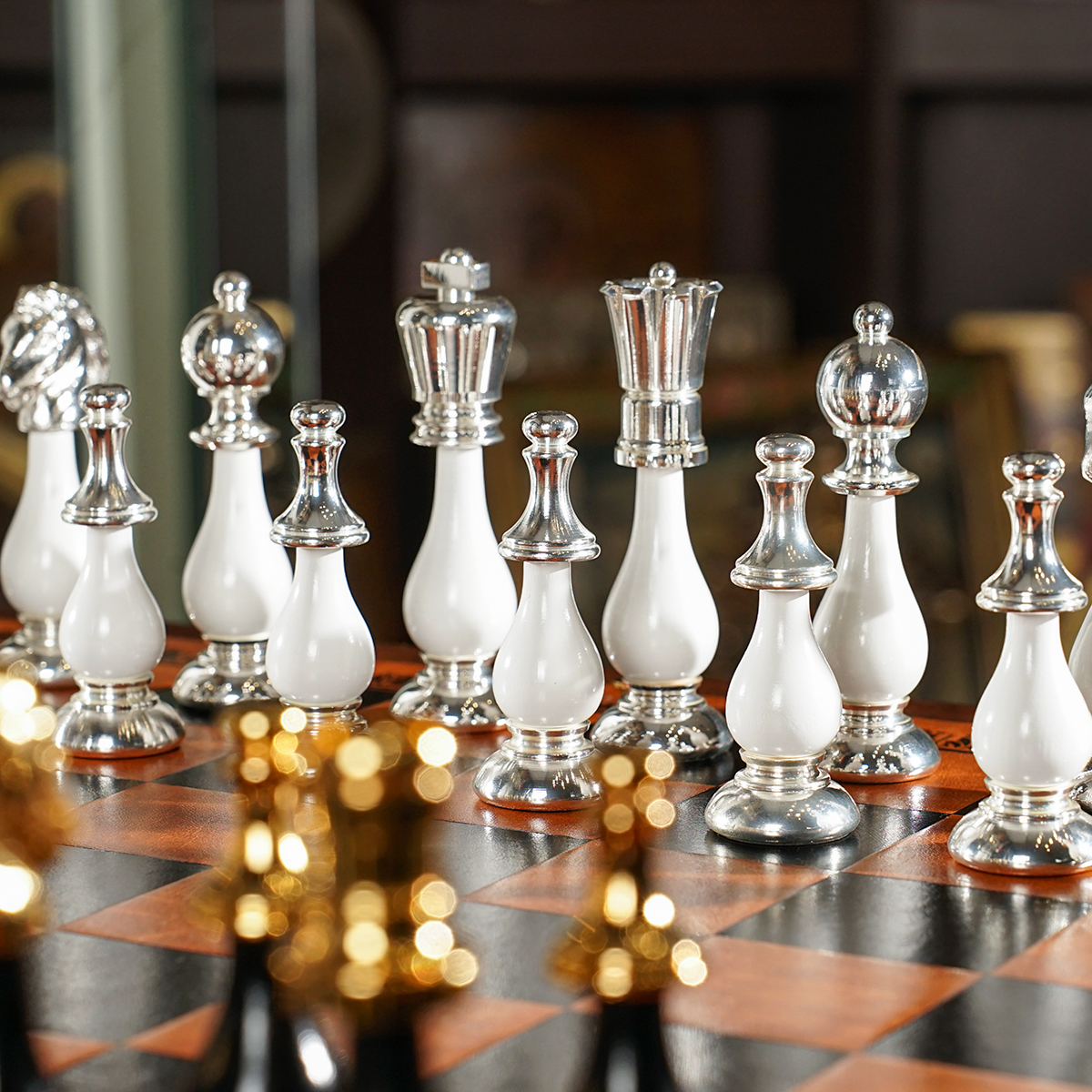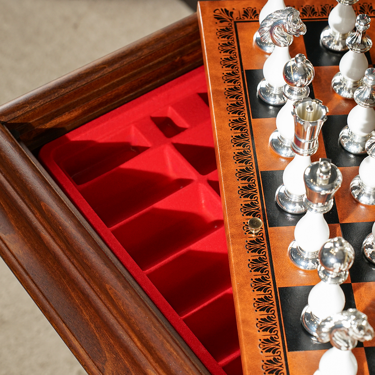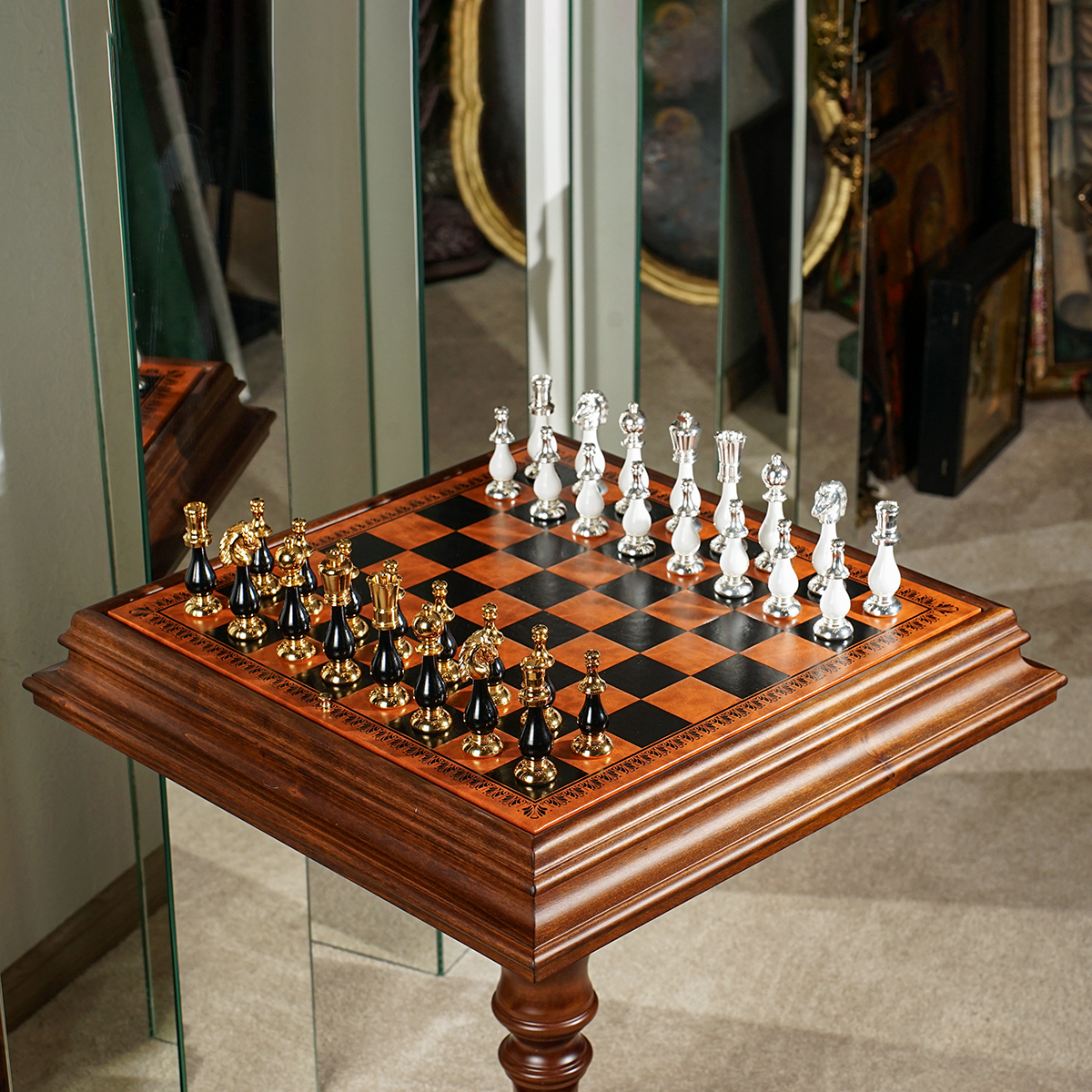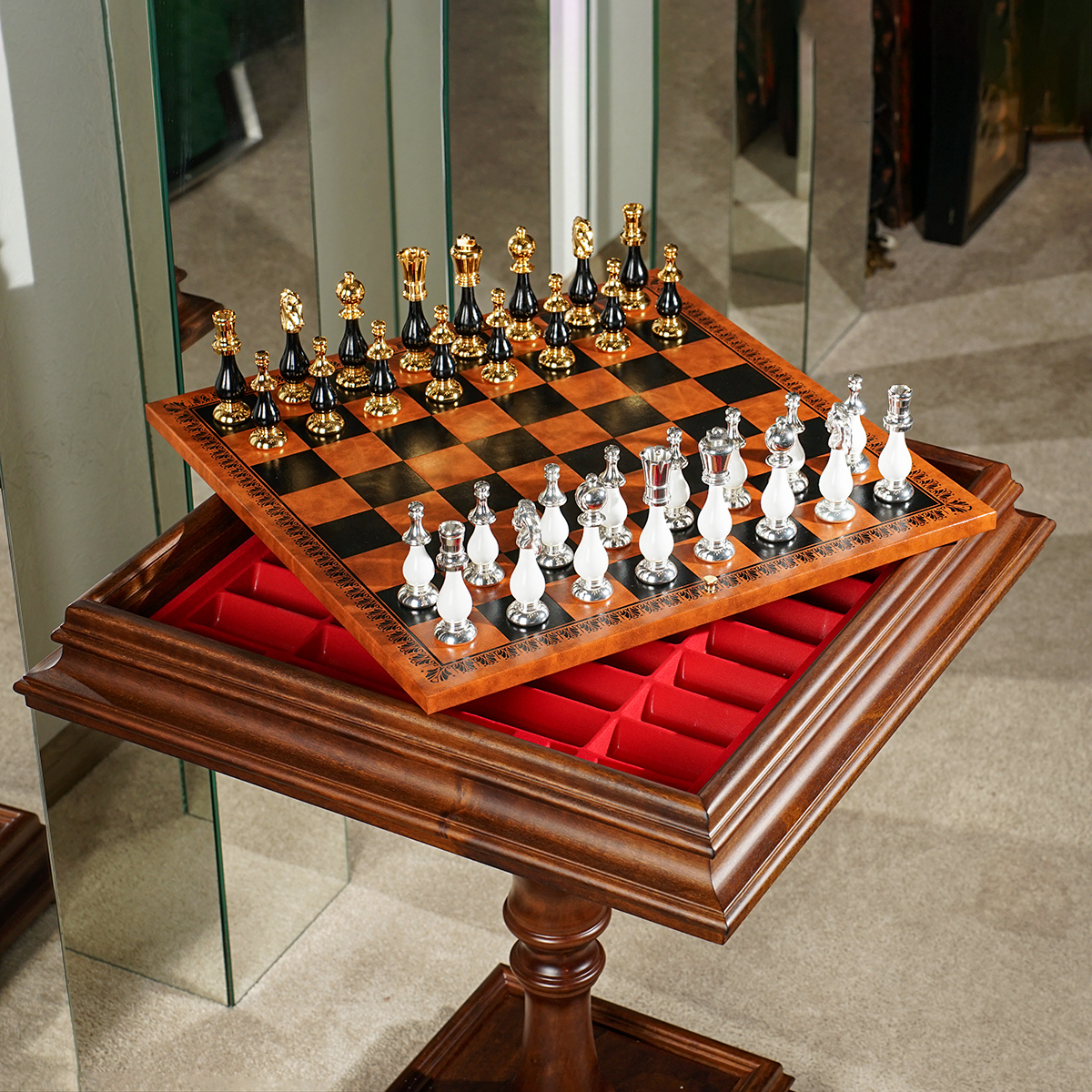 Шахматный стол "Aeternum" с деревянной доской и фигурками с позолотой и серебром от ITALFAMA