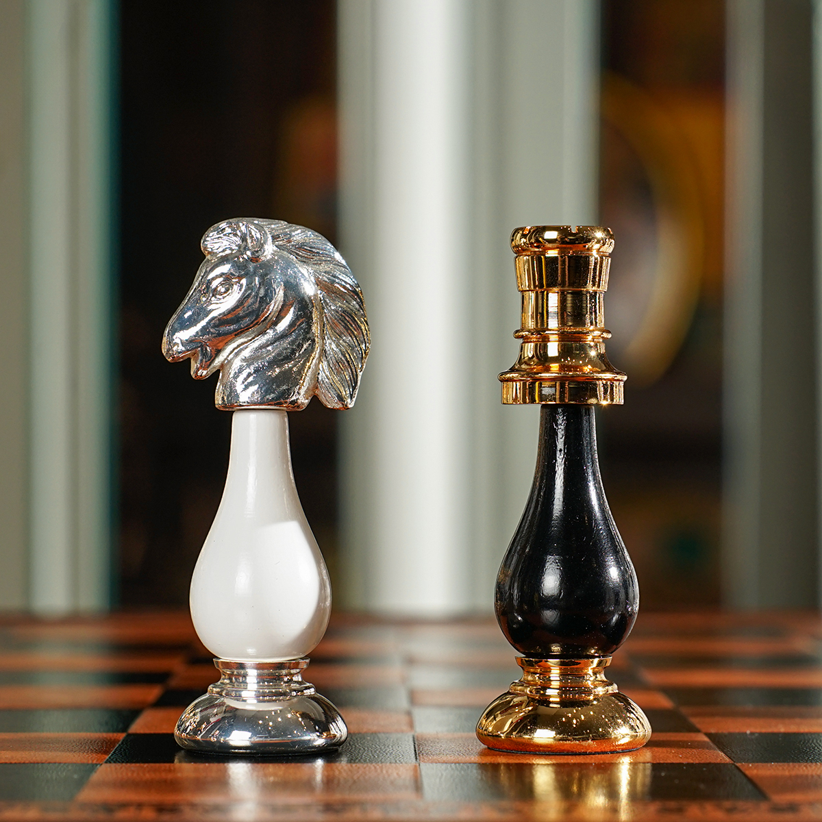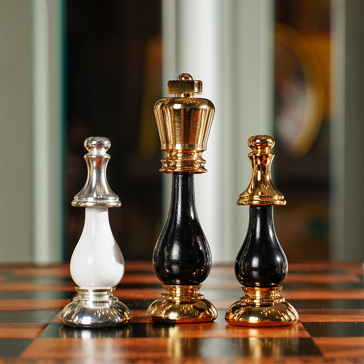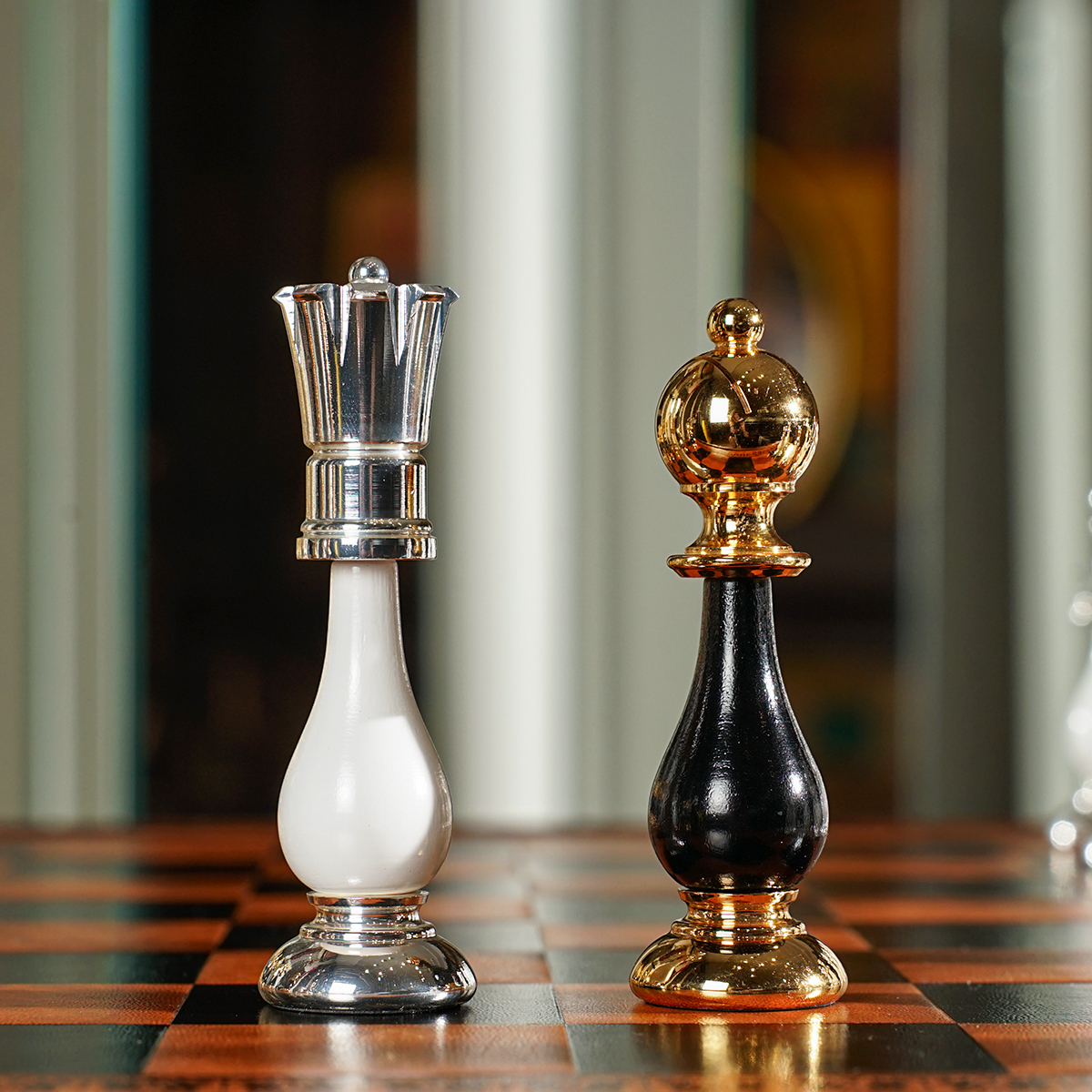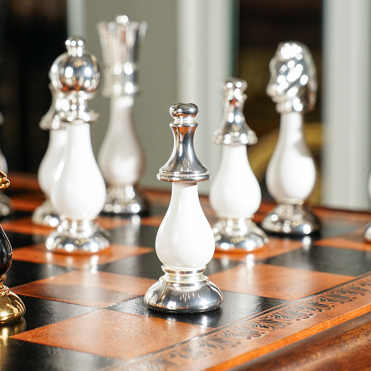 Шахматный стол "Aeternum" с деревянной доской и фигурками с позолотой и серебром от ITALFAMA
