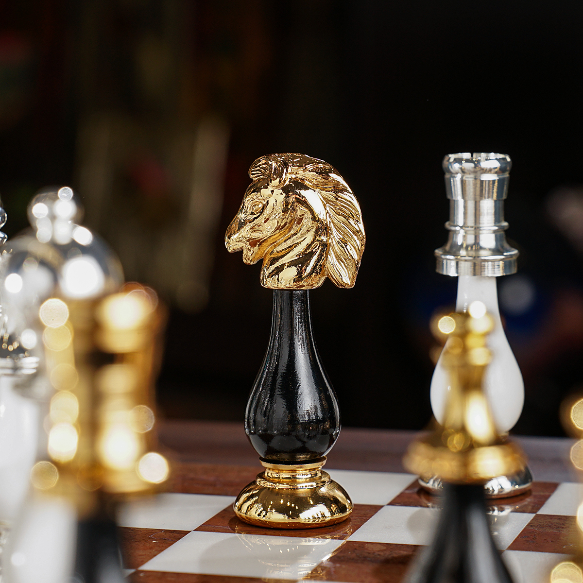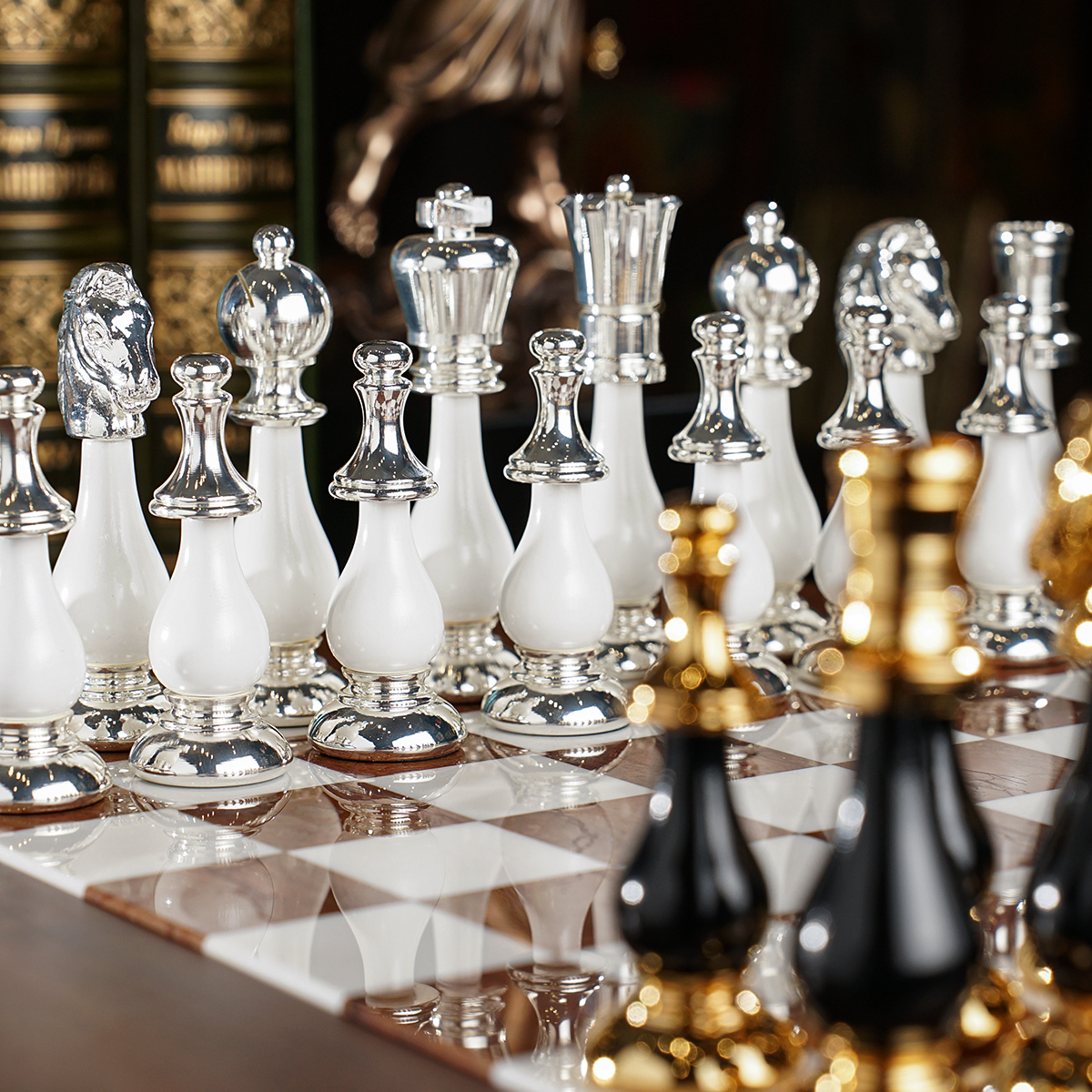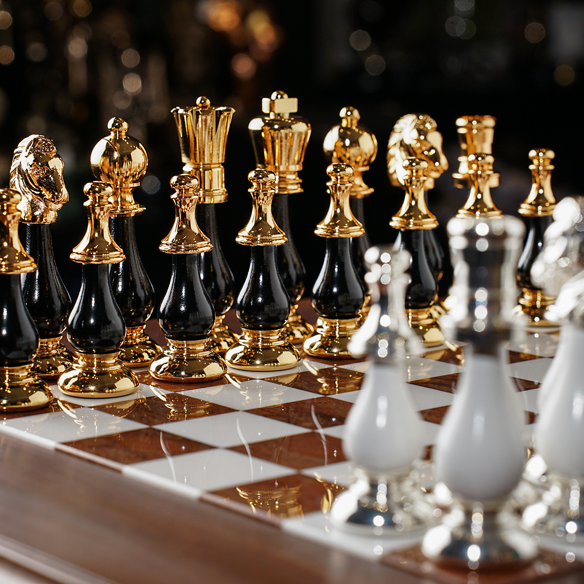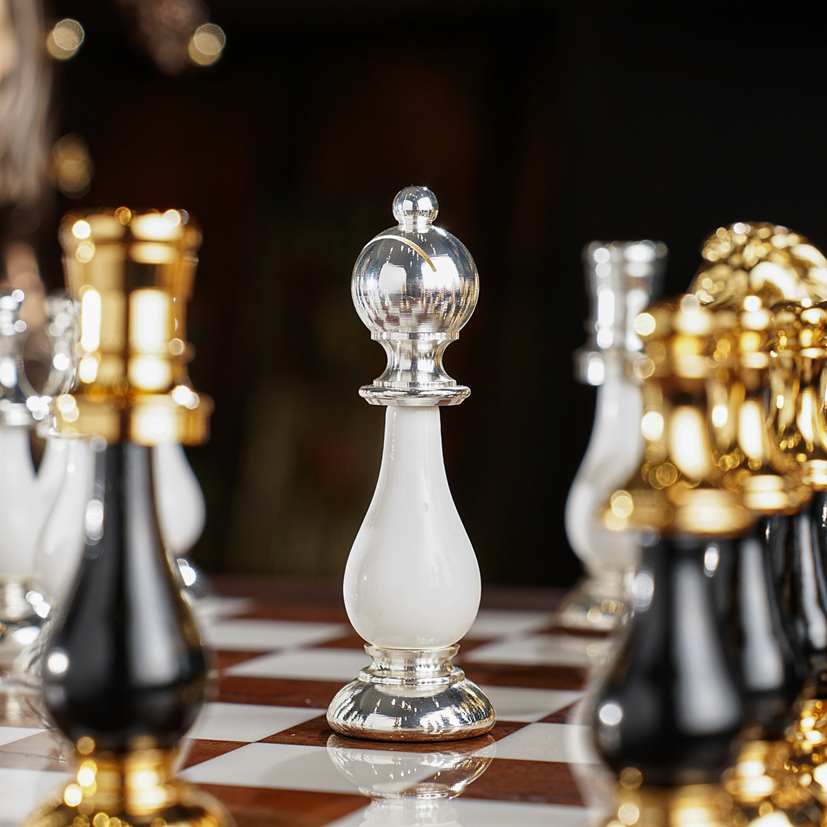 Шахматный набор "Arcanum" с деревянной доской (46х46 см) и фигурками с позолотой и посеребрением от ITALFAMA