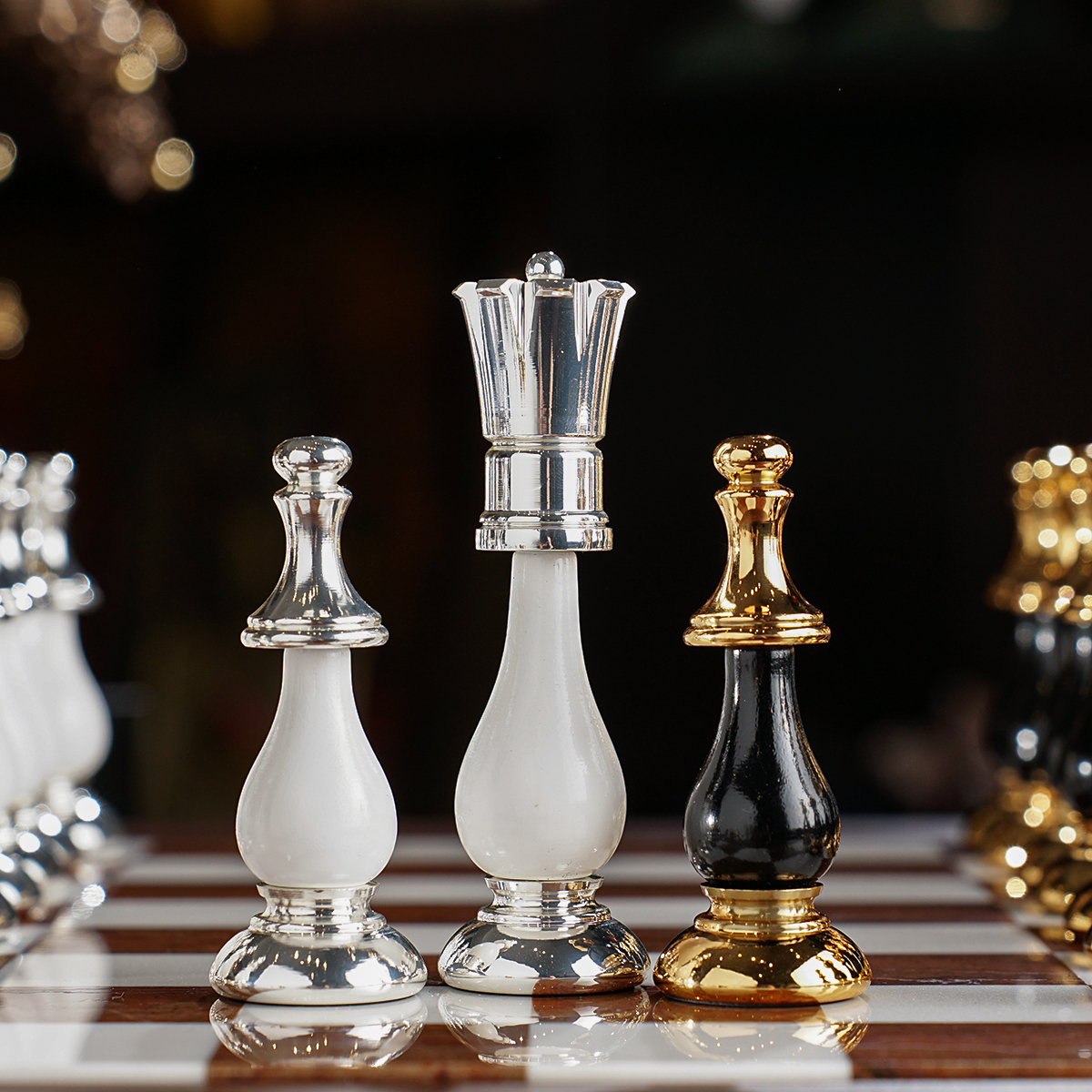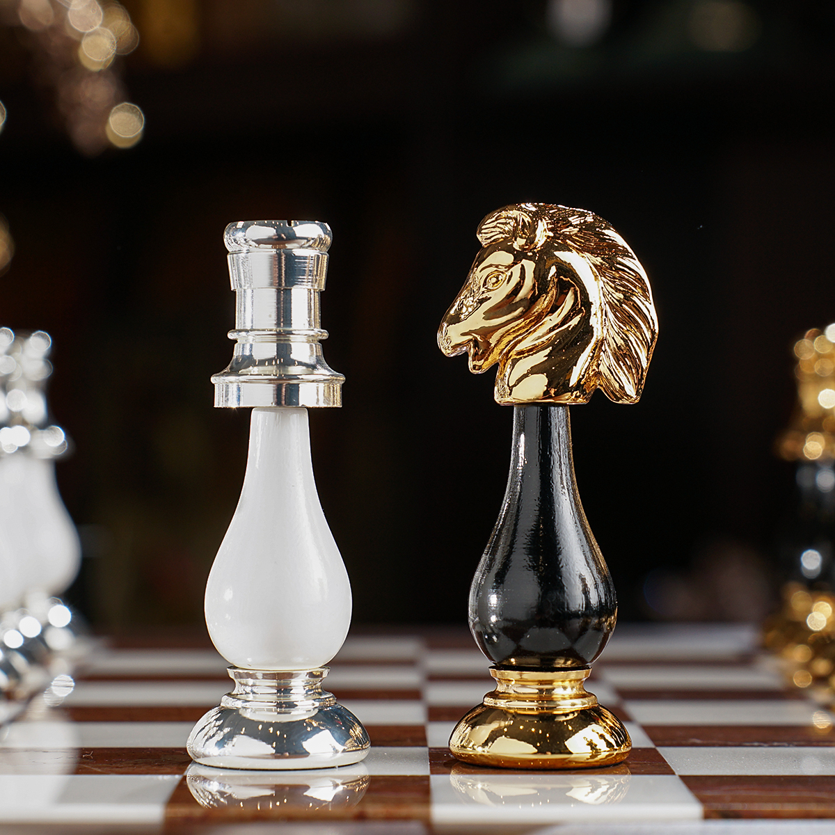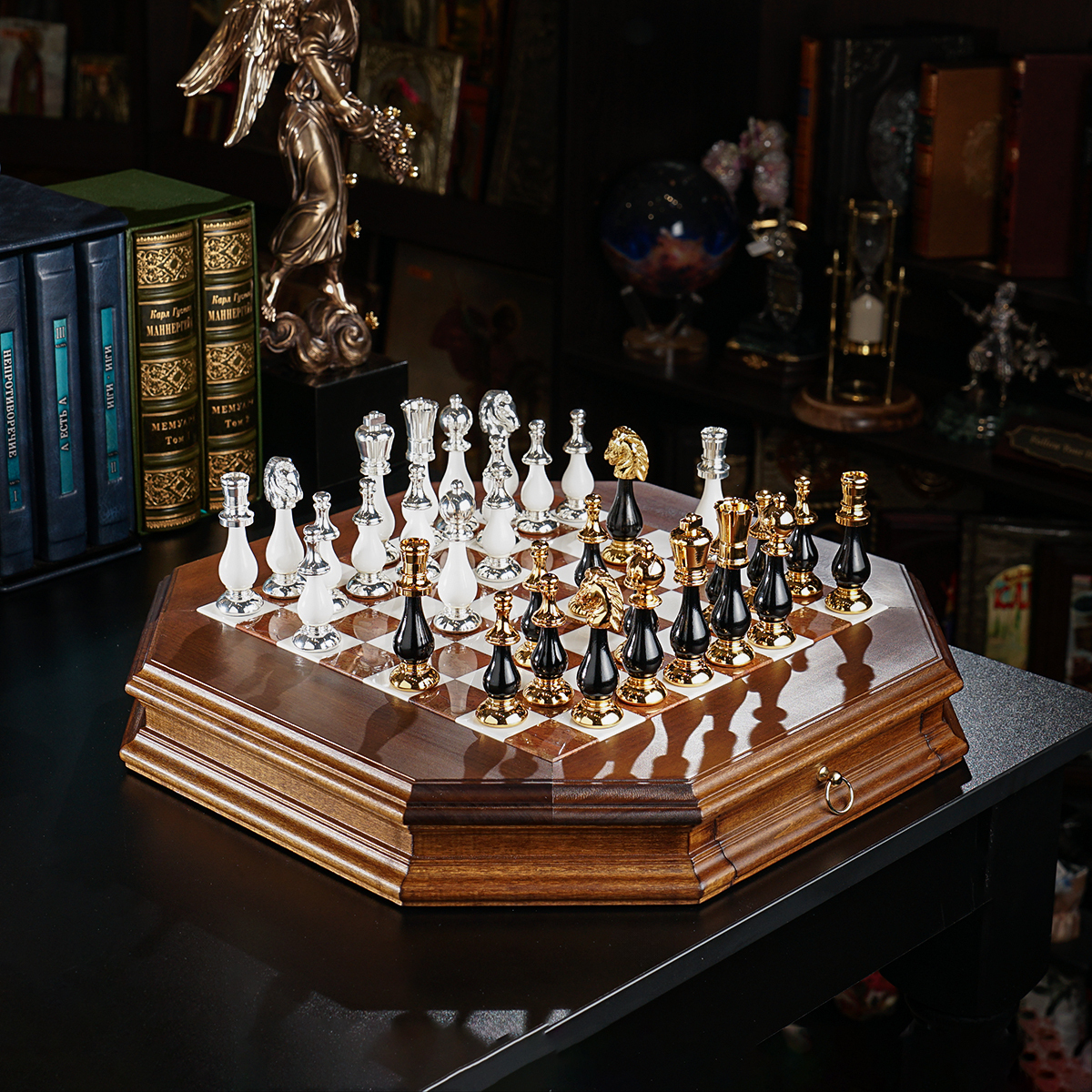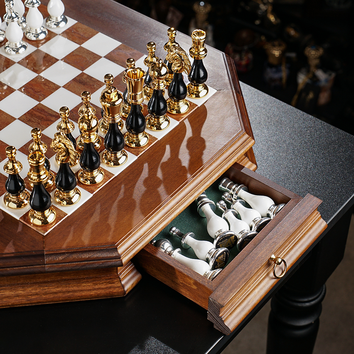 Шахматный набор "Arcanum" с деревянной доской (46х46 см) и фигурками с позолотой и посеребрением от ITALFAMA