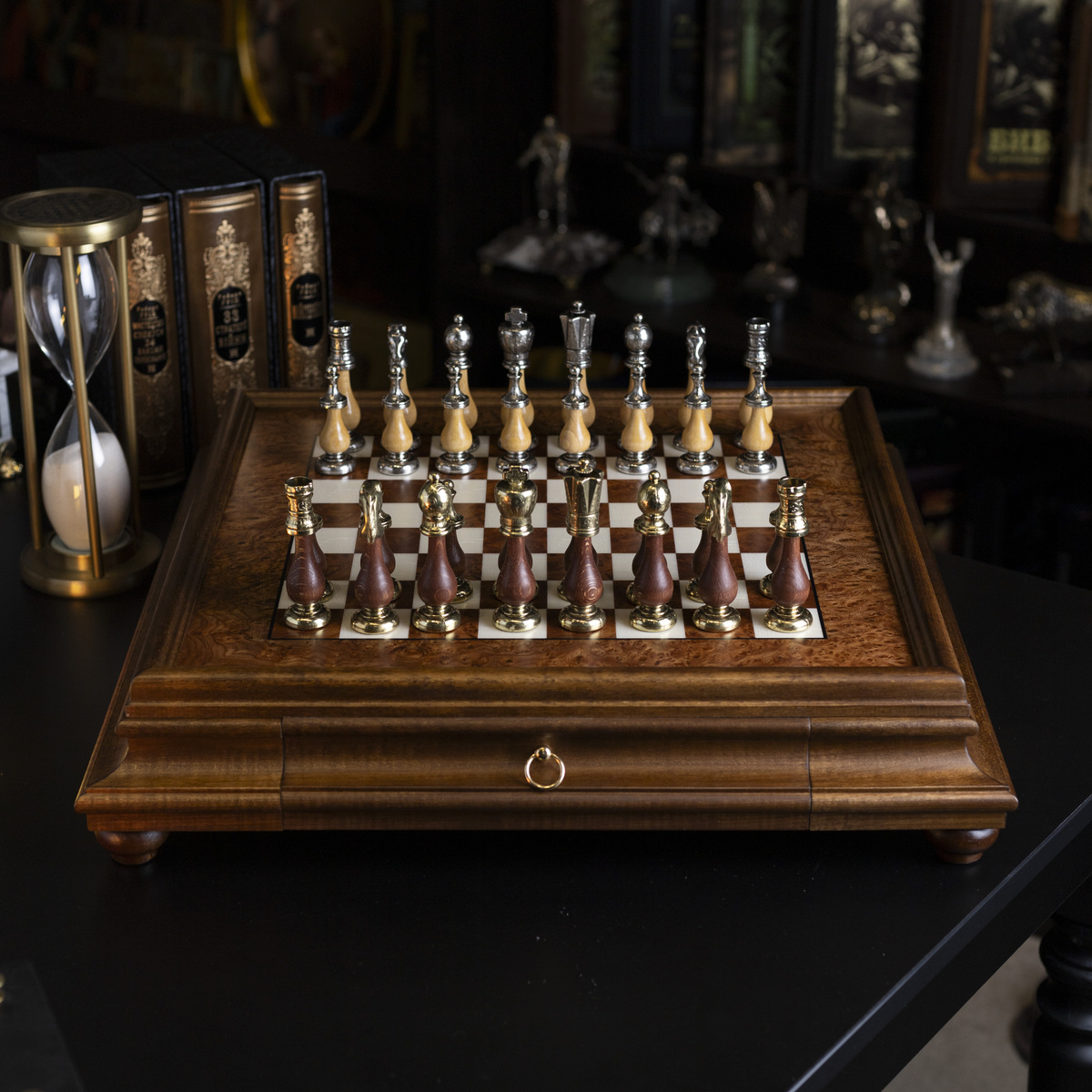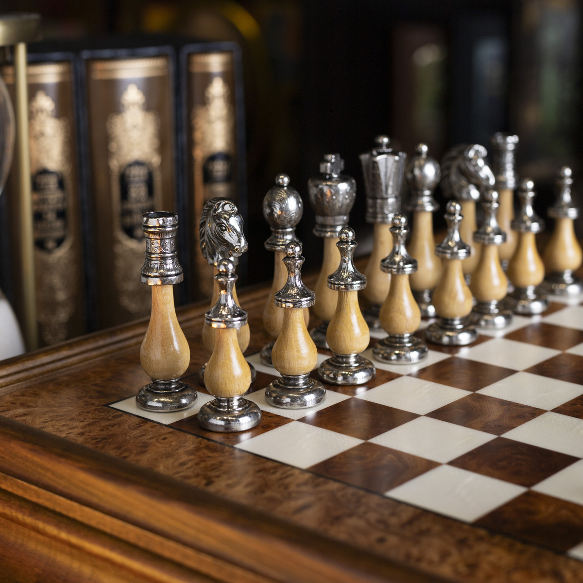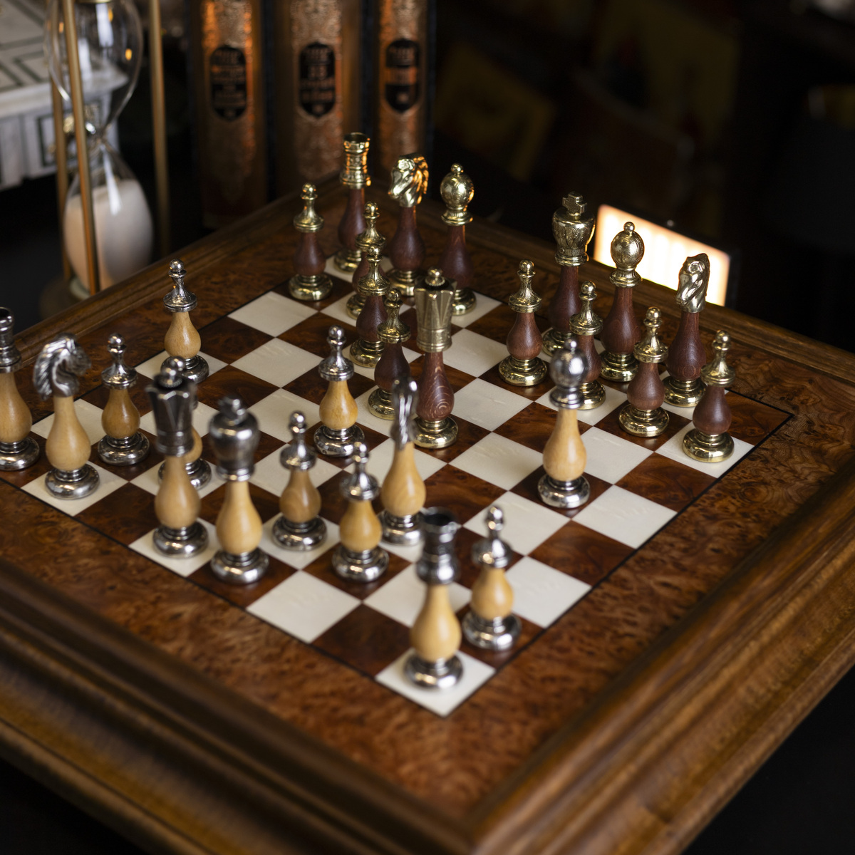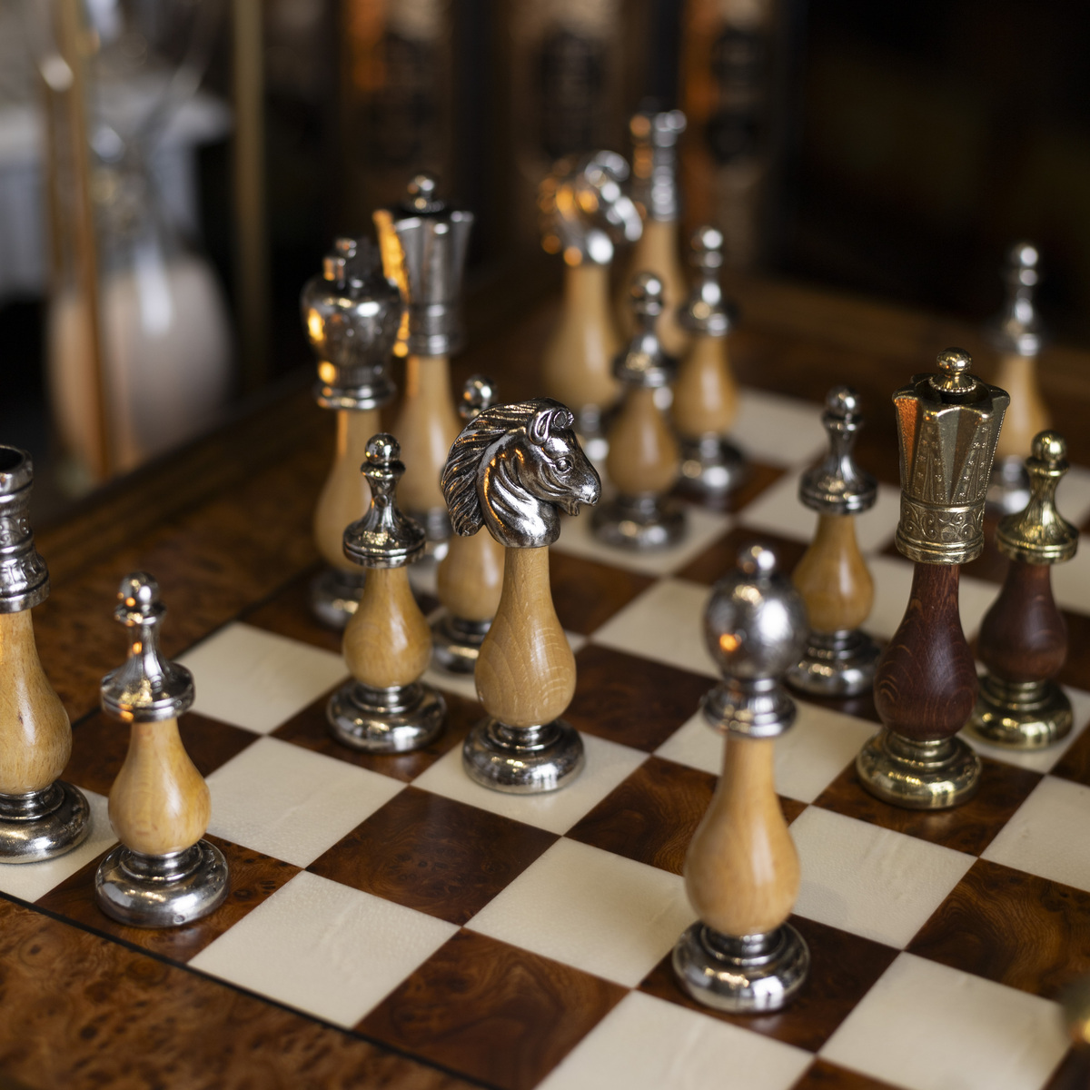 Шахматный набор "Grain" с деревянной доской и металлическими фигурками от ITALFAMA