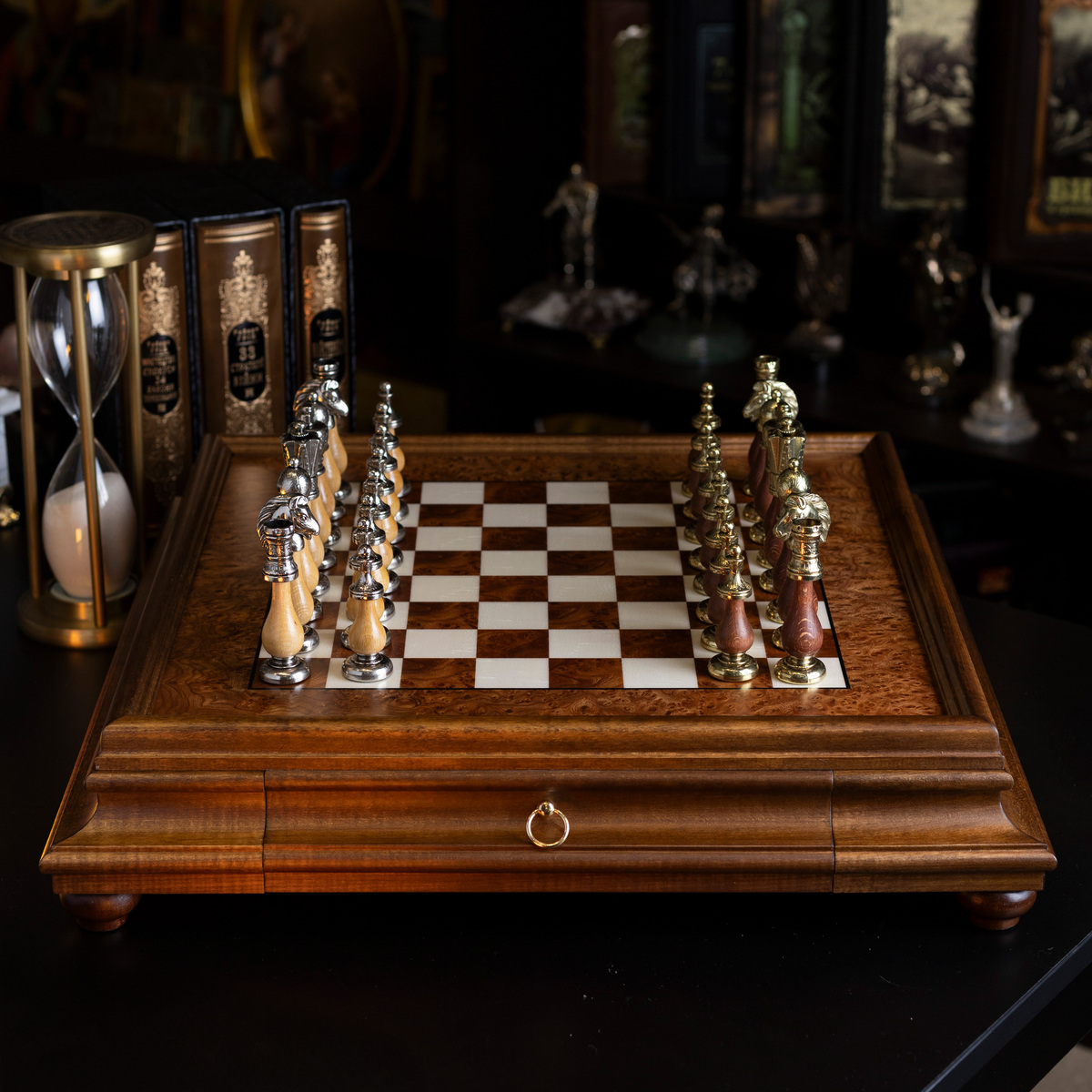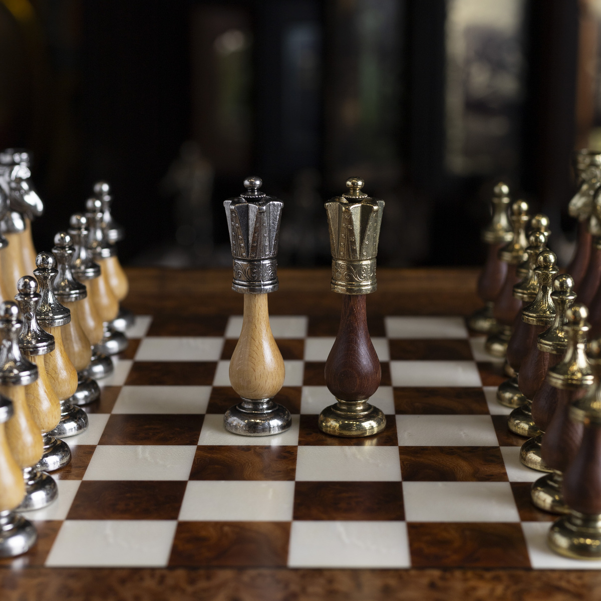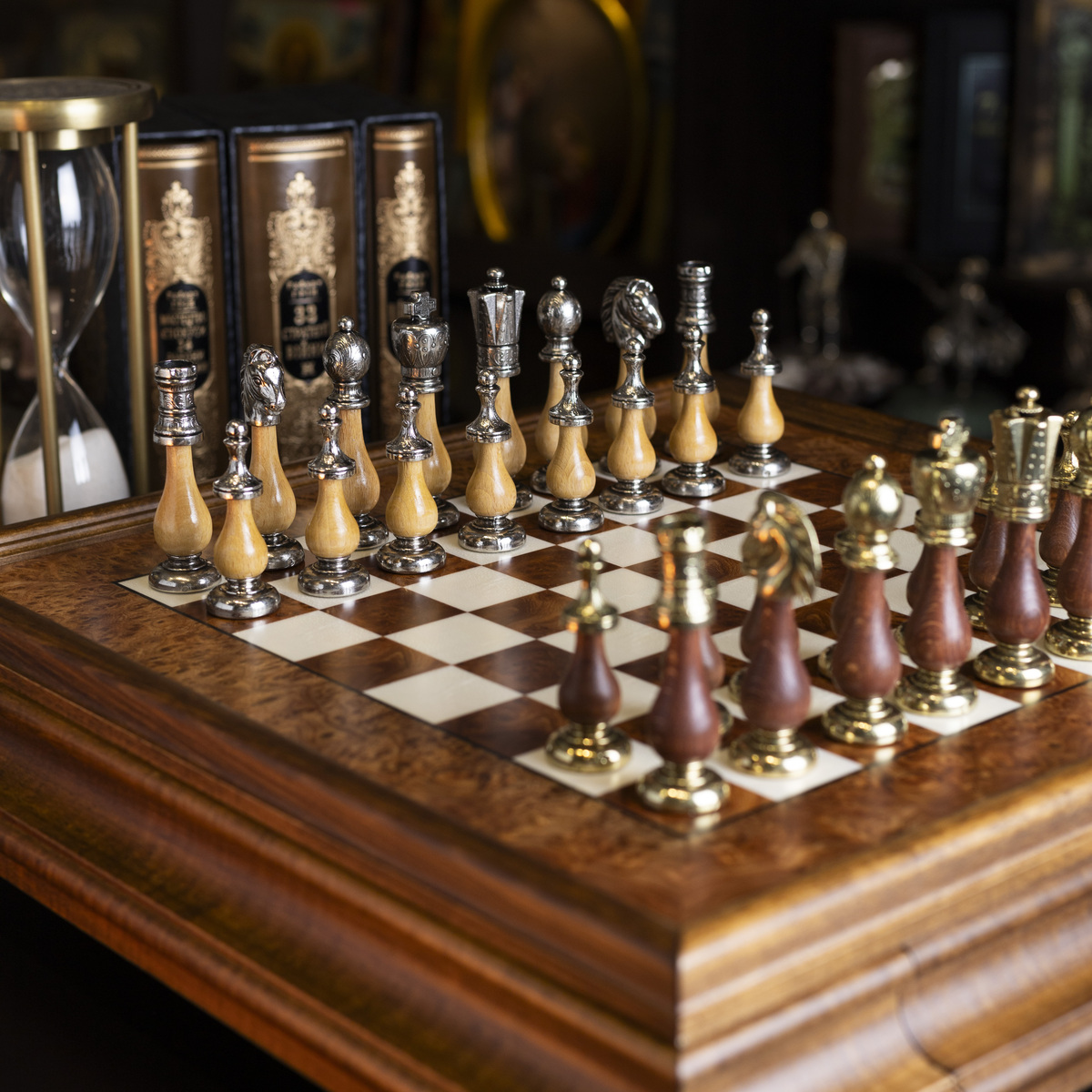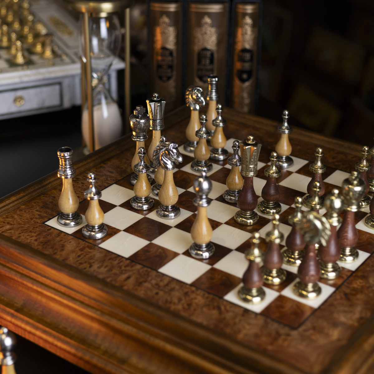 Шахматный набор "Grain" с деревянной доской и металлическими фигурками от ITALFAMA