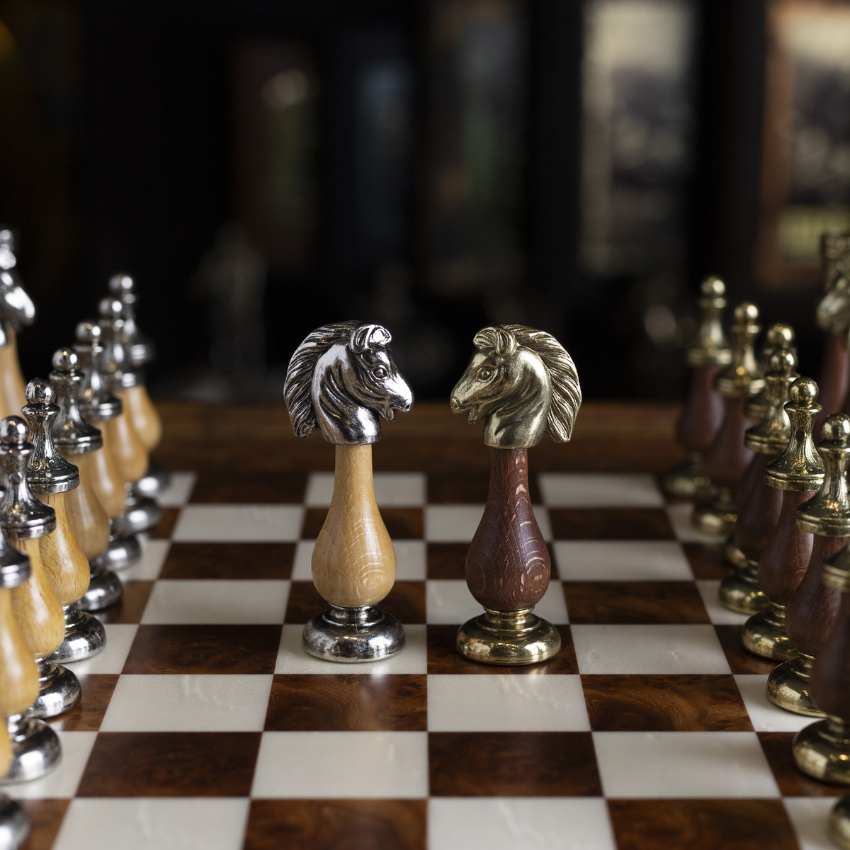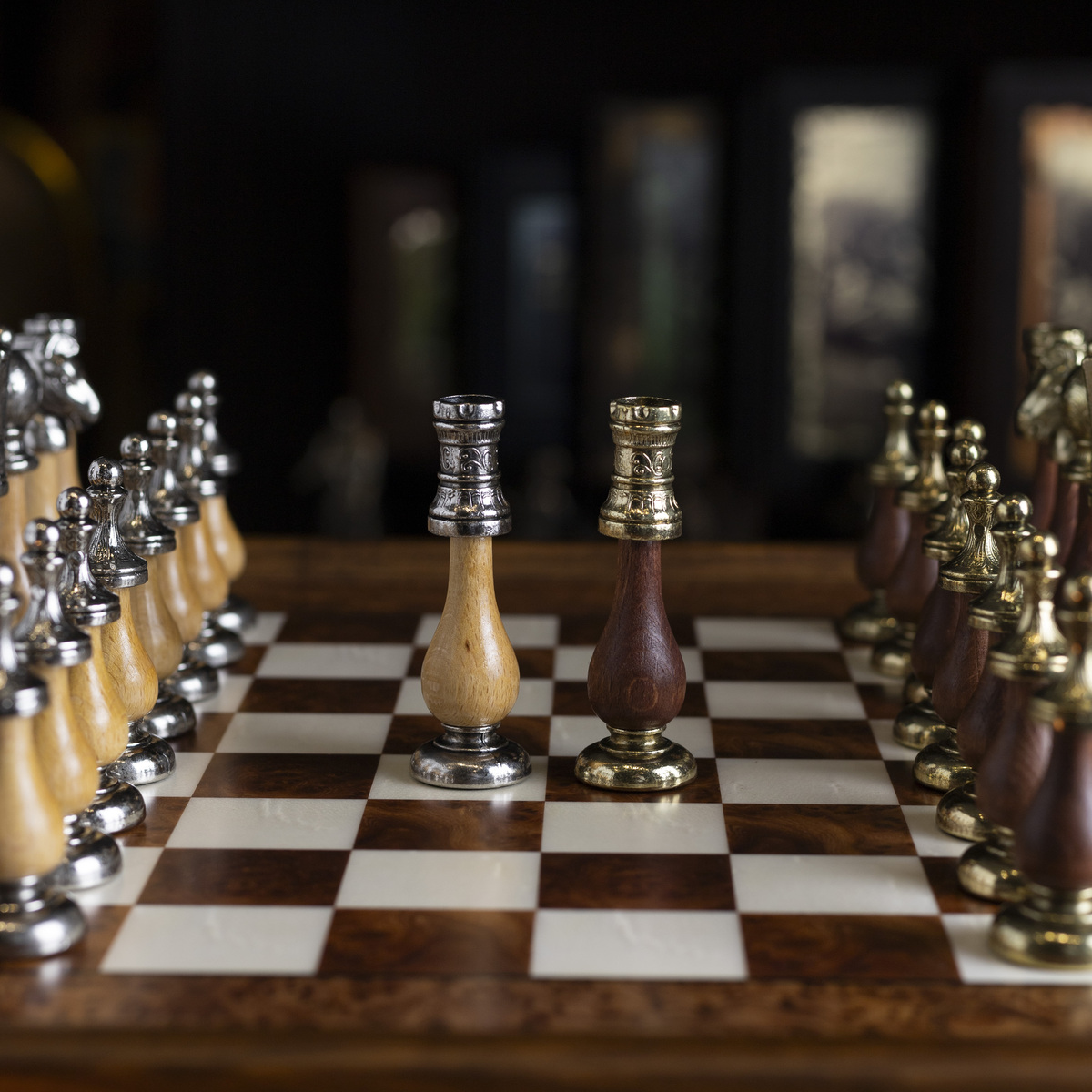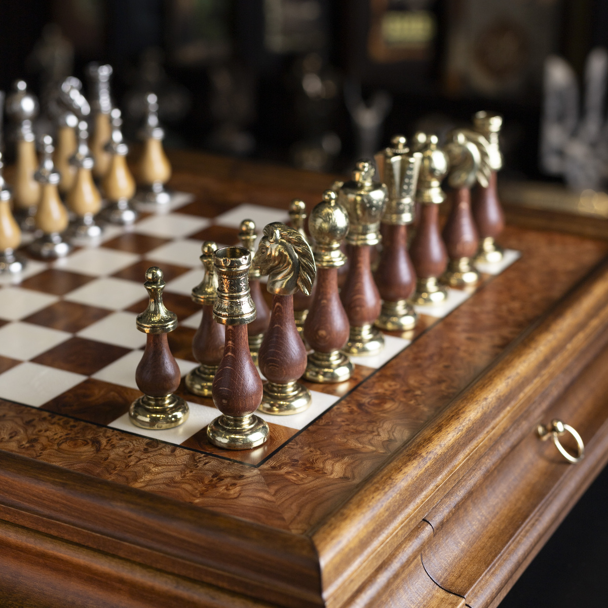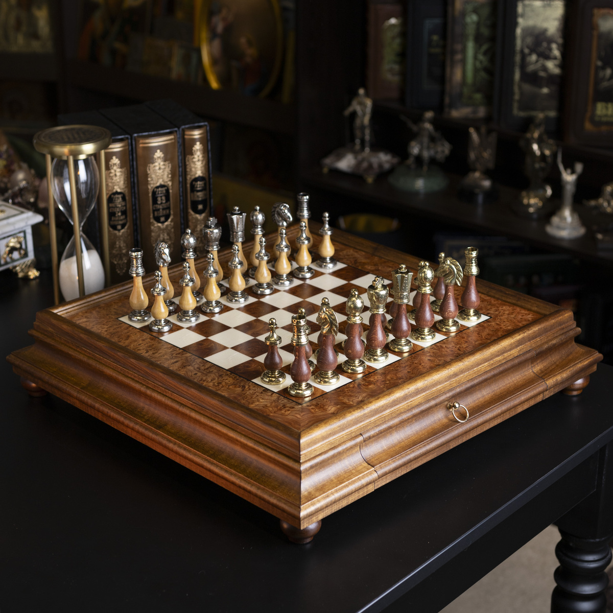 Шахматный набор "Grain" с деревянной доской и металлическими фигурками от ITALFAMA