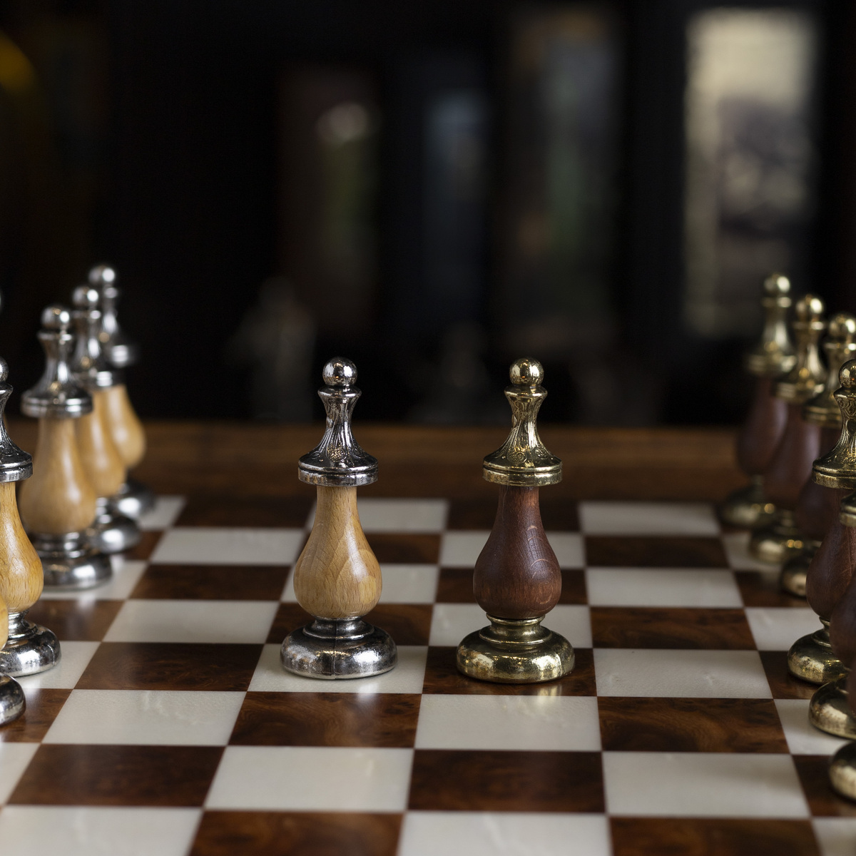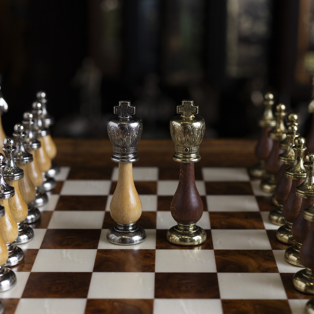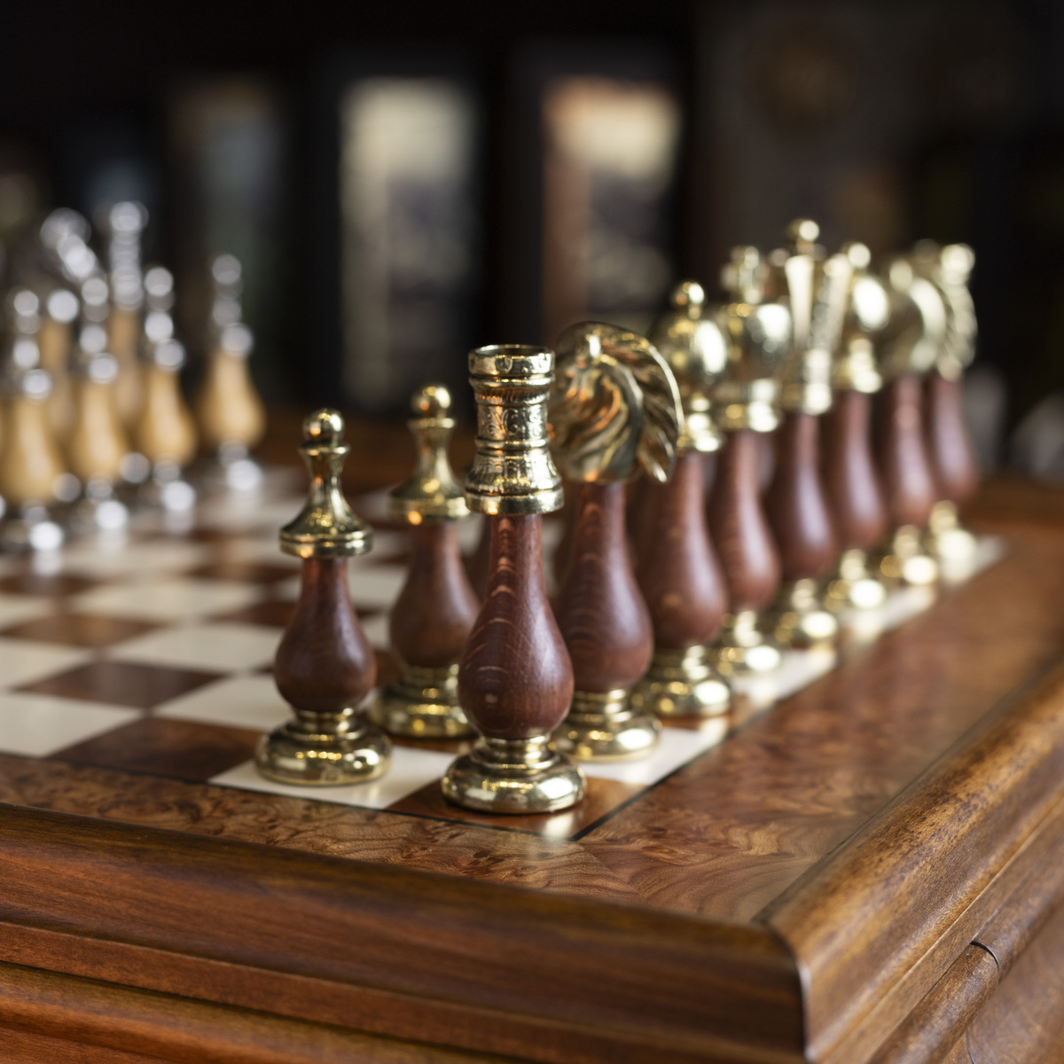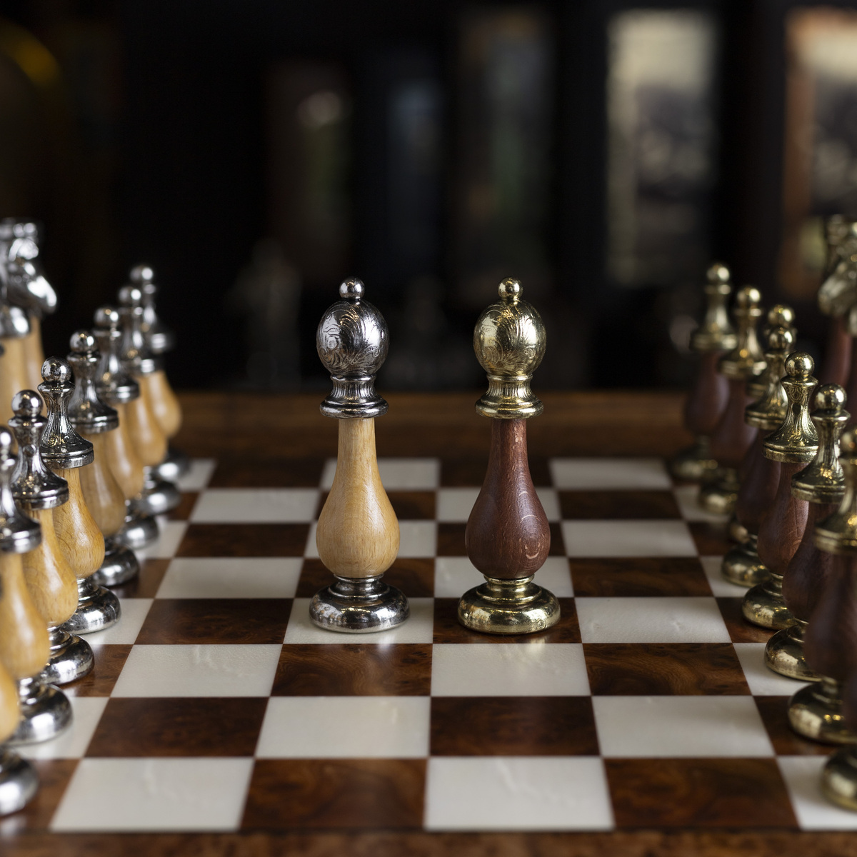 Шахматный набор "Grain" с деревянной доской и металлическими фигурками от ITALFAMA