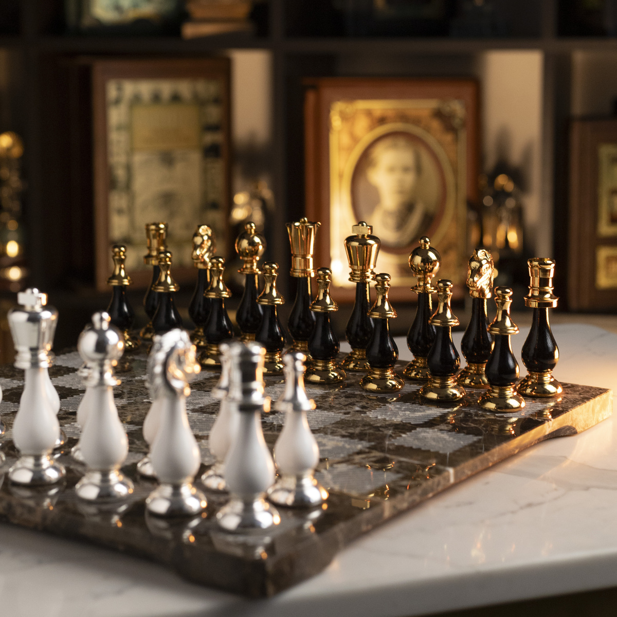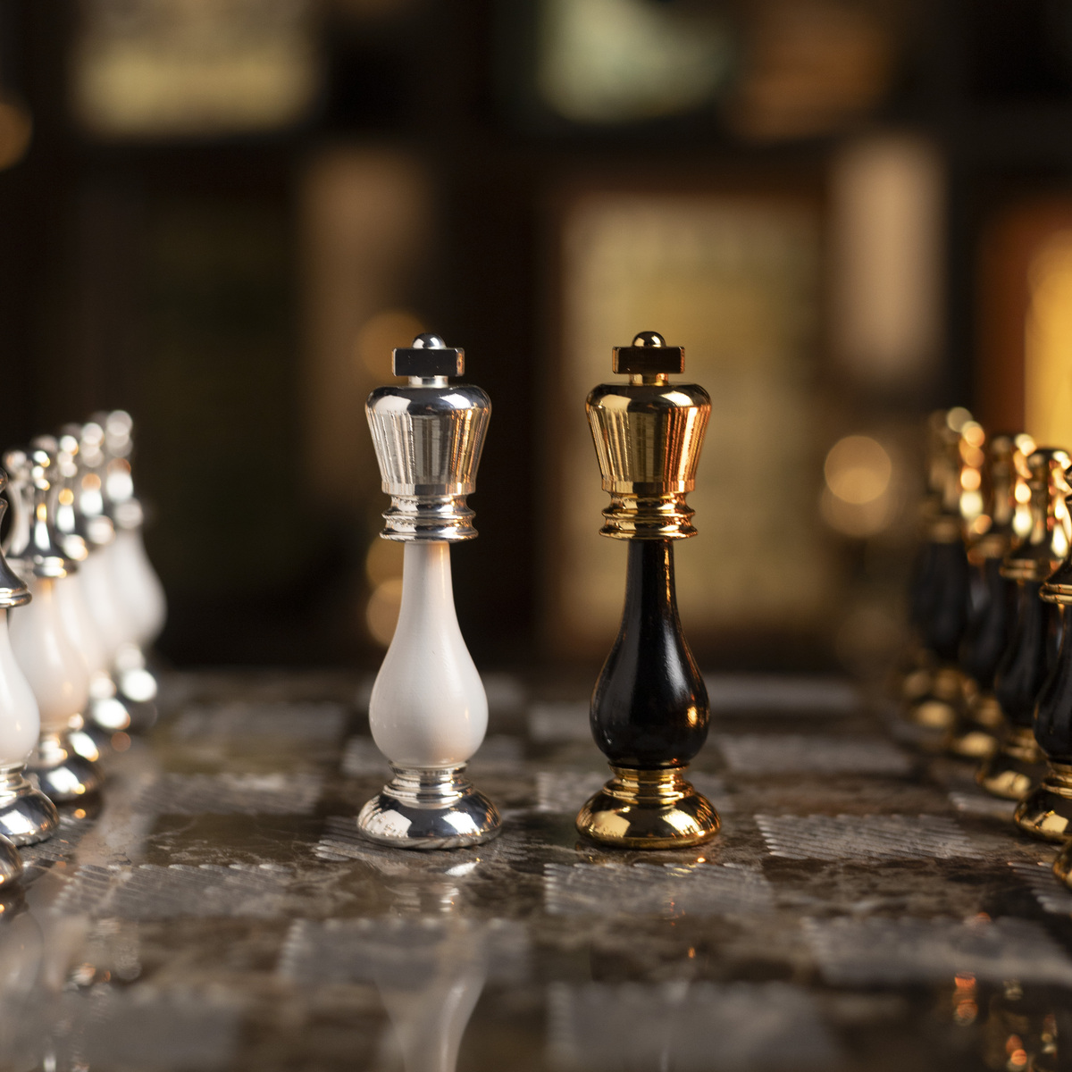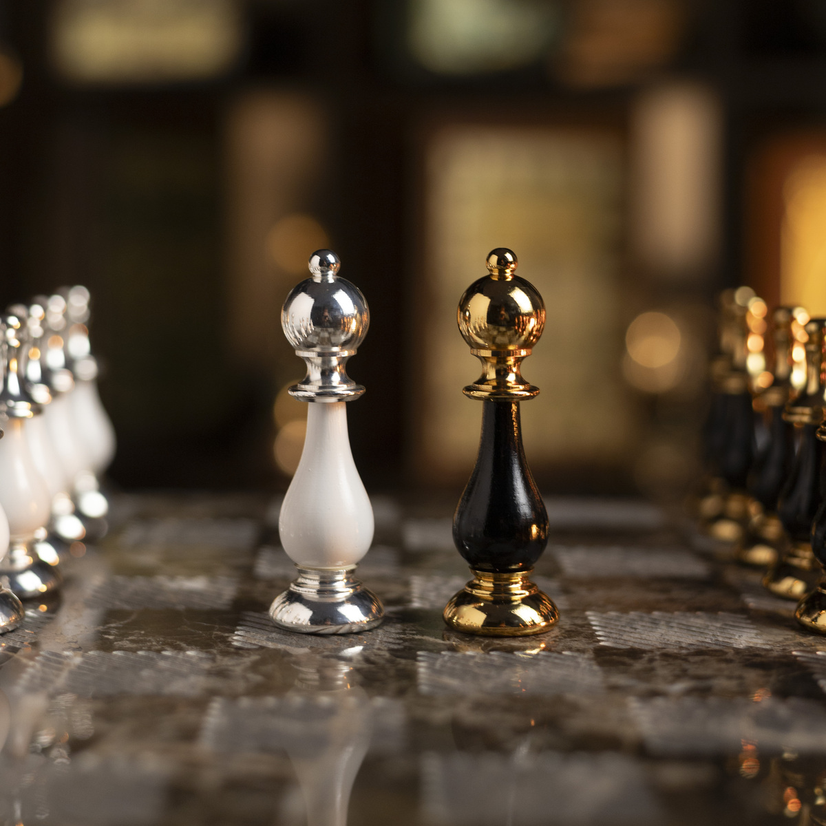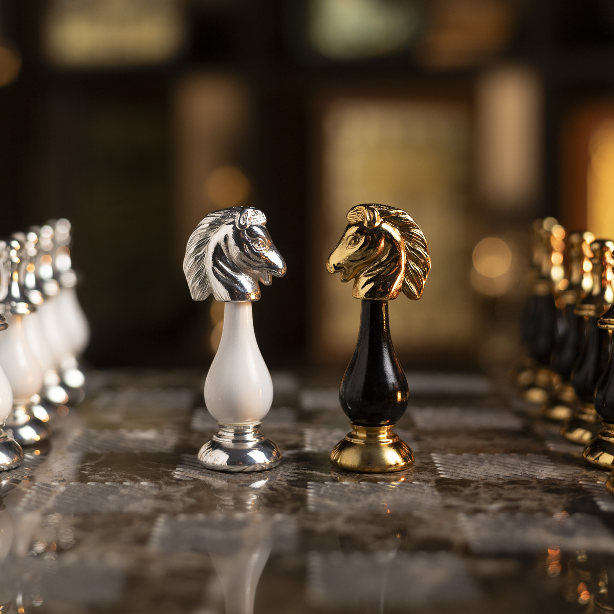 Шахматный набор "Nexa" с мраморной доской и металлическими фигурками с позолотой и посеребрением от ITALFAMA
