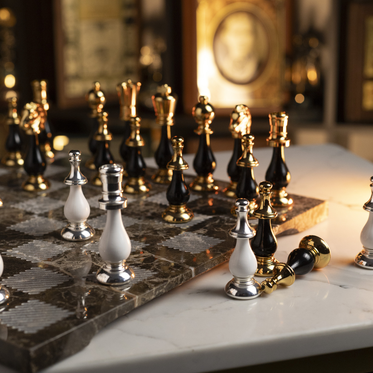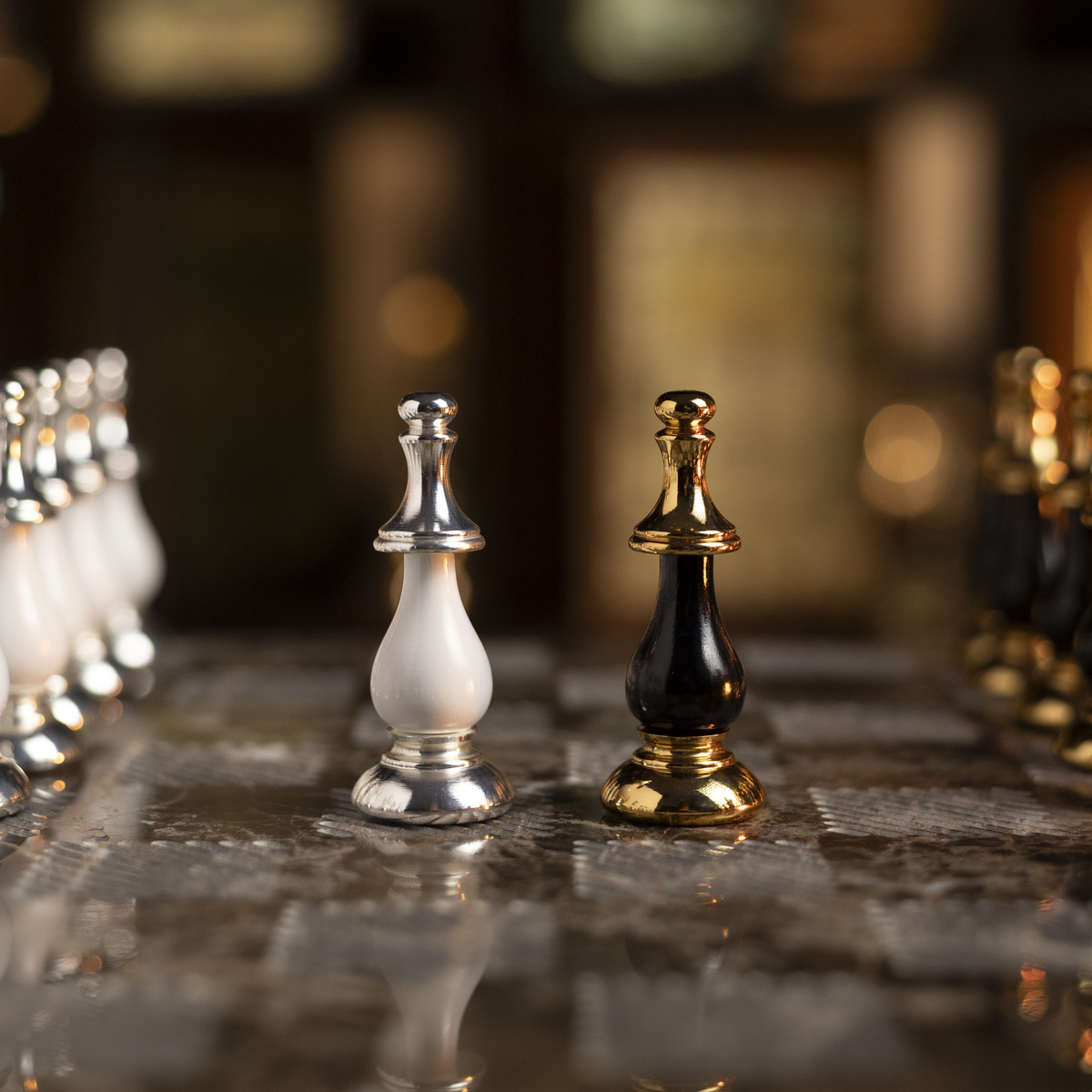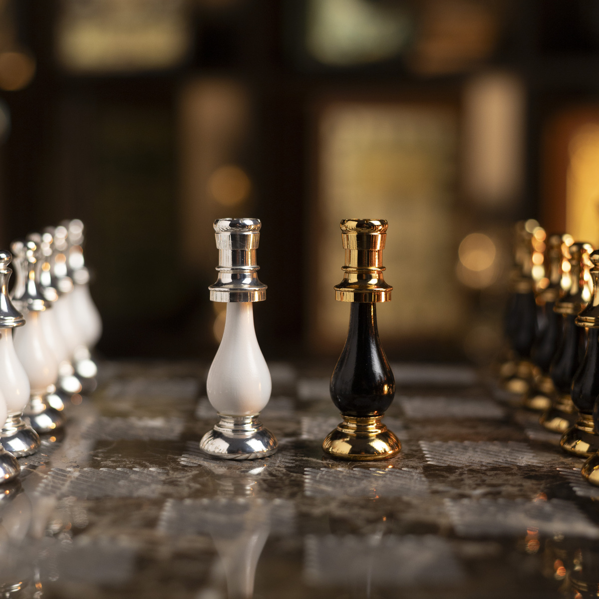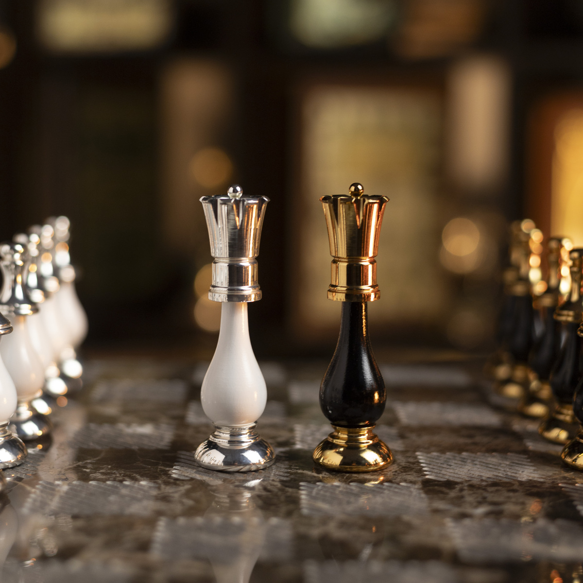 Шахматный набор "Nexa" с мраморной доской и металлическими фигурками с позолотой и посеребрением от ITALFAMA