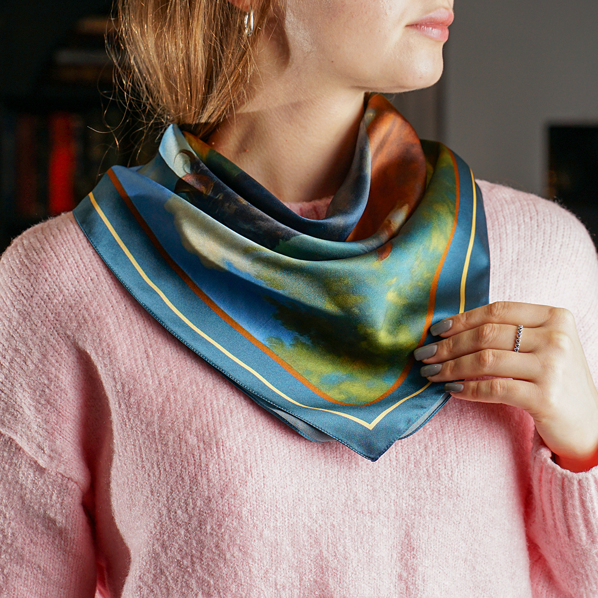 Шелковый платок "Три коня" от Fama (лимитированная коллекция, 65х65 см)