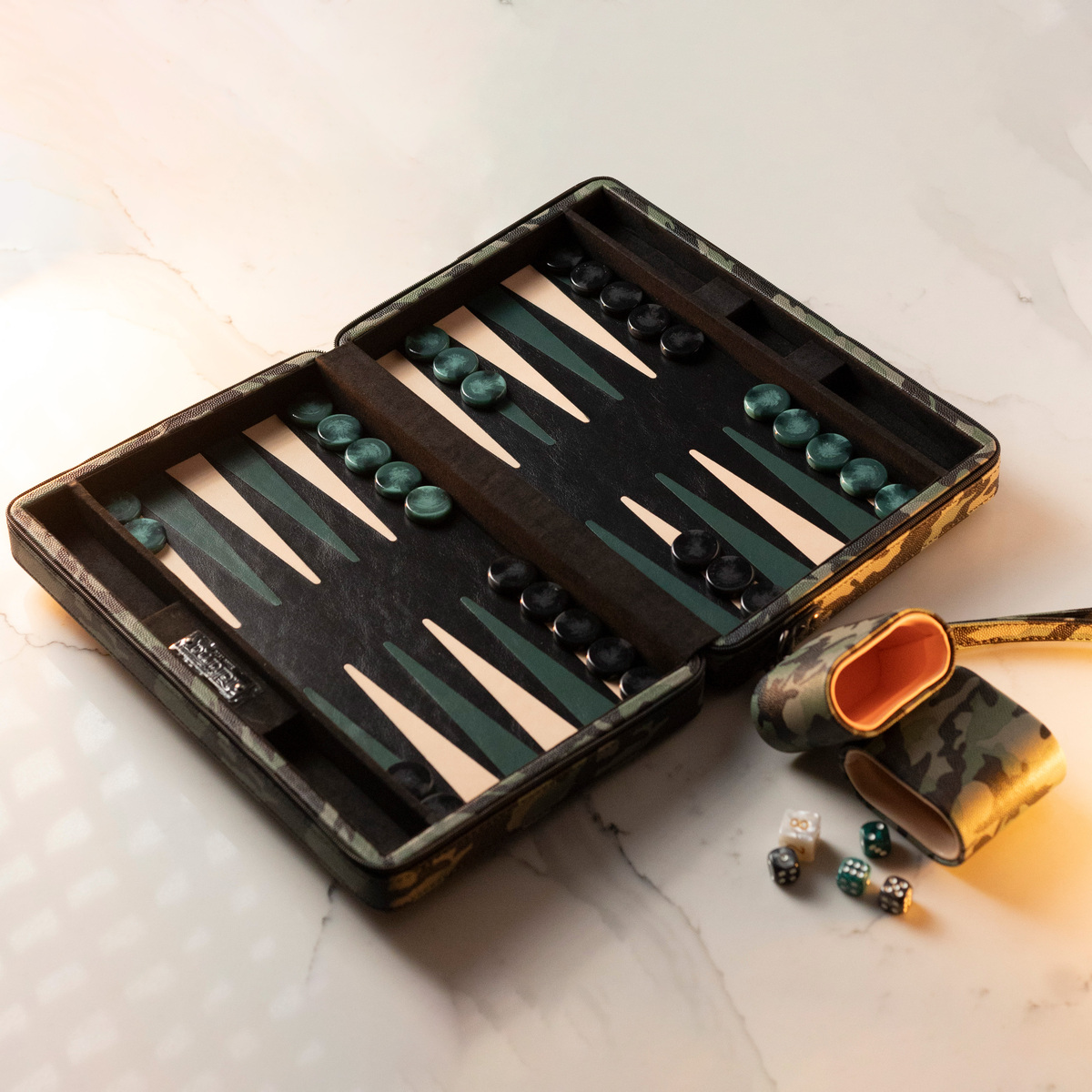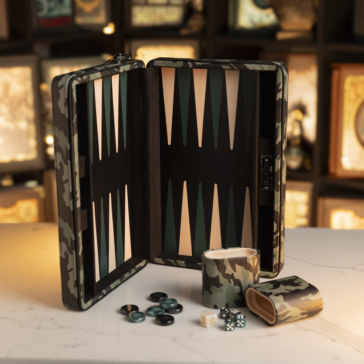 Складной набор нард из искусственной кожи с камуфляжными шашками "Kalari" от ITALFAMA