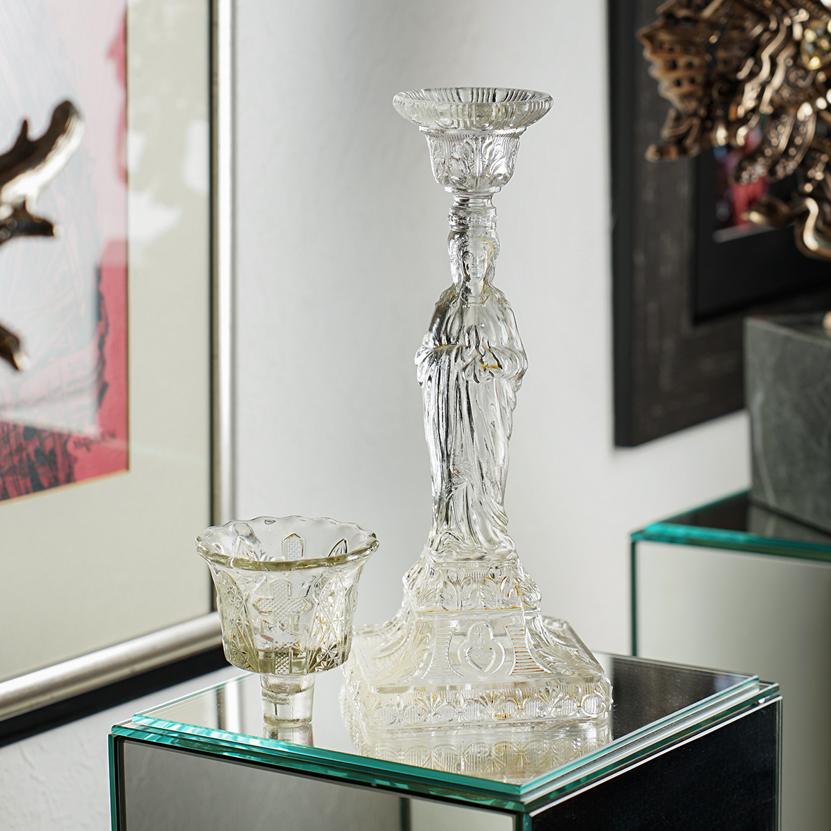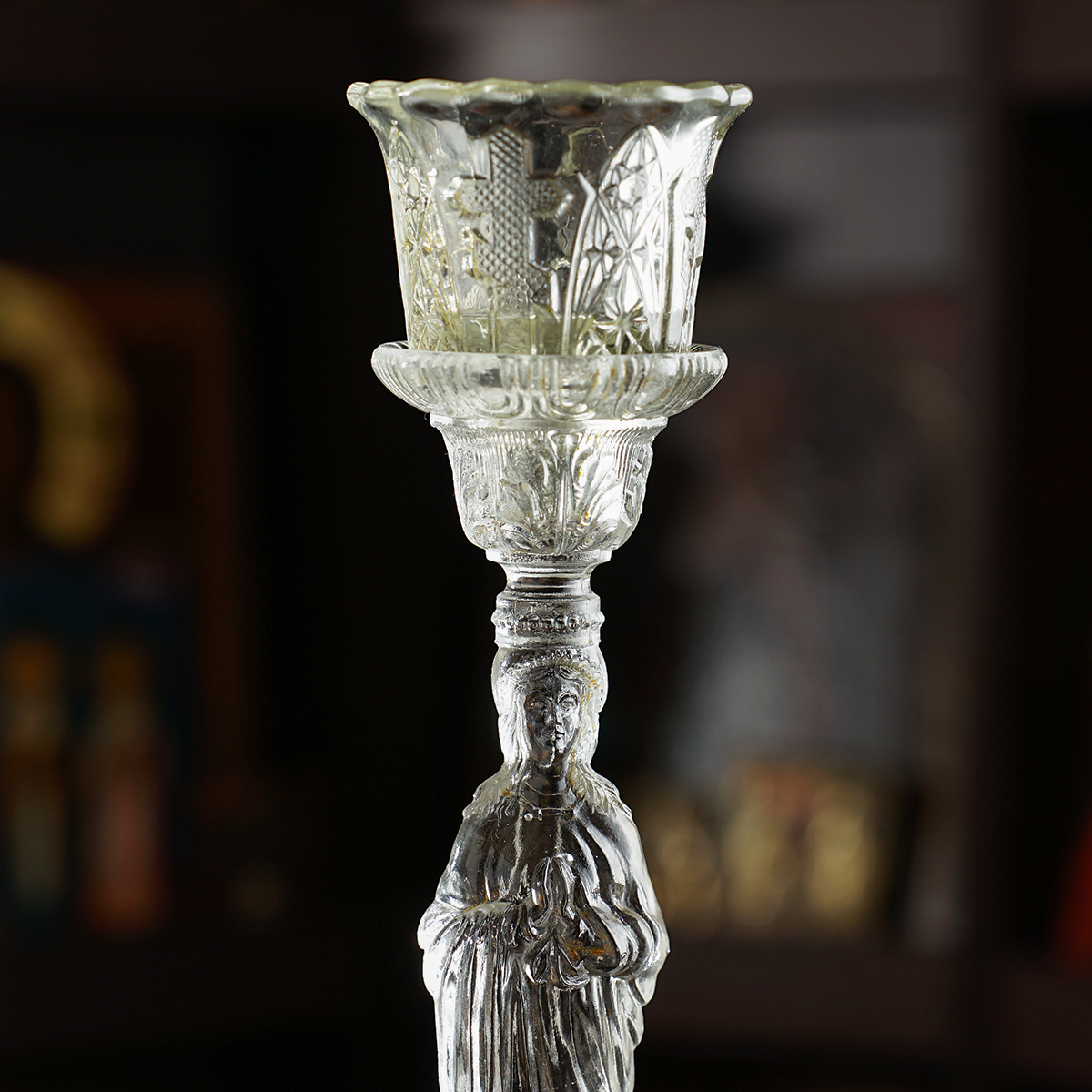 Стеклянный католический подсвечник "Catholic Treasure" с Девой Марией, Вилково, конец 19-го – начало 20-го века