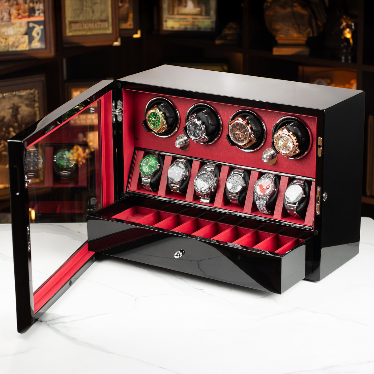 Шкатулка для подзавода 4-х и хранения 6-ти часов "Varnox" от DUKWIN (красный)