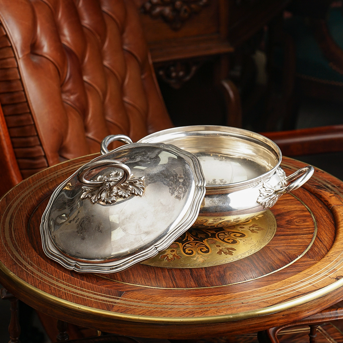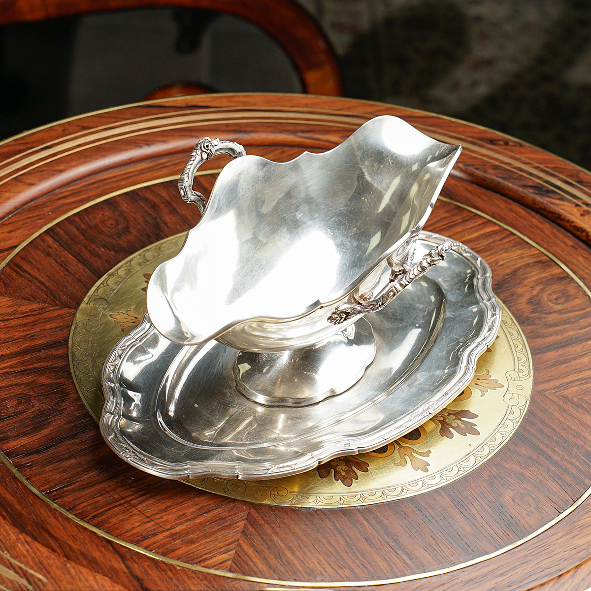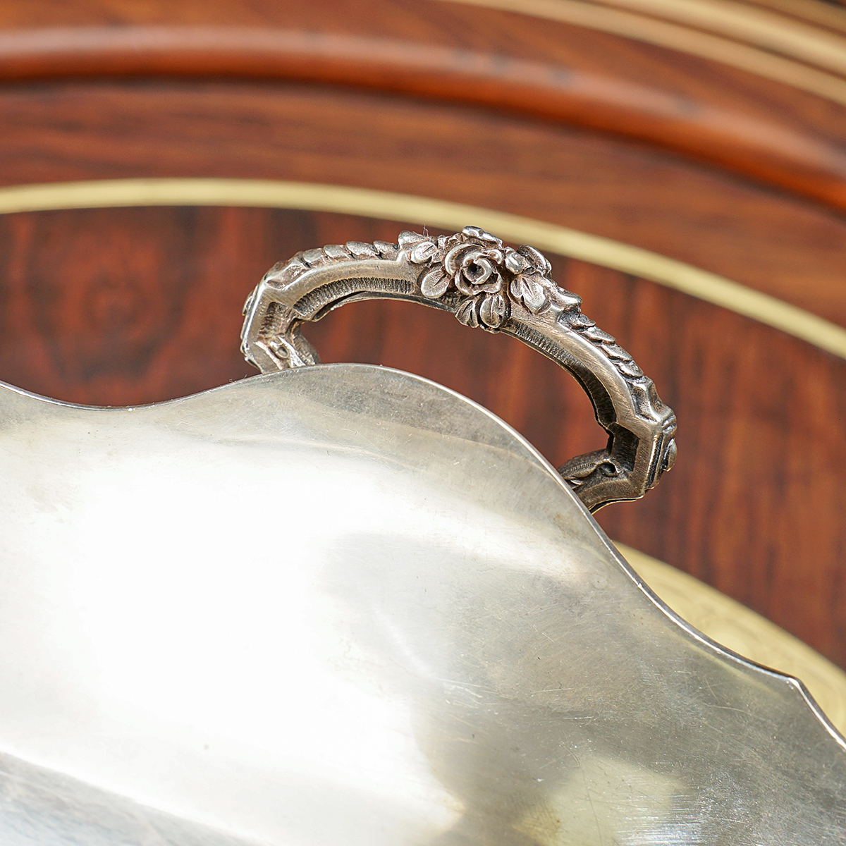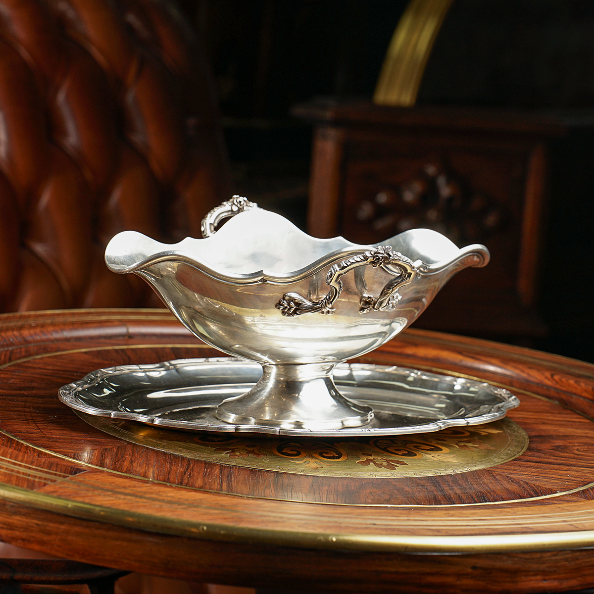 Серебряная антикварная соусница с подносом "Lorette", Франция, конец 19-го века