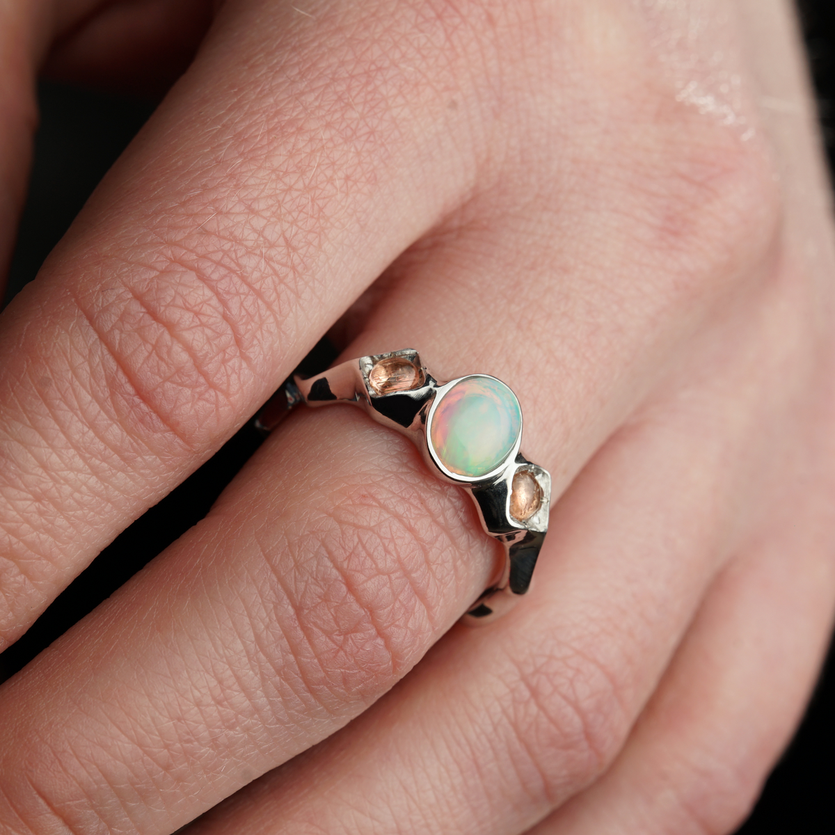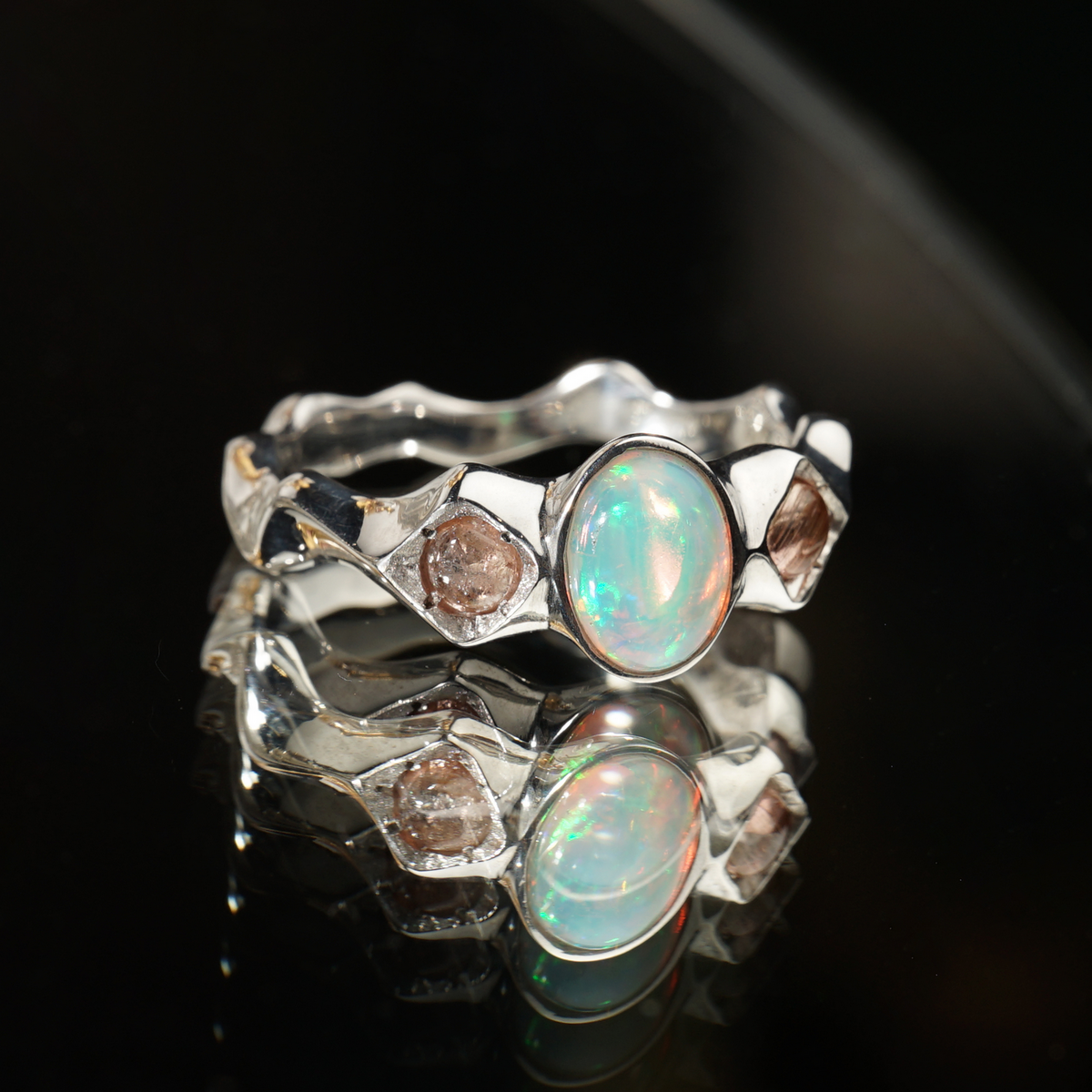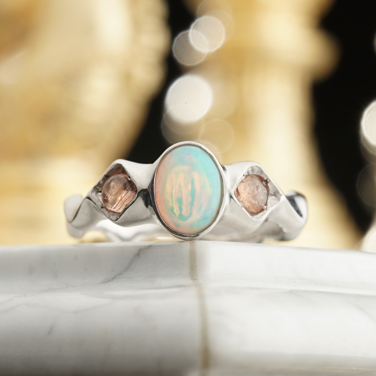 Серебряное кольцо "Сияние" с опалом и турмалином