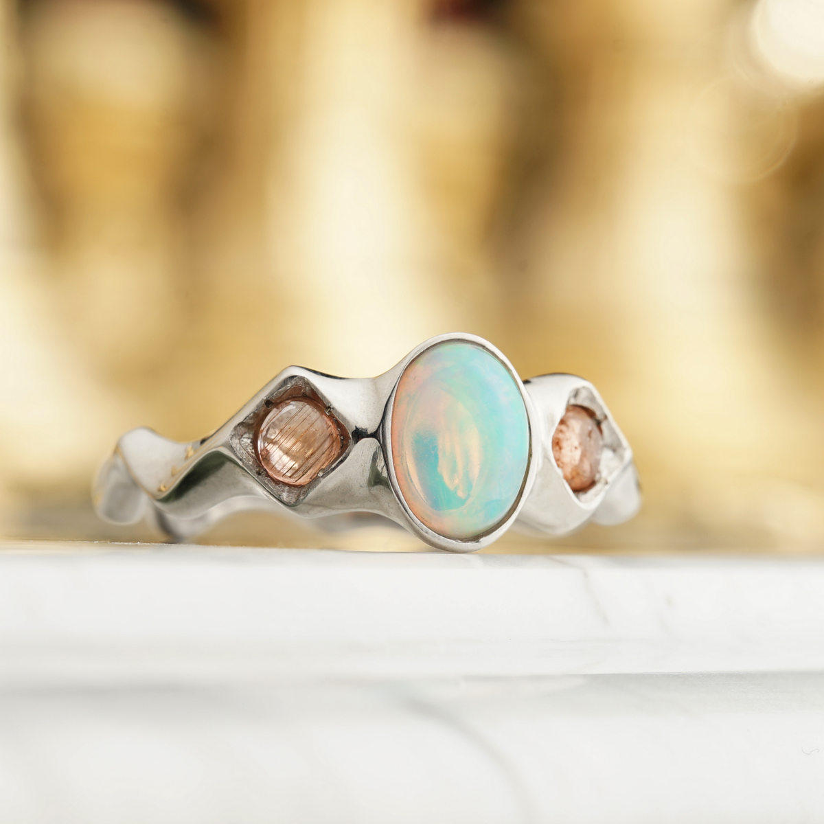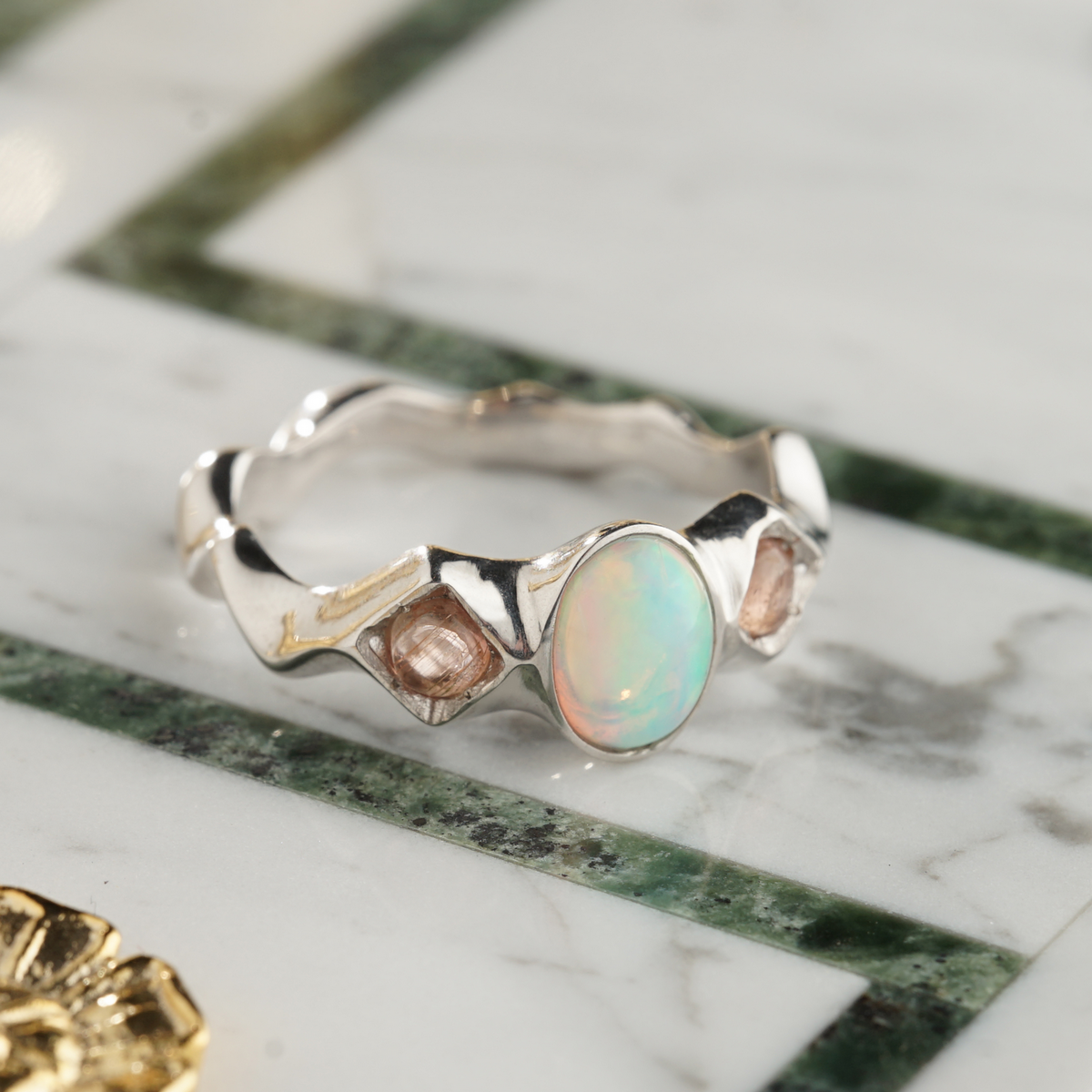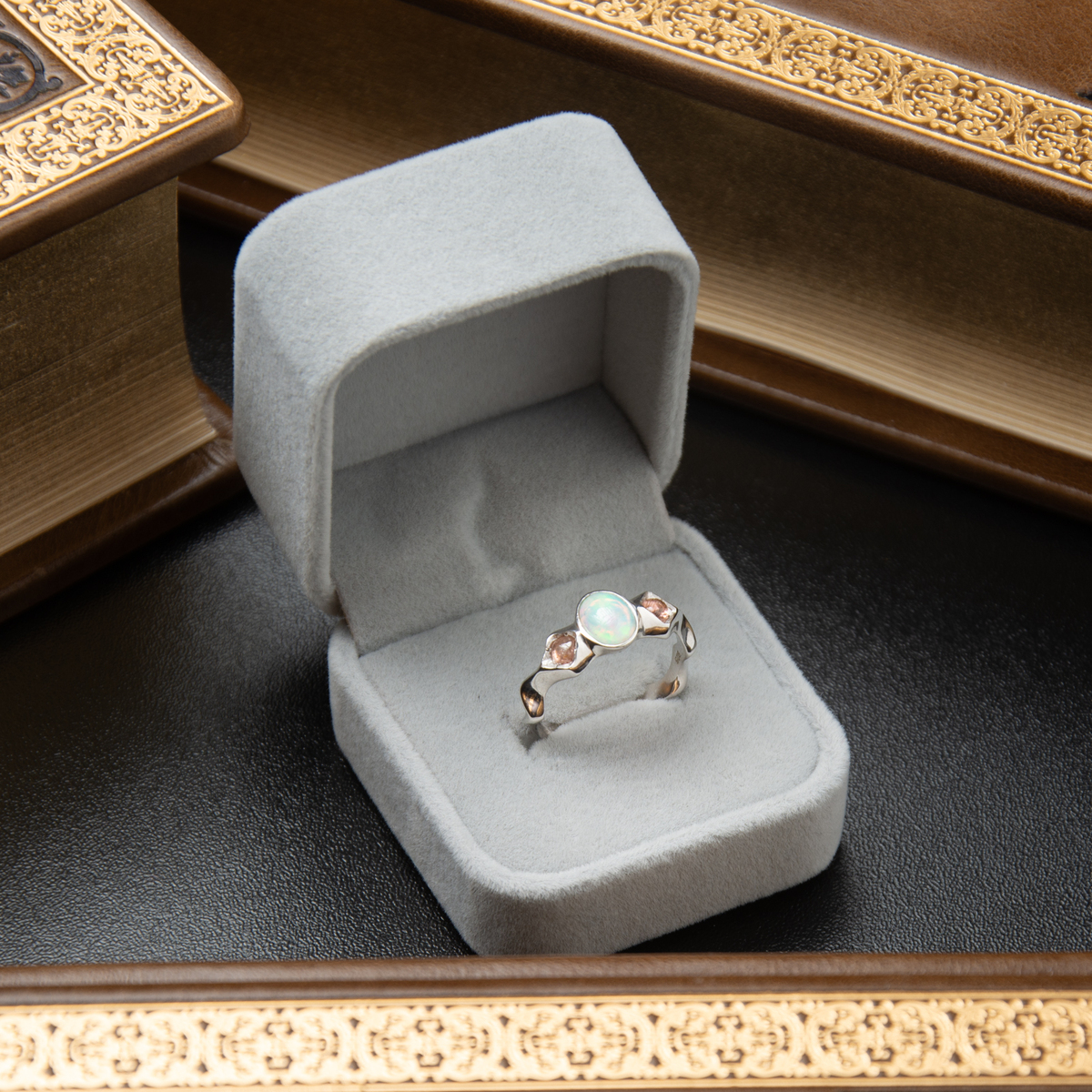 Серебряное кольцо "Сияние" с опалом и турмалином