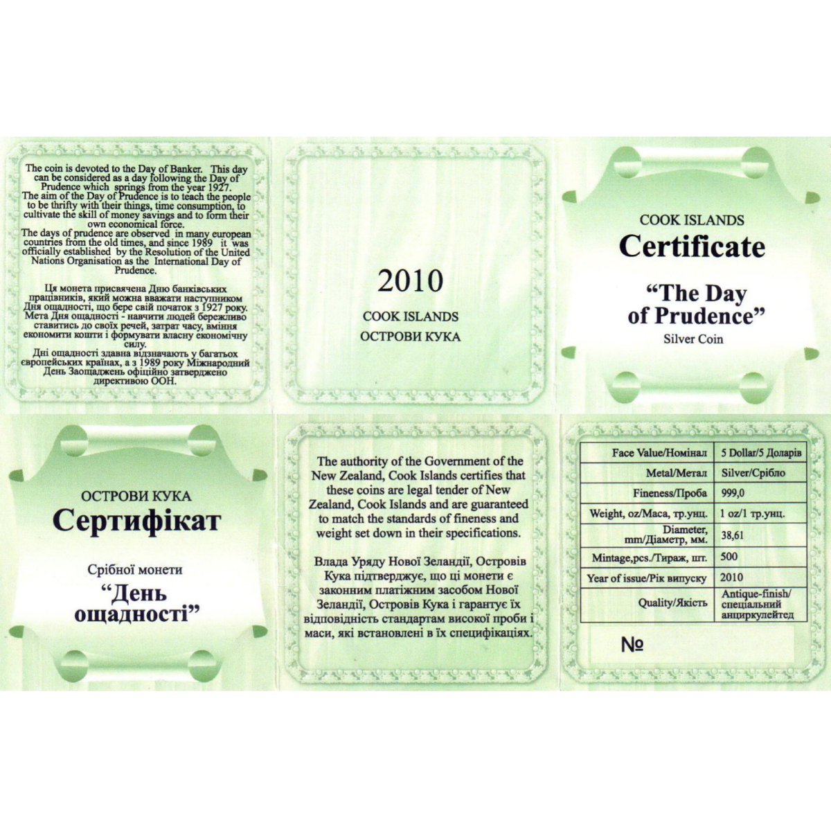 Серебряная монета "День бережливости" (5 долларов) 2010, Острова Кука