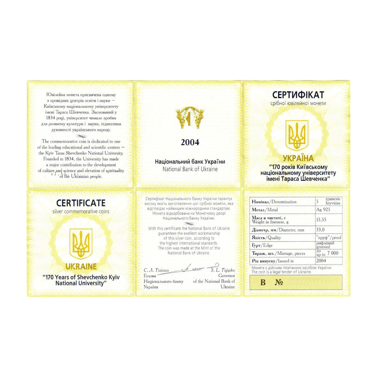 Серебряная монета "Киевский национальный университет им. Тараса Шевченко", 5 гривен (2004)