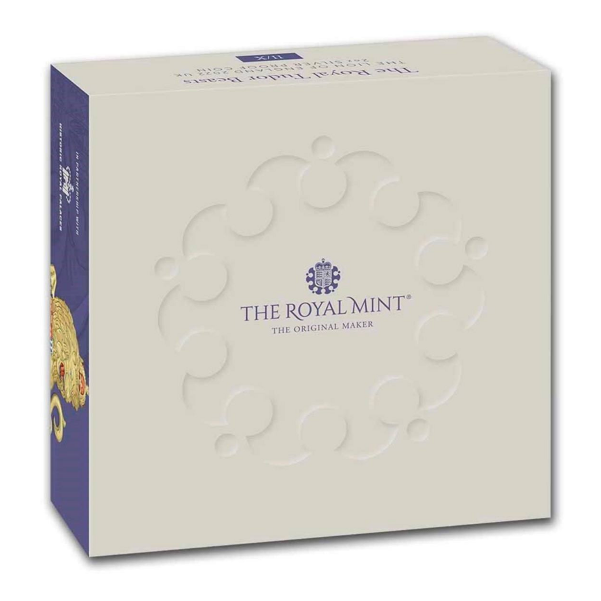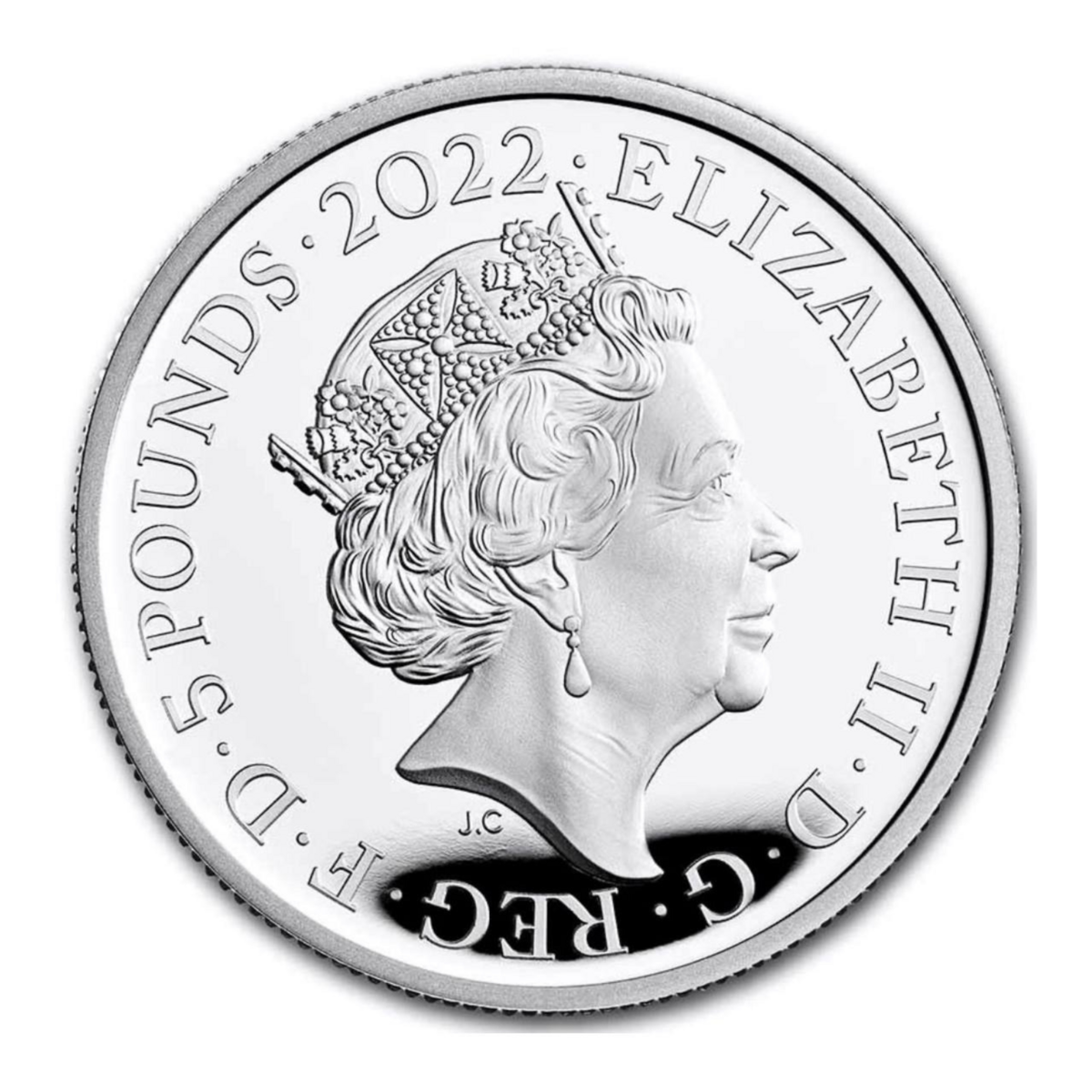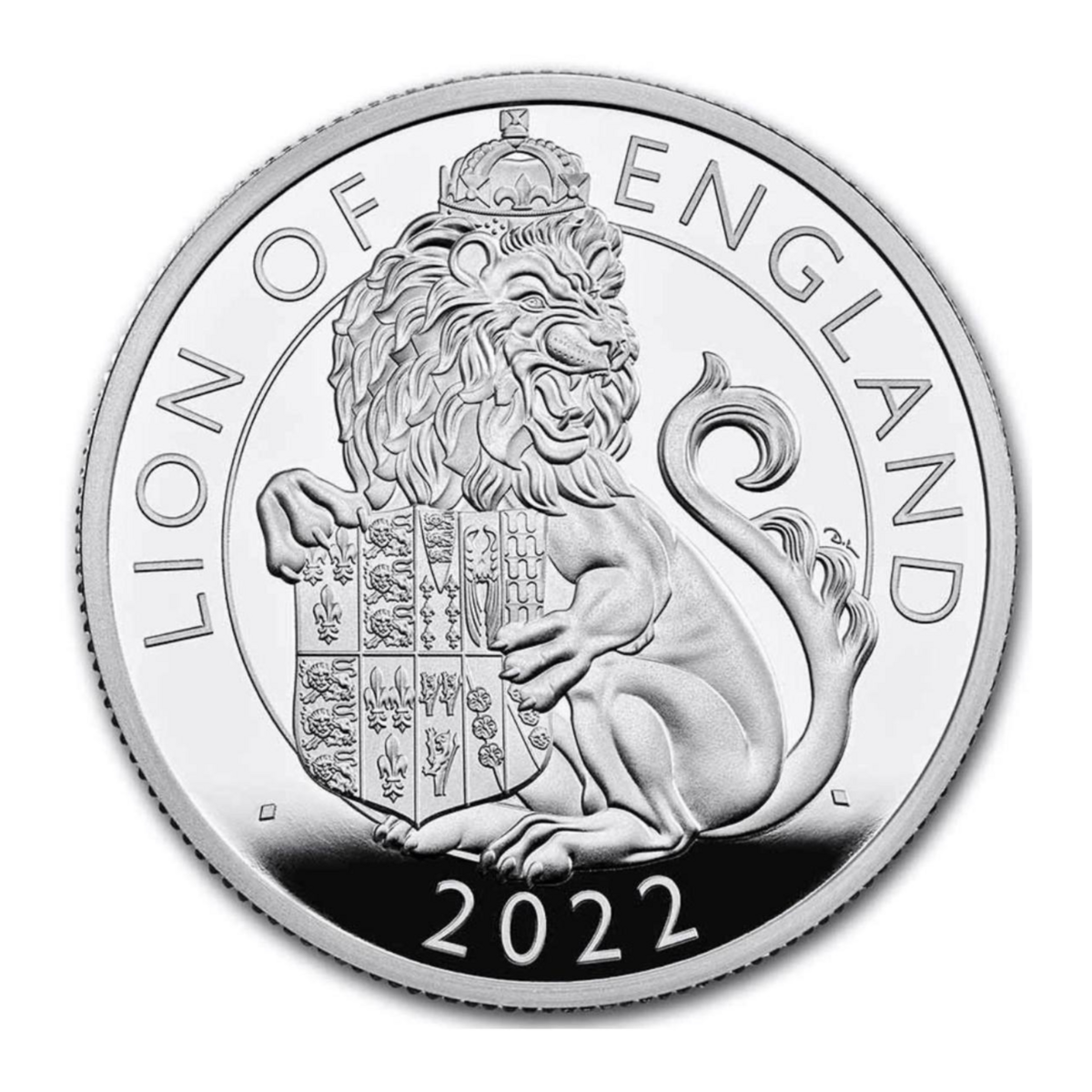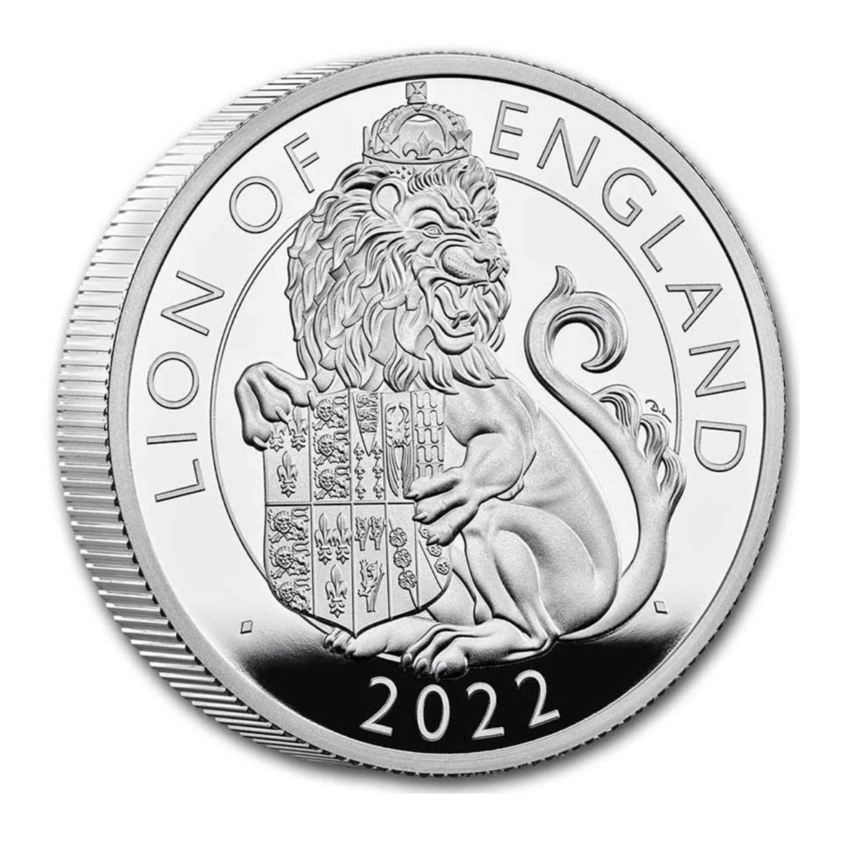 Серебряная монета Лев Англии "Королевские Звери Тюдоров", 5 фунтов