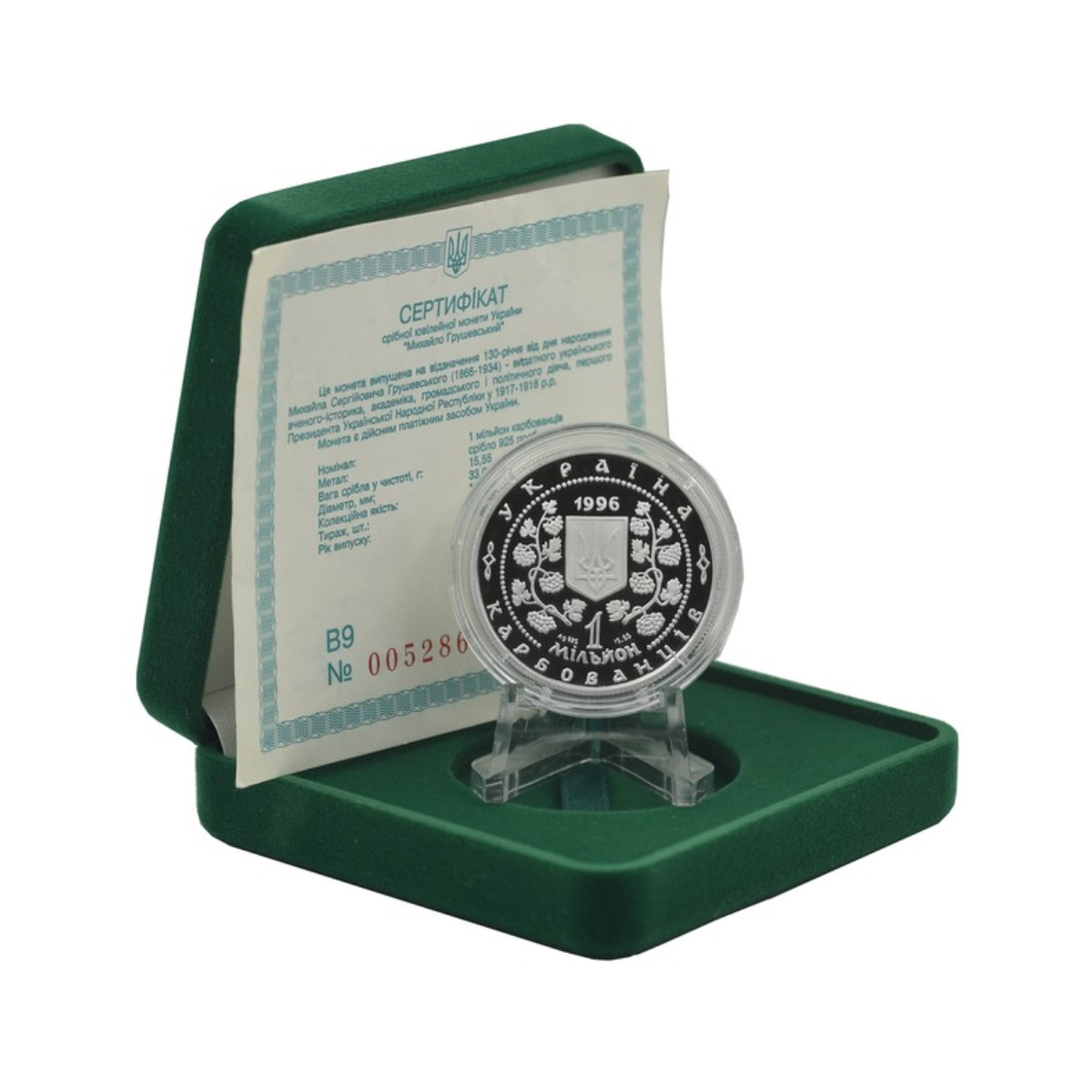 Серебряная монета "Михаил Грушевский", 1 000 000 карбованцев