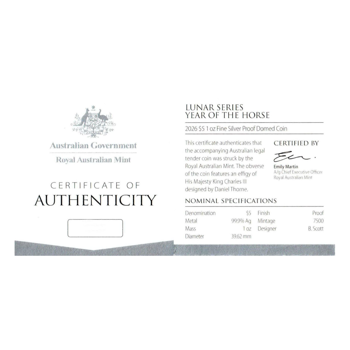 Серебряная монета "Год Лошади" (5 долларов) 2026, Австралия