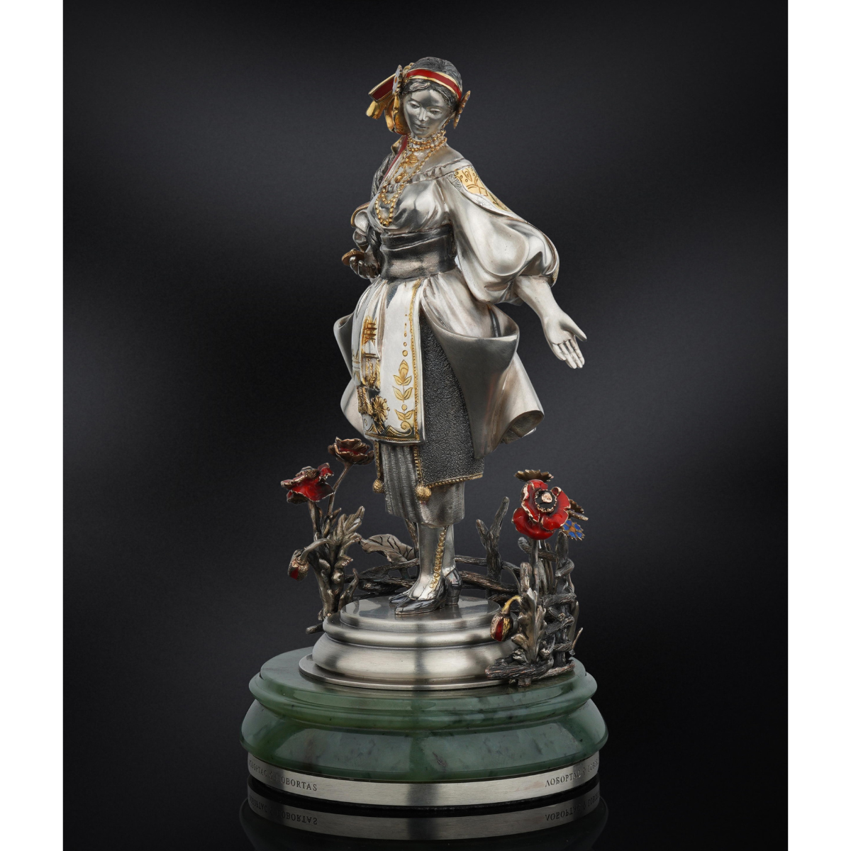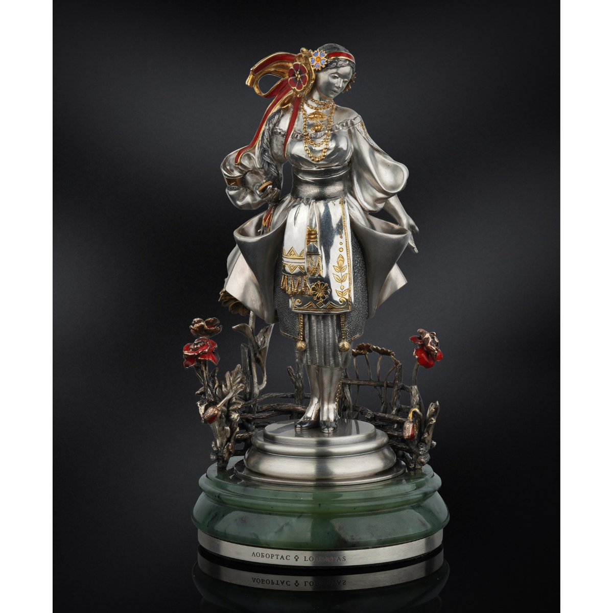 Серебряная печатка с бронзой и нефритом "Ukrainian girl" от Lobortas