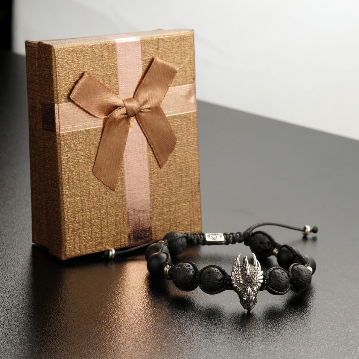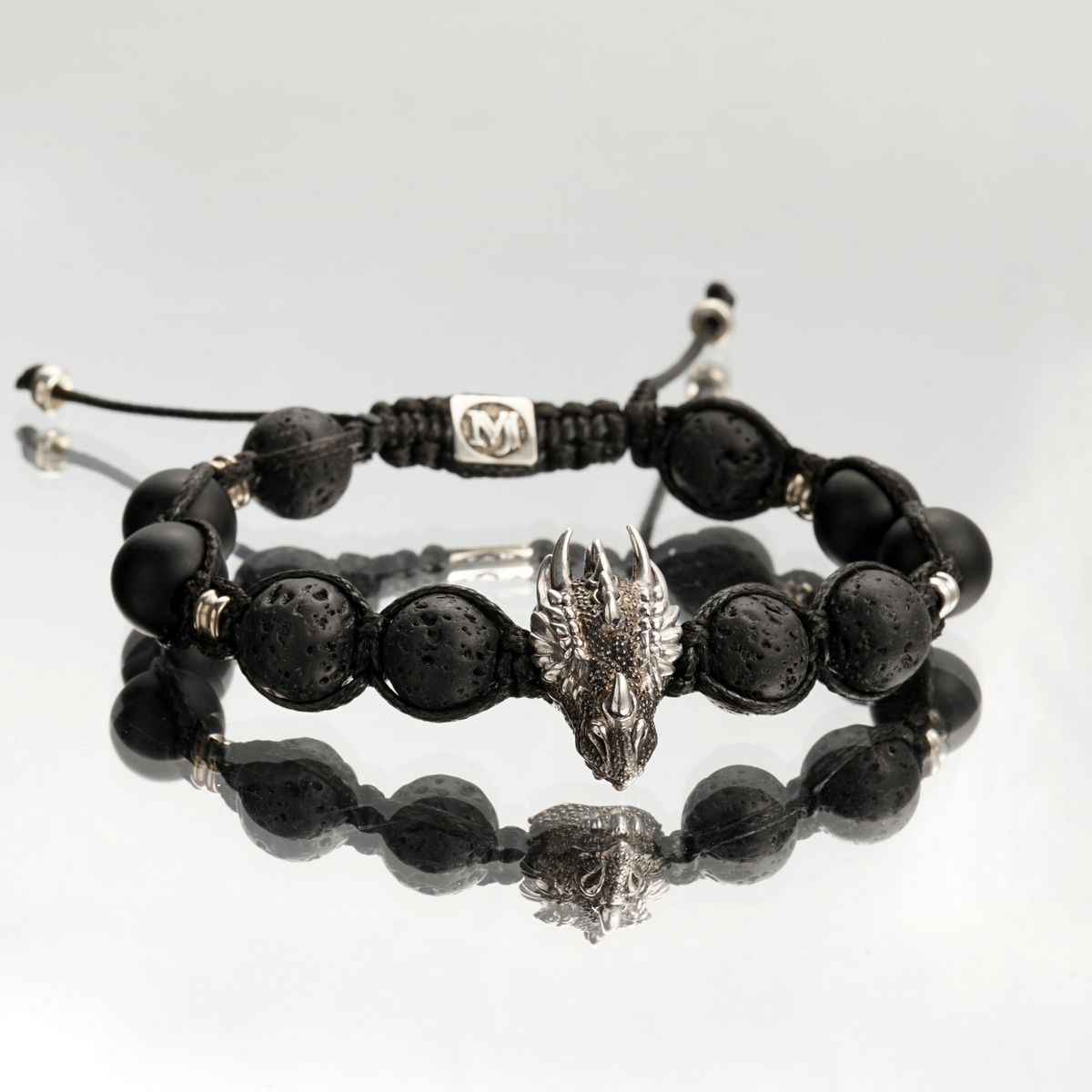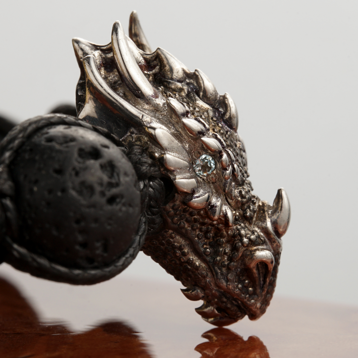 Серебряный браслет "Дракон" 925 пробы с ониксом и топазом 0,02 карат от Ювелирного дома Fama