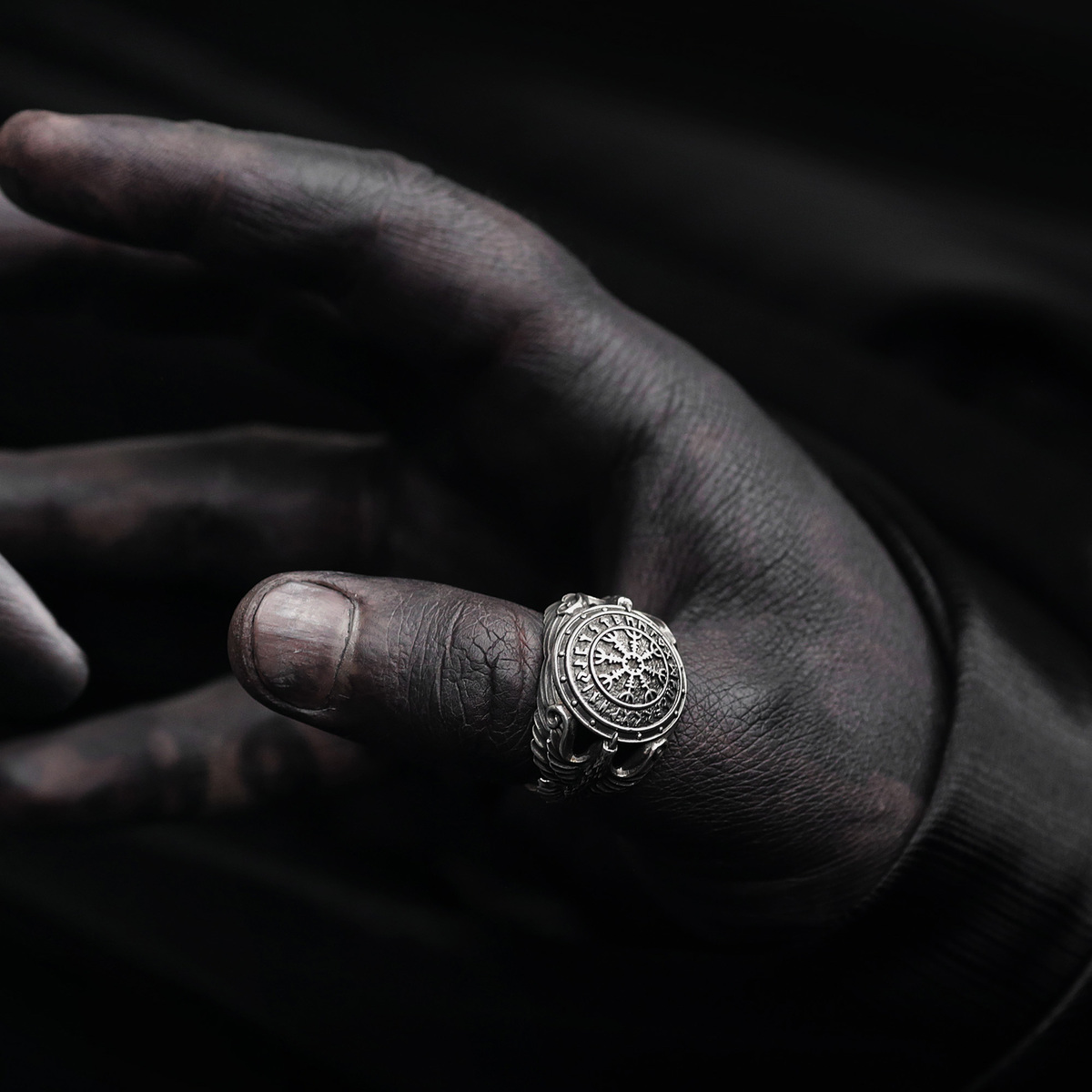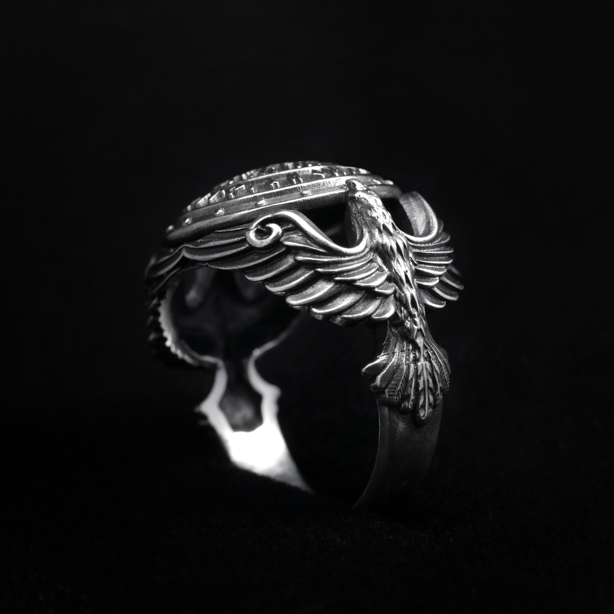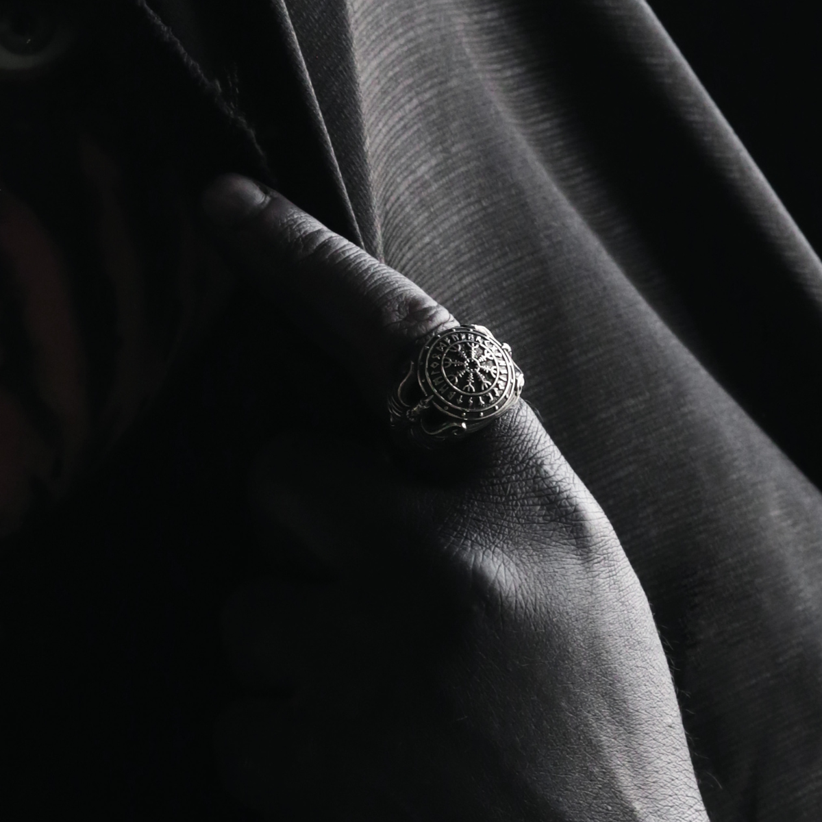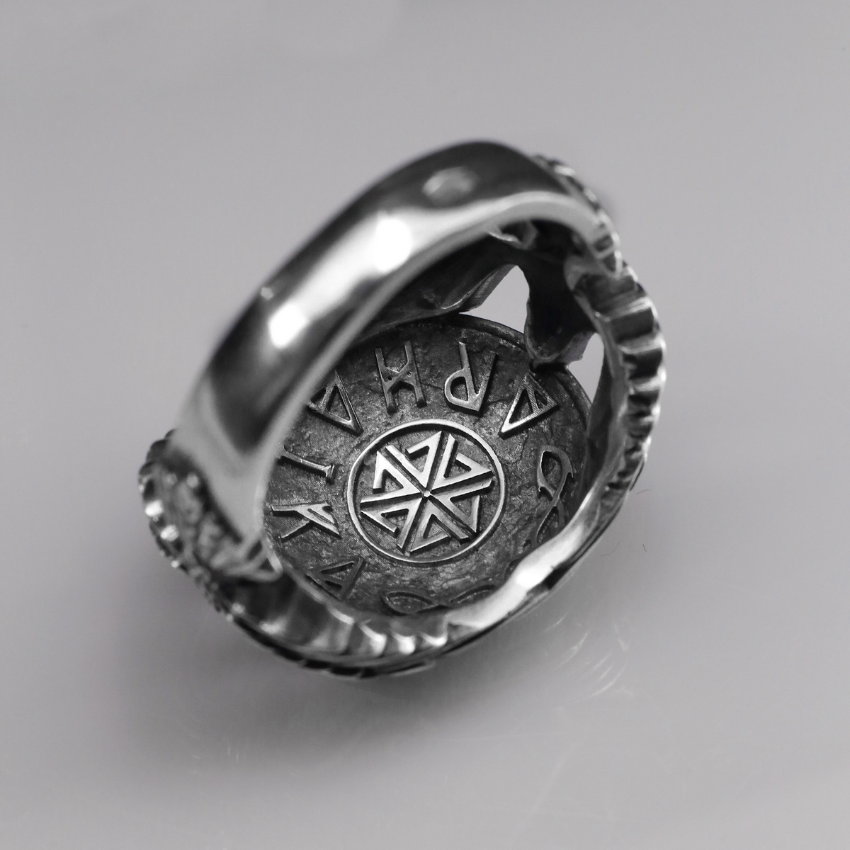 Серебряный перстень "Шлем ужаса" (серый) от ARHAIKA