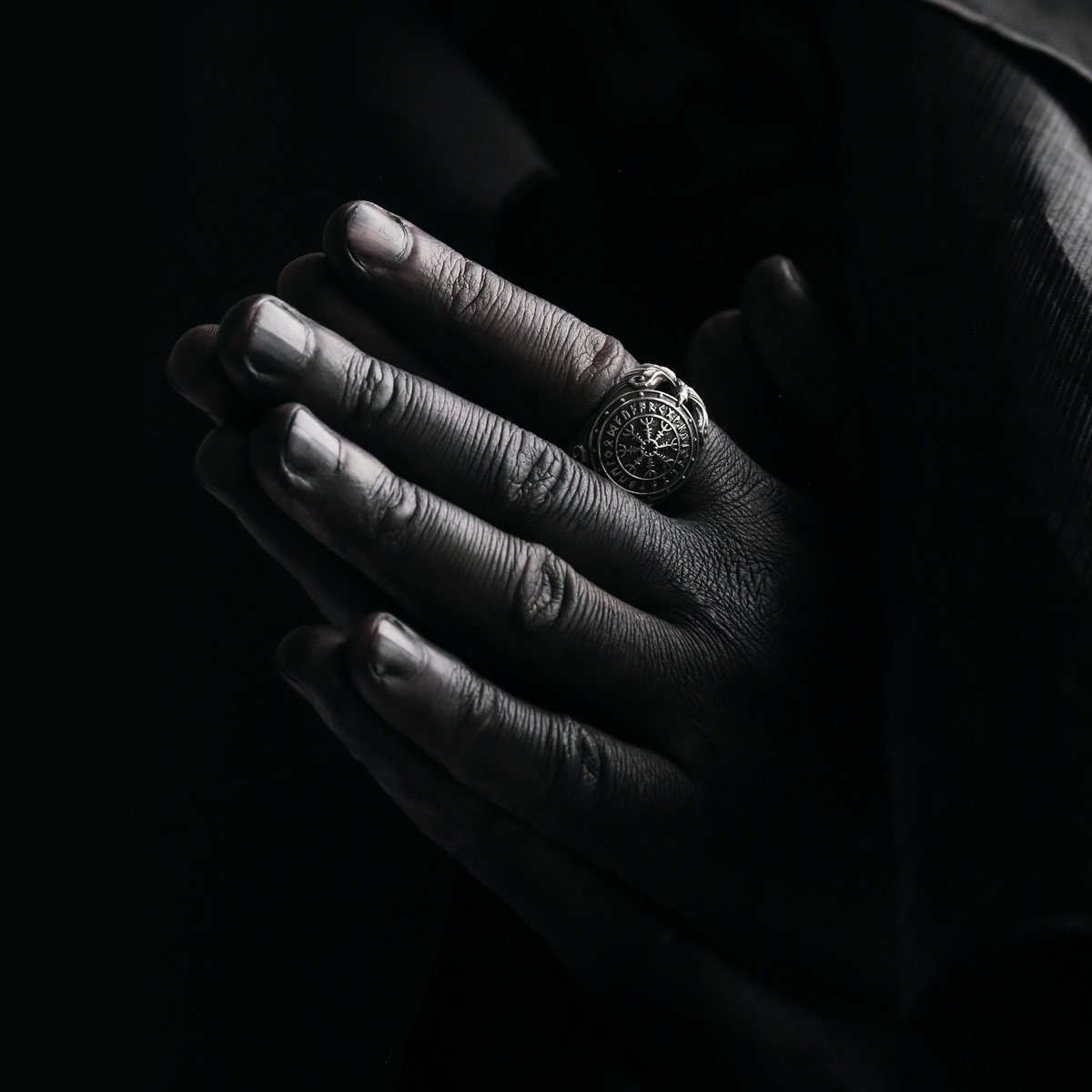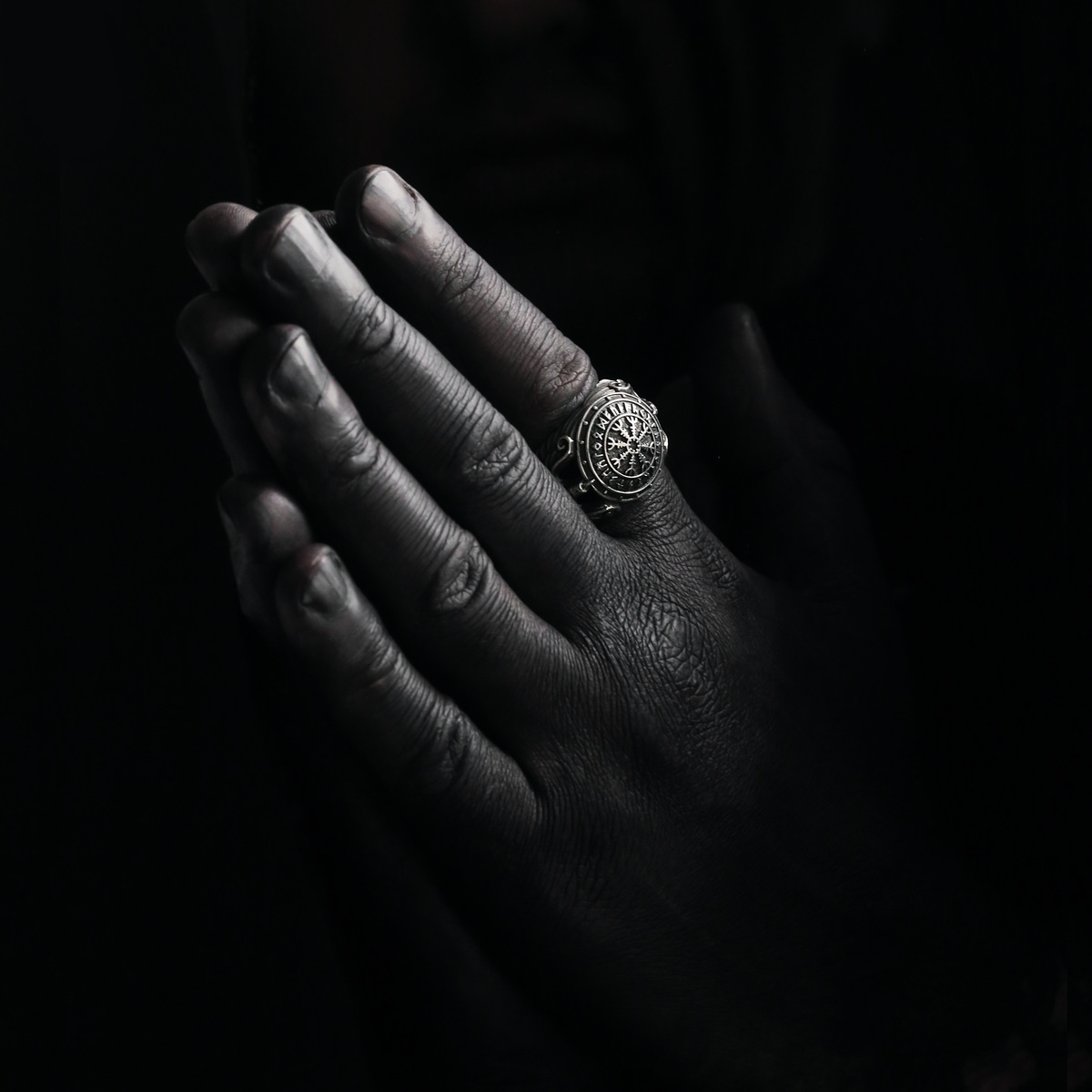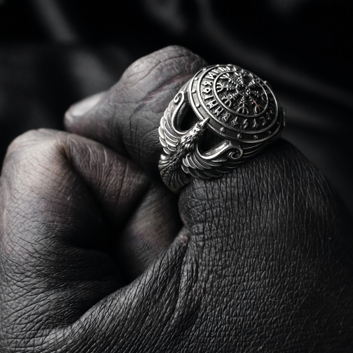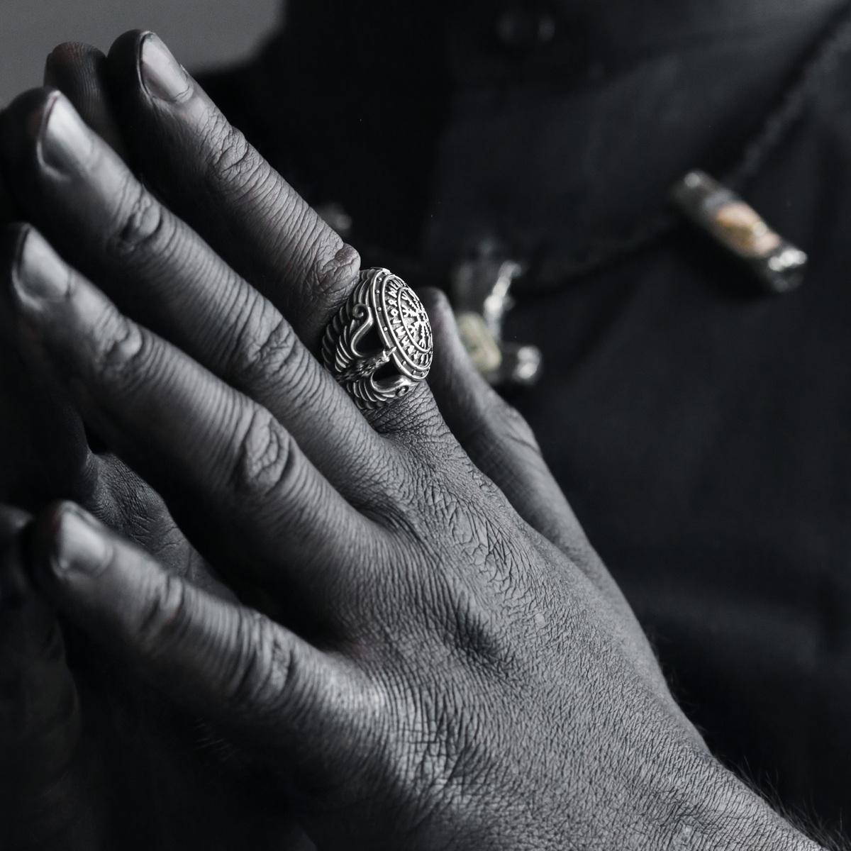 Серебряный перстень "Шлем ужаса" (серый) от ARHAIKA