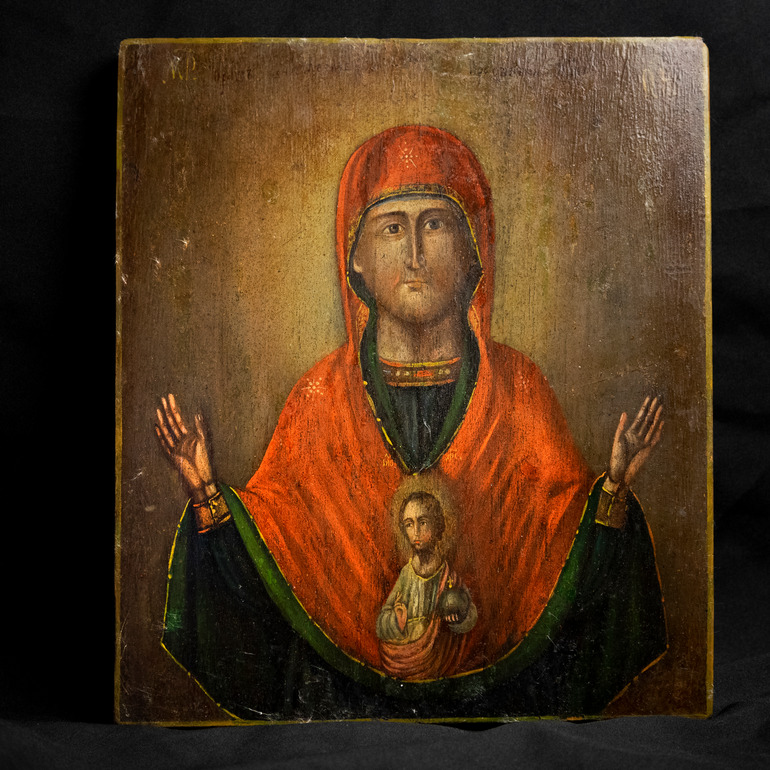 Старинная икона Божьей Матери «Знамение» третья четверть XIX века