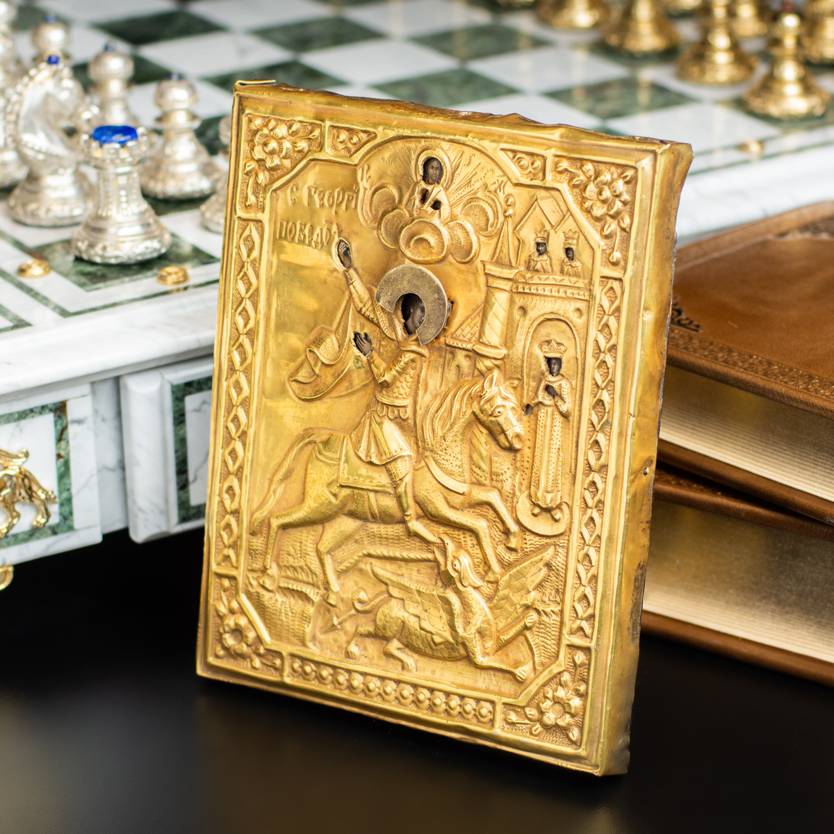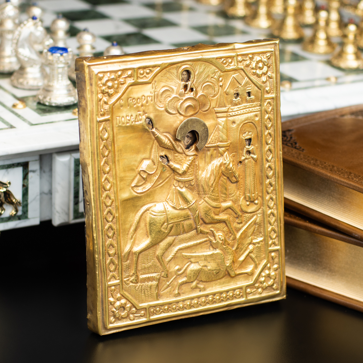 Старинная икона Георгия Победоносца последней четверти 19 века, центральные регионы Православия