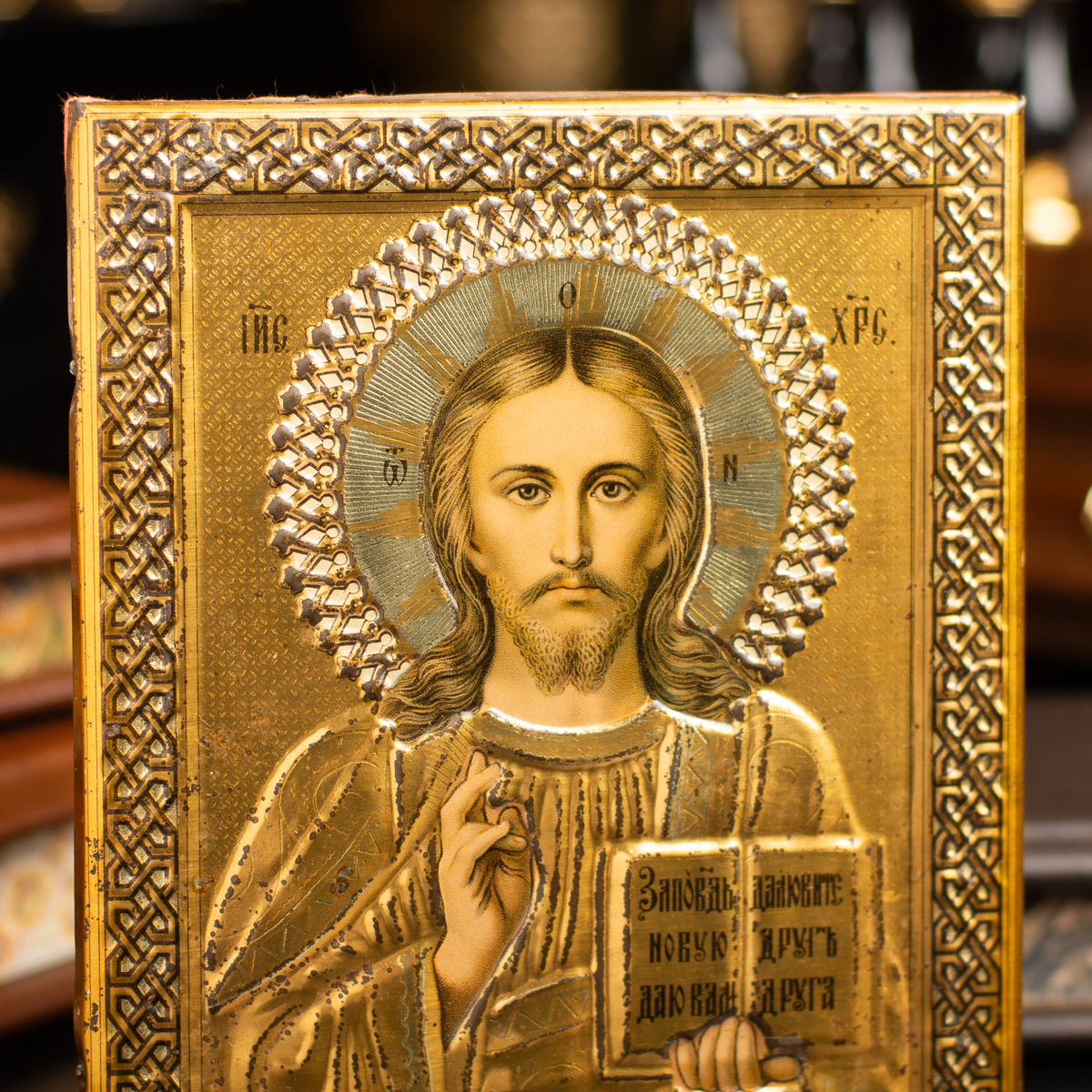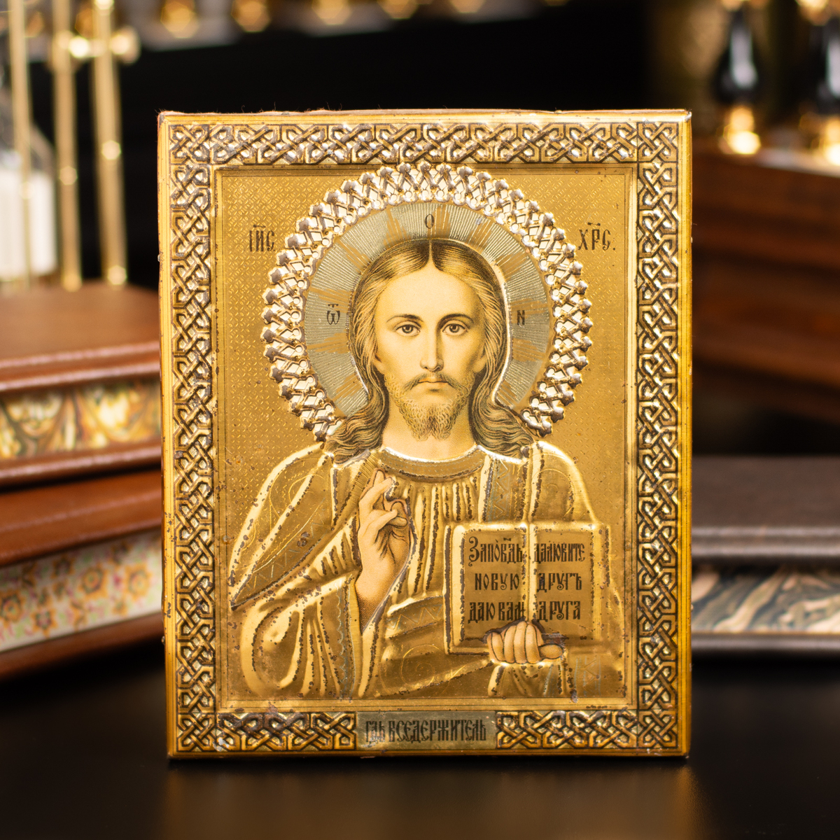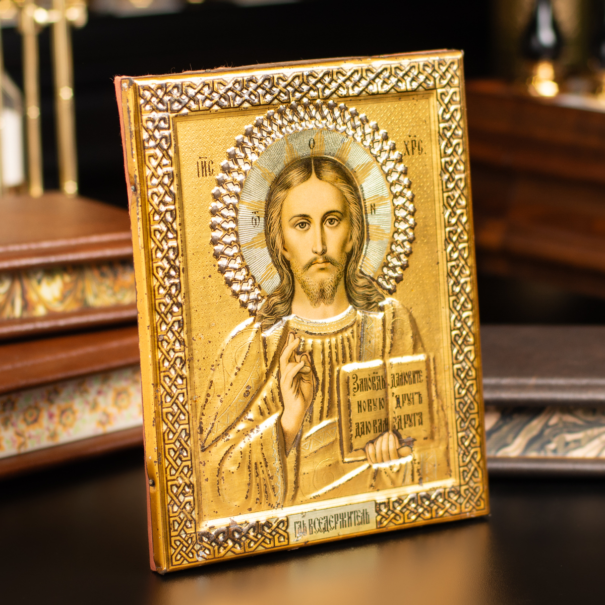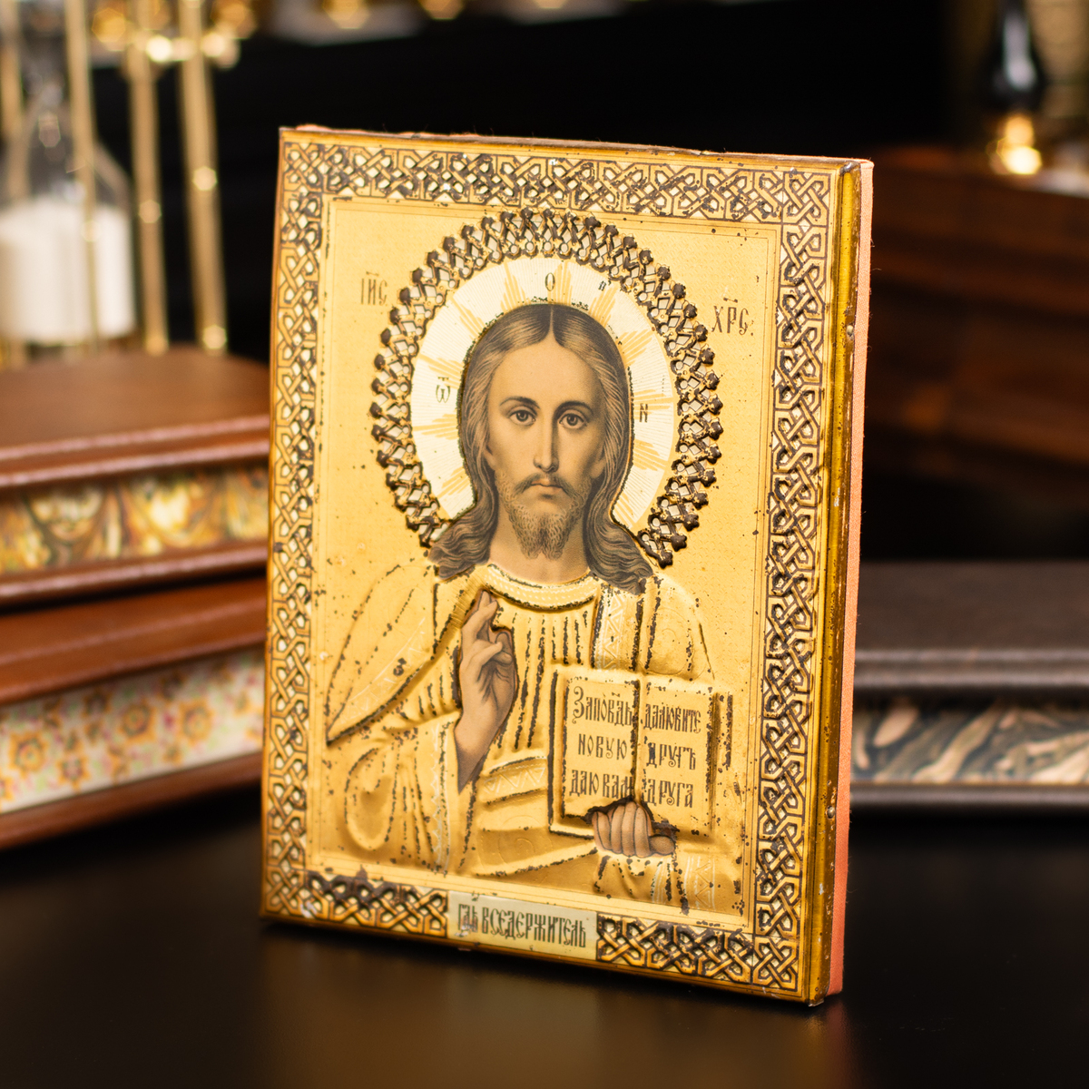 Старинная икона Господа Вседержителя 1896 года, фабрика Жако (без реставрации)