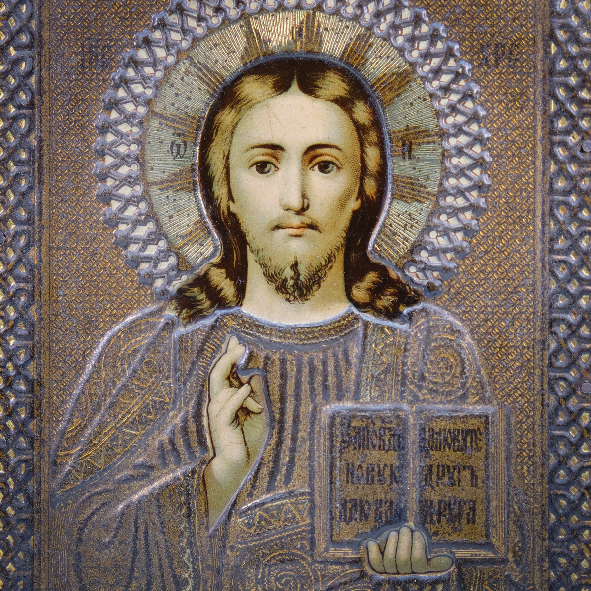 Старинная икона Господа Вседержителя 1896 года, фабрика Жако (без реставрации)
