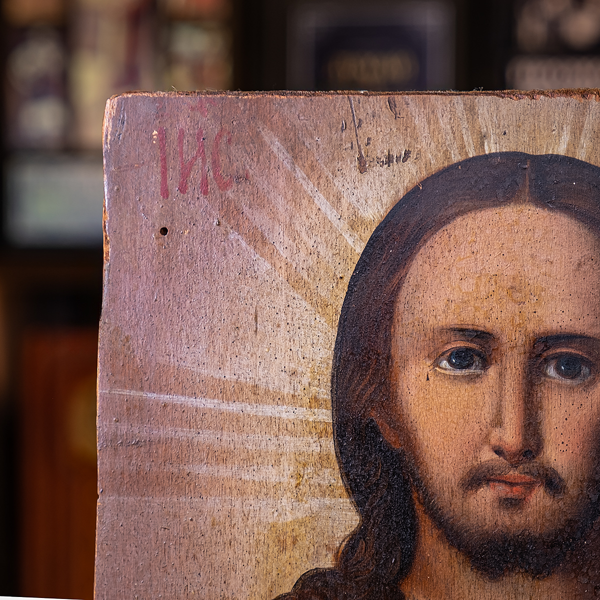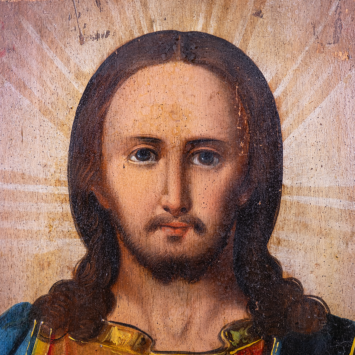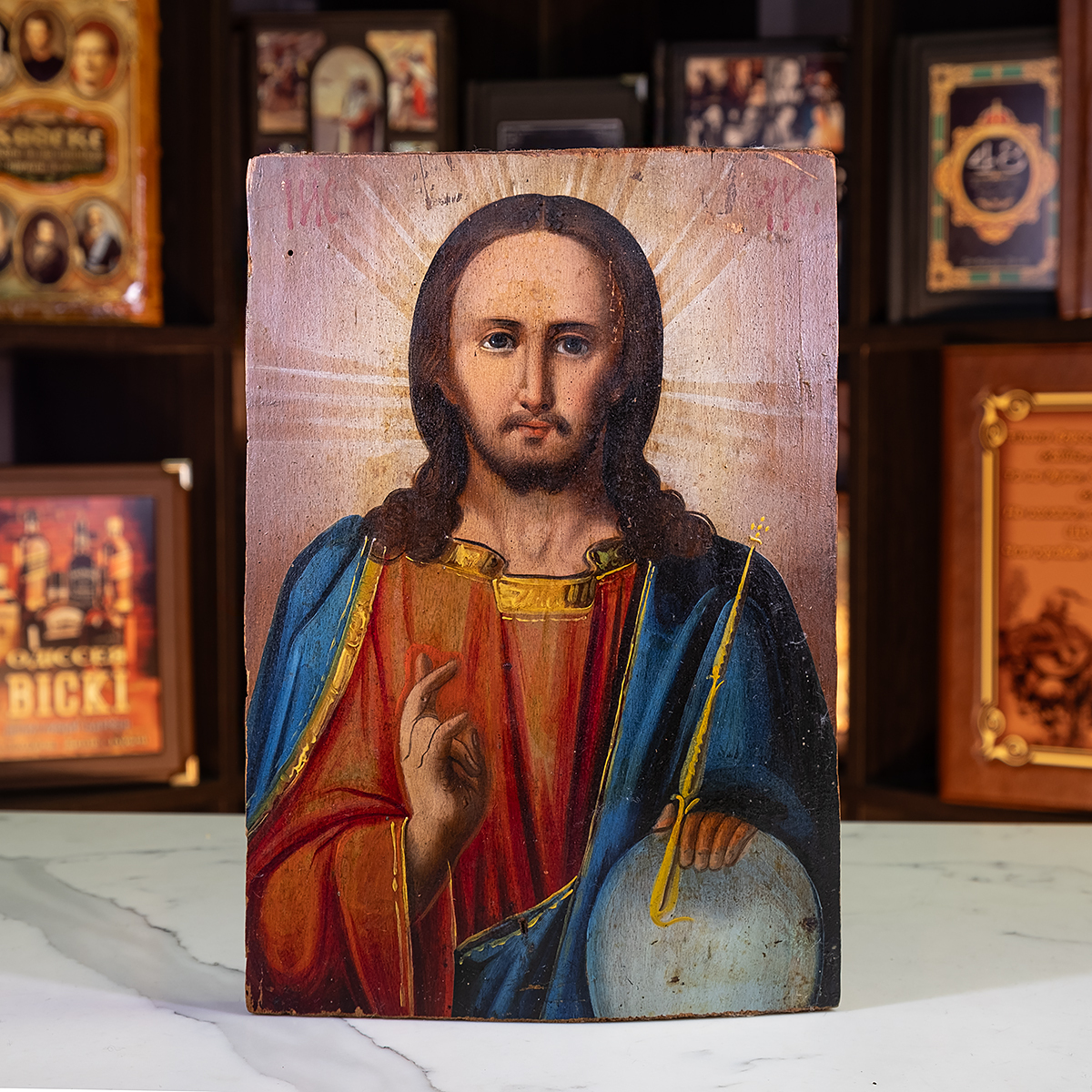 Старинная икона Иисуса Христа конца 19 века, центральная Украина (без реставрации)