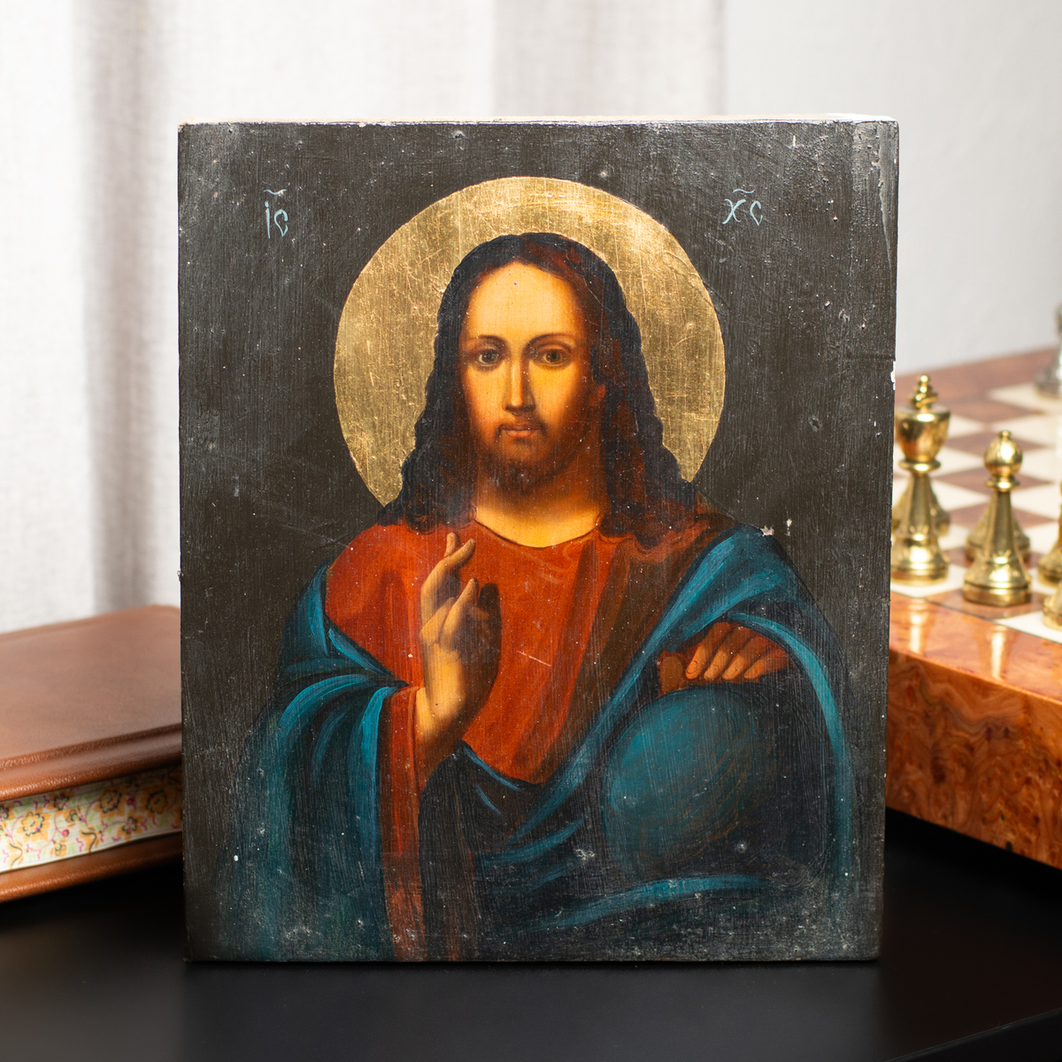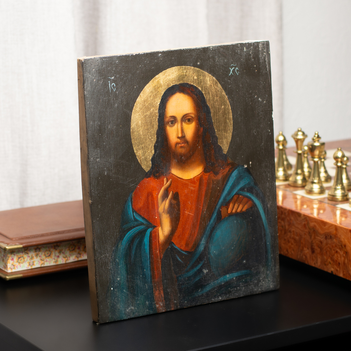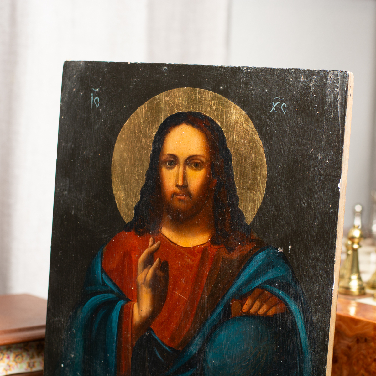 Старинная икона Иисуса Христа последней четверти 19 века, центральная Украина (без реставрации)
