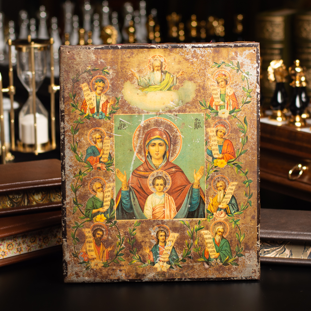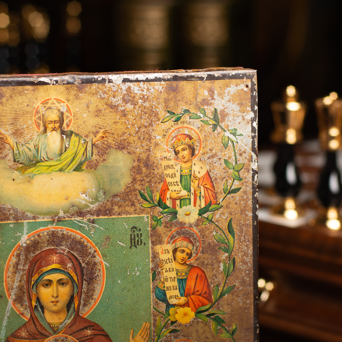 Старинная икона Курской-Коренной Божией Матери 30 апреля 1898 года, фабрика Жако (без реставрации)