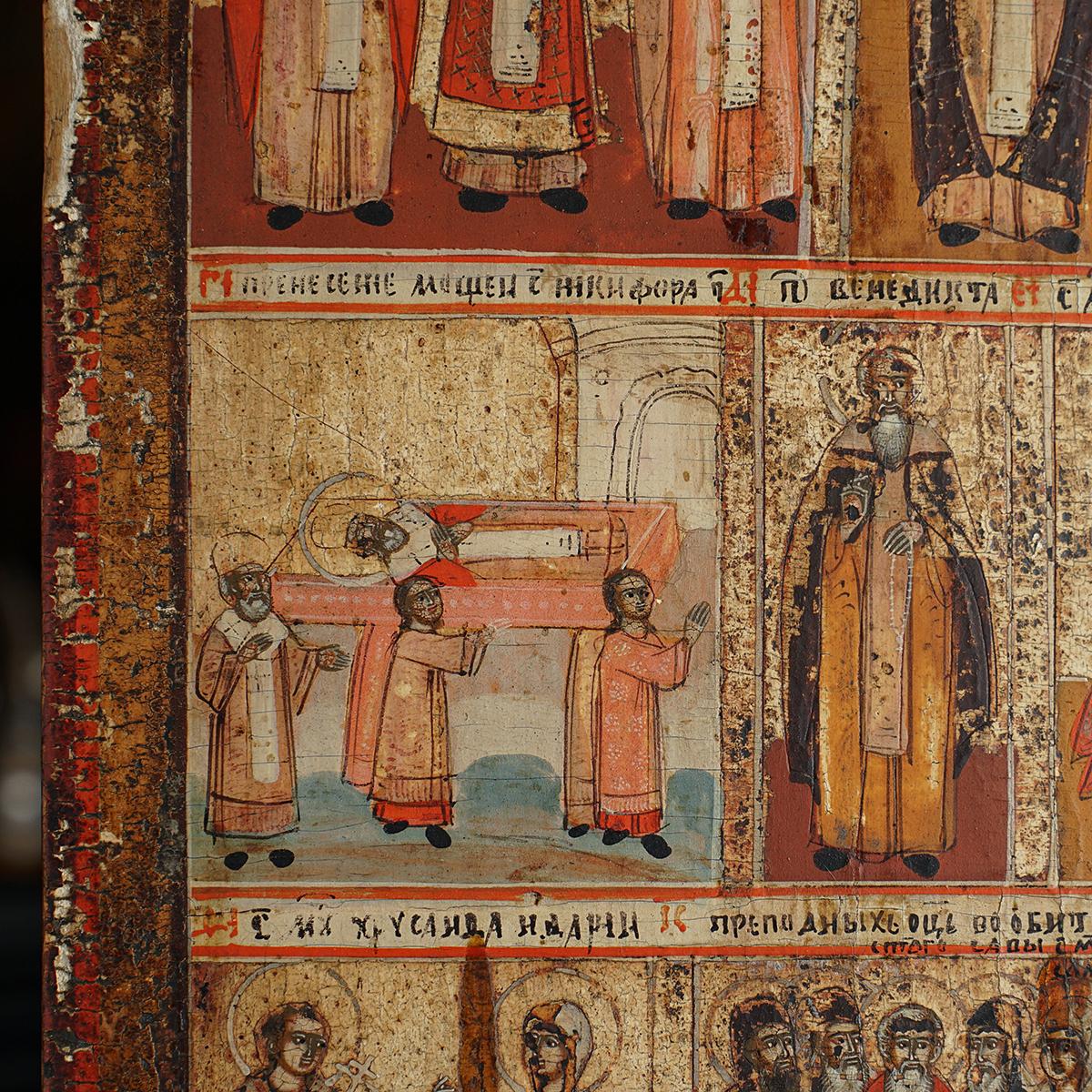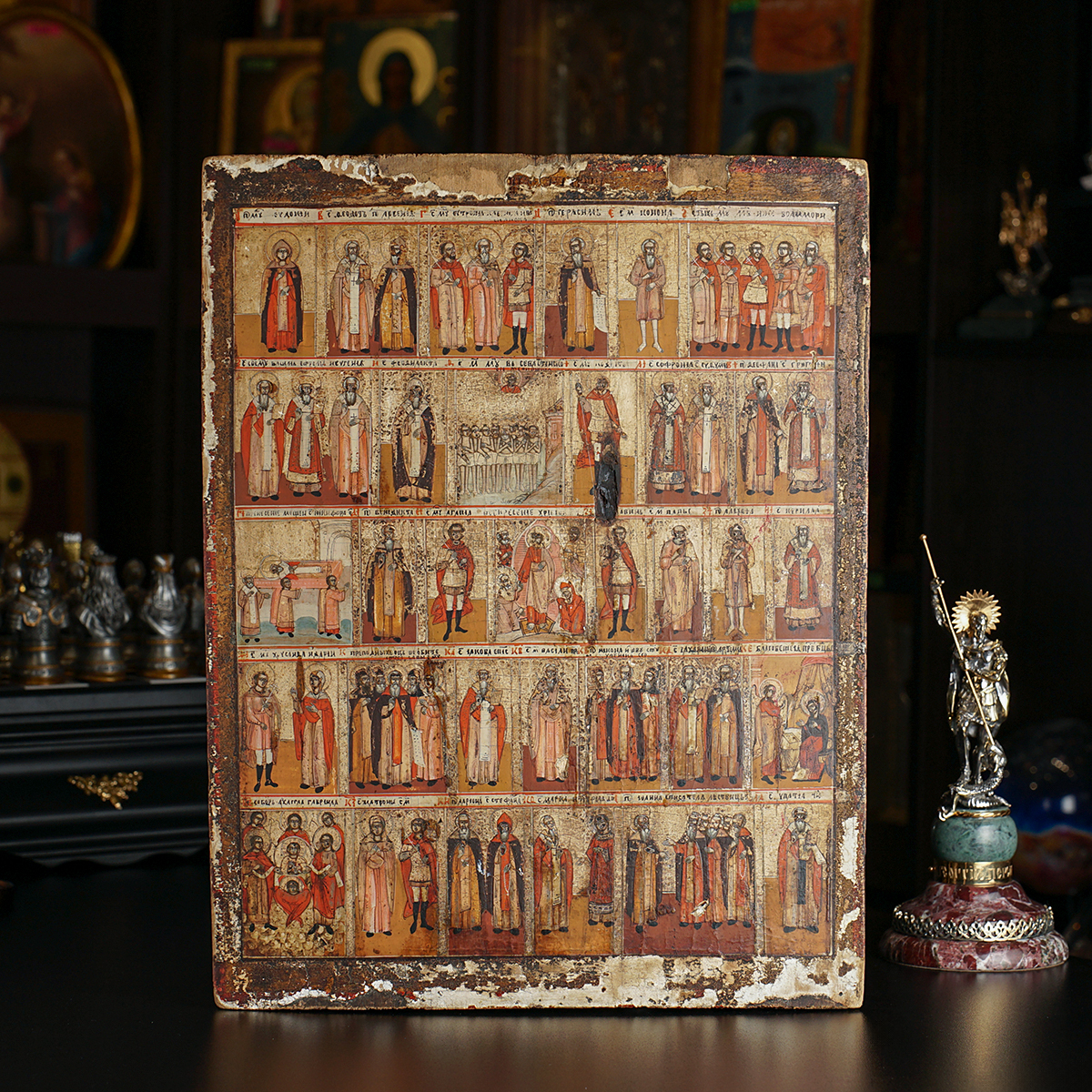 Старинная икона-минея на март месяц начала 19 века, северные регионы православия (без реставрации)